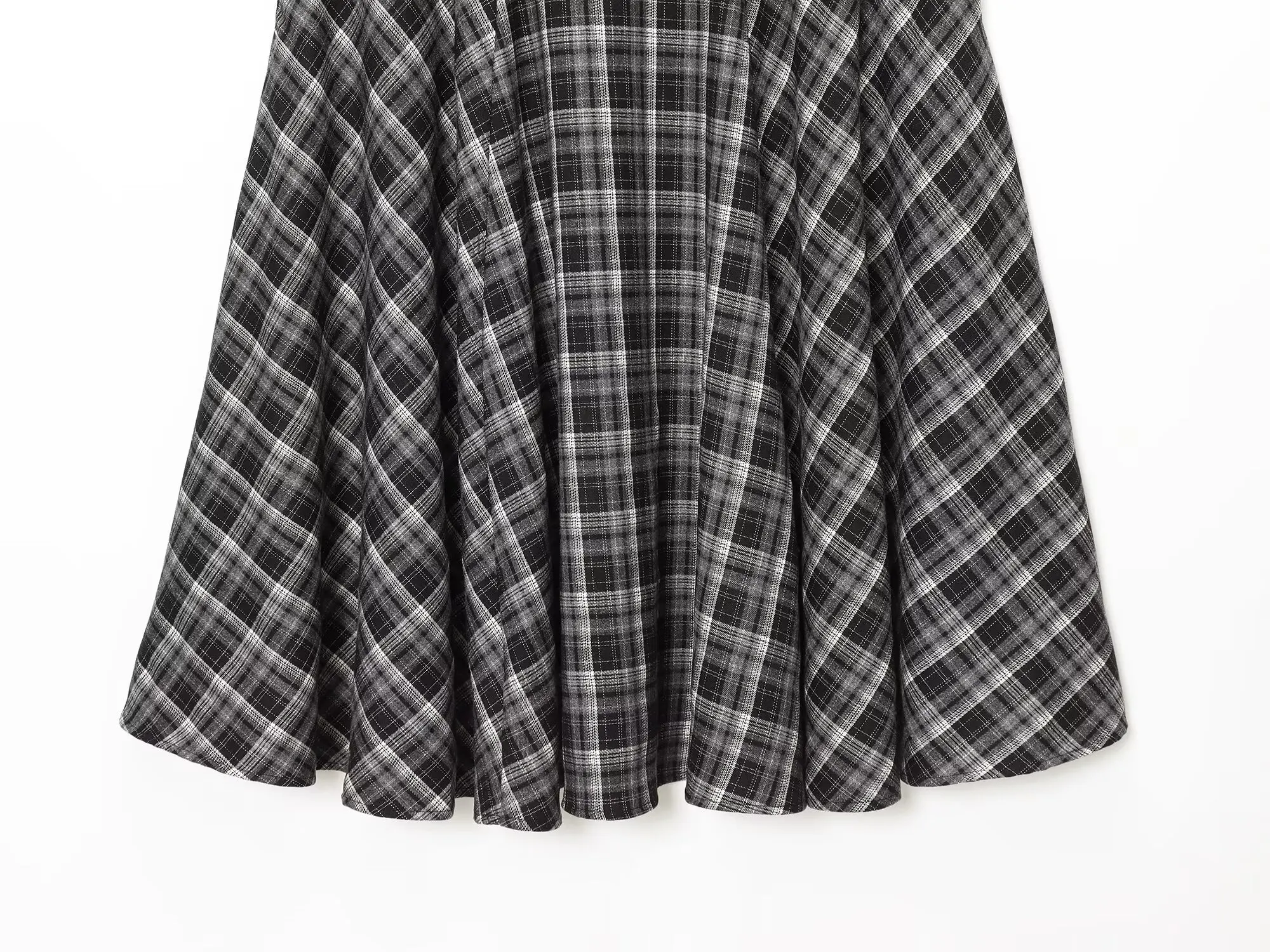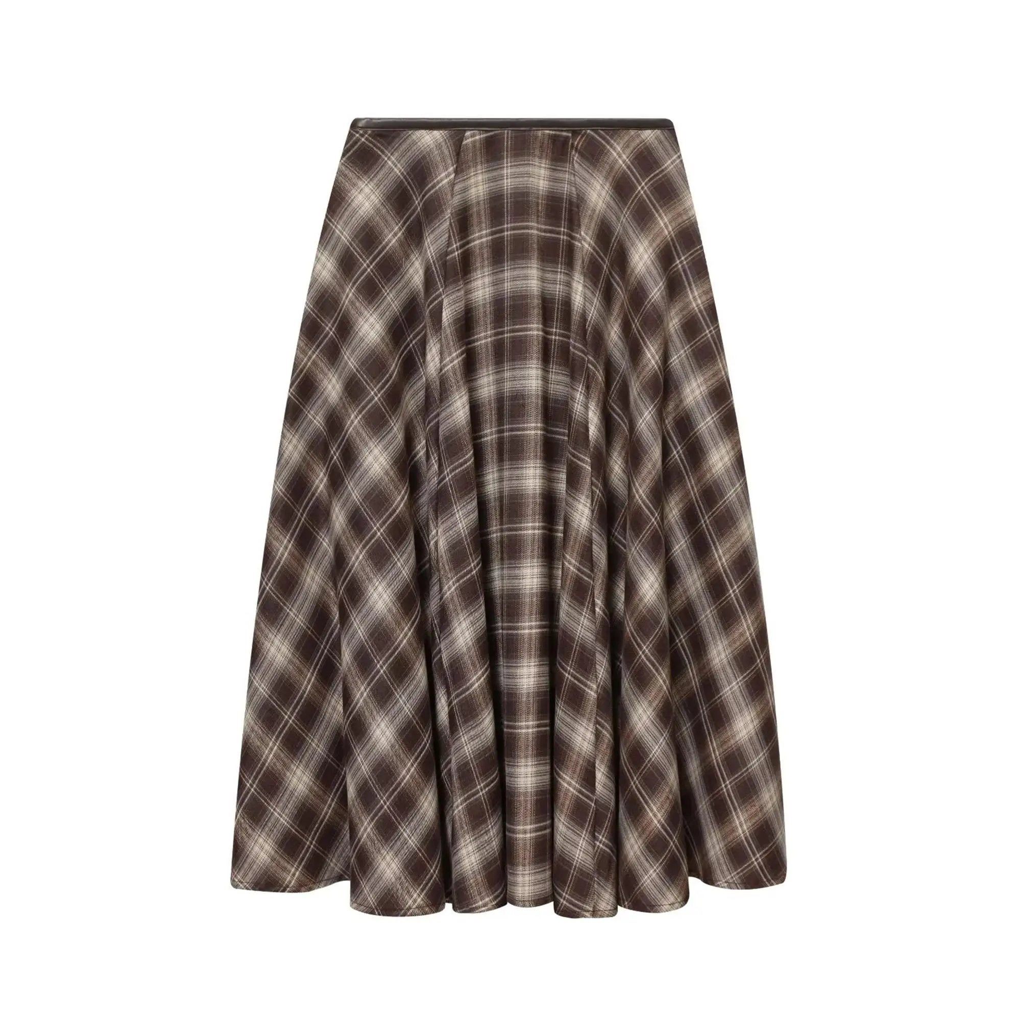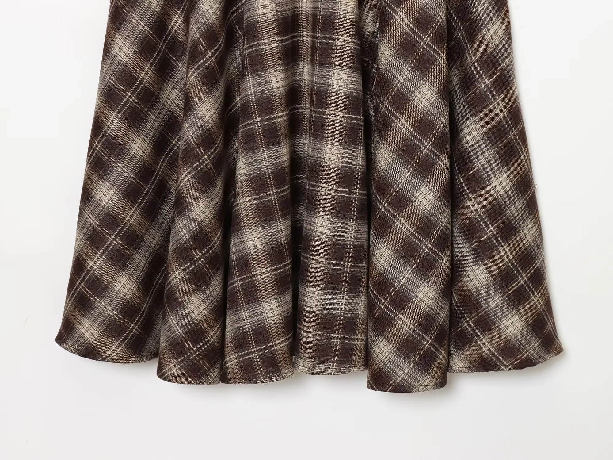 Gonna a ombrello scozzese retrò da donna nuova Gonna a trapezio autunno inverno con tasche Gonne di media lunghezza a vita alta da donna chic