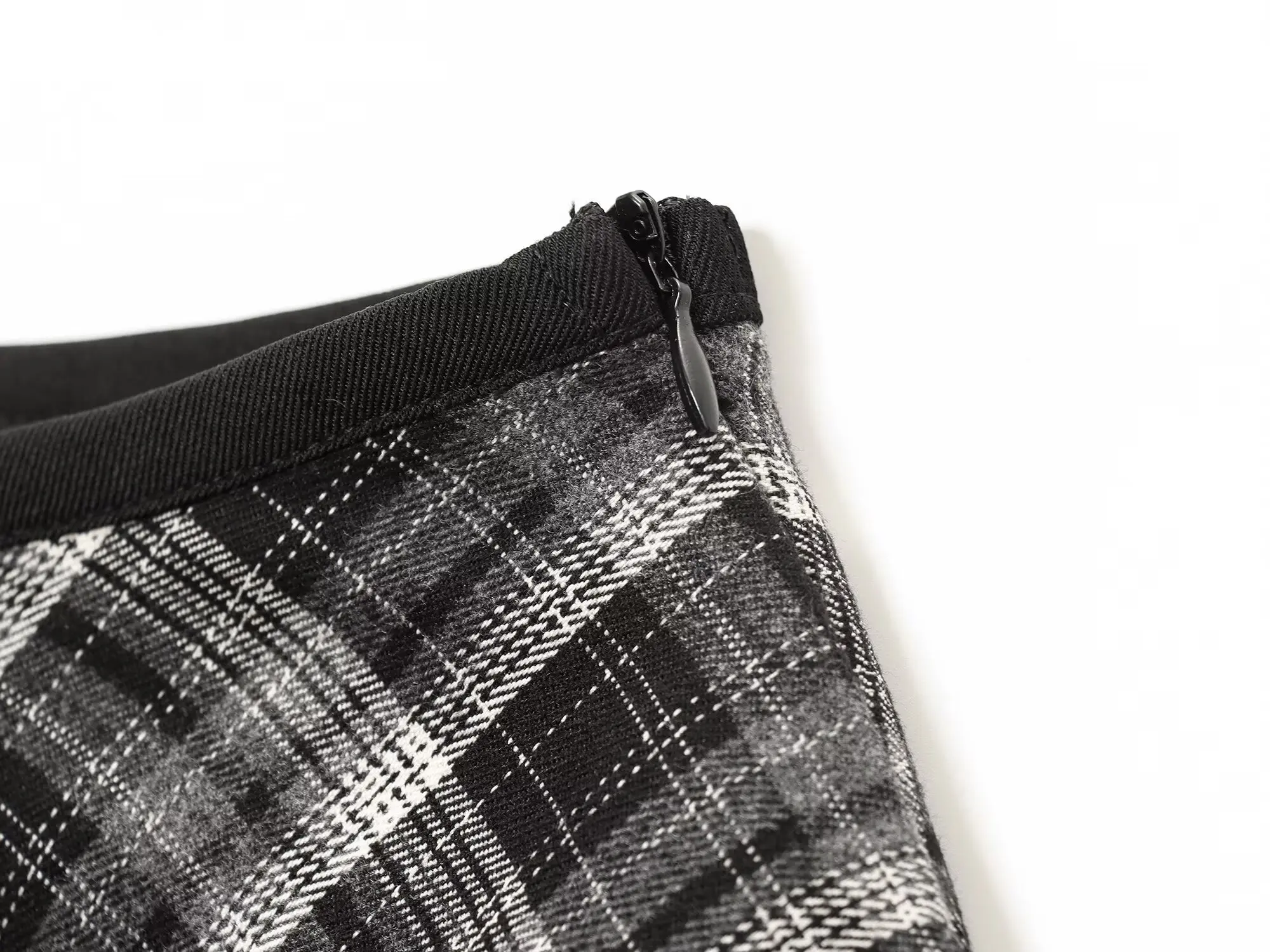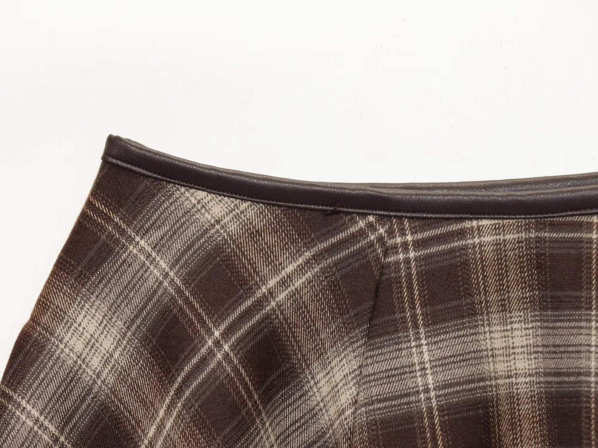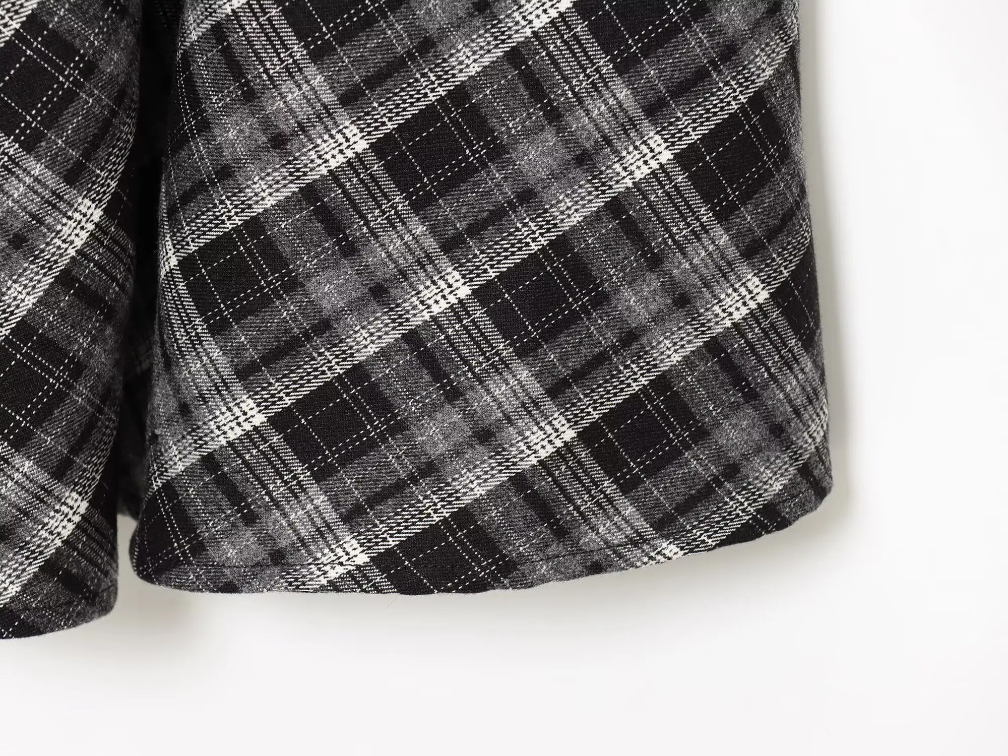 Gonna a ombrello scozzese retrò da donna nuova Gonna a trapezio autunno inverno con tasche Gonne di media lunghezza a vita alta da donna chic