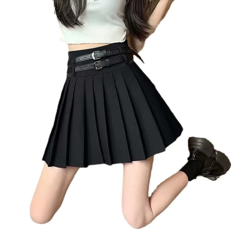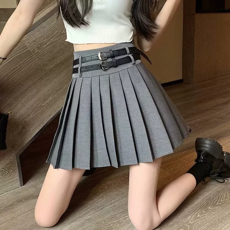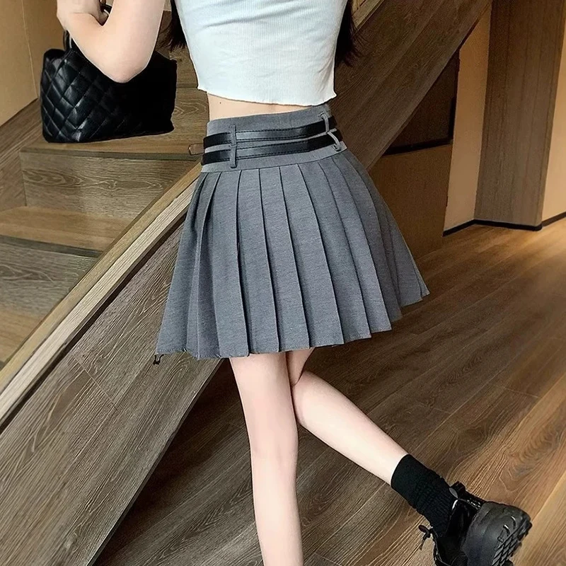 Gonna a pieghe con doppia cintura stile preppy Moda donna All Match Gonne corte a vita alta Donna Estate Y2K Gonna basic allentata Donna