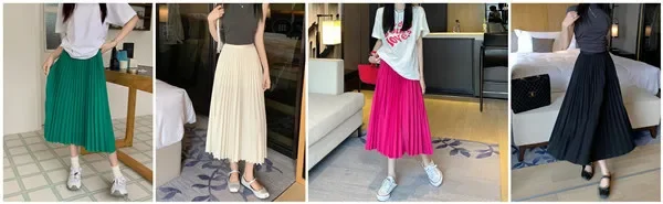 • Taglio di media lunghezza:Il taglio di media lunghezza di questa gonna a pieghe colpisce un equilibrio tra eleganza e praticità, adatto sia ad ambienti formali che casual.