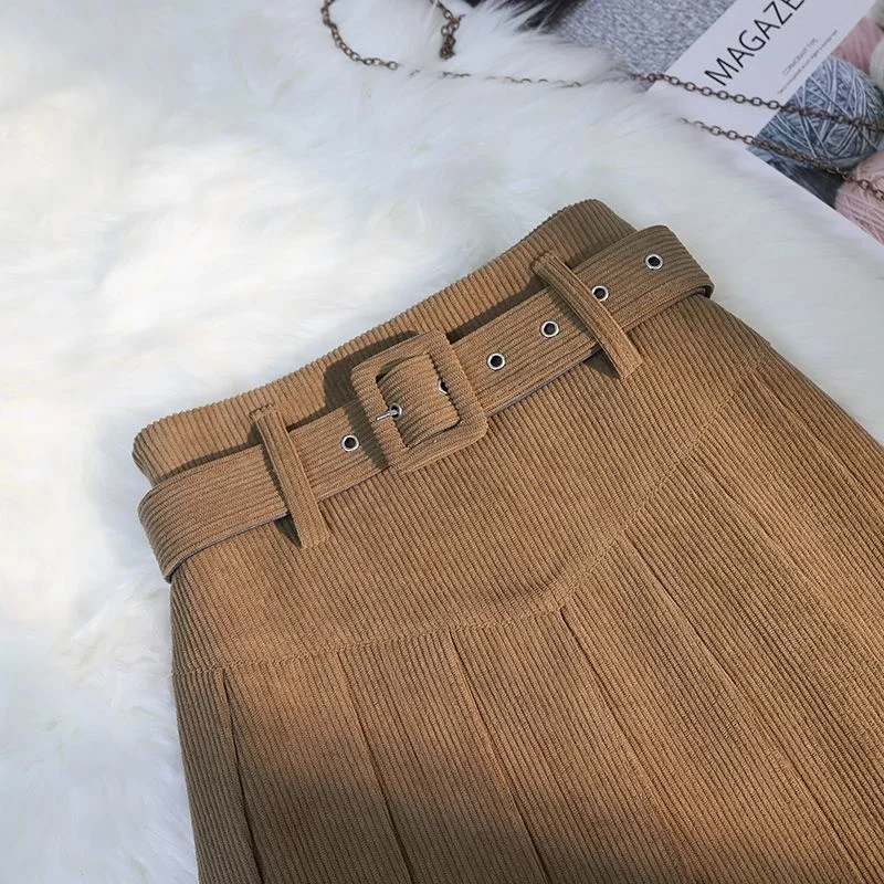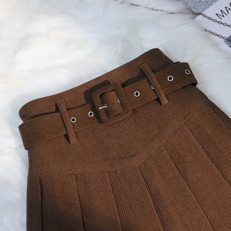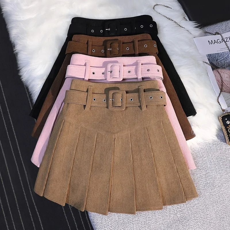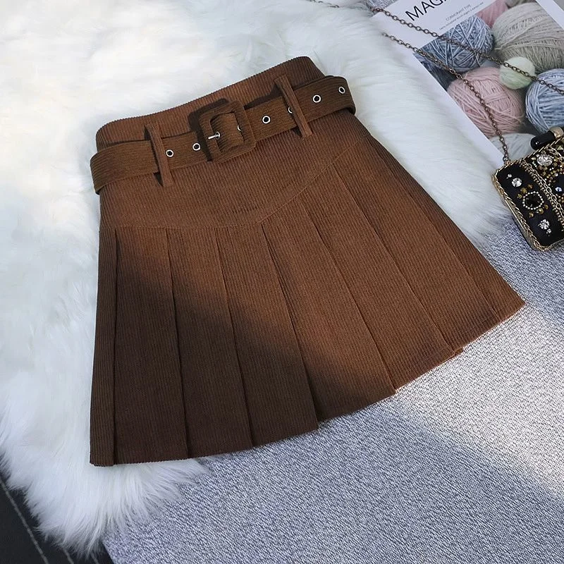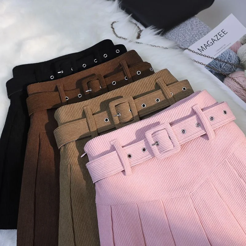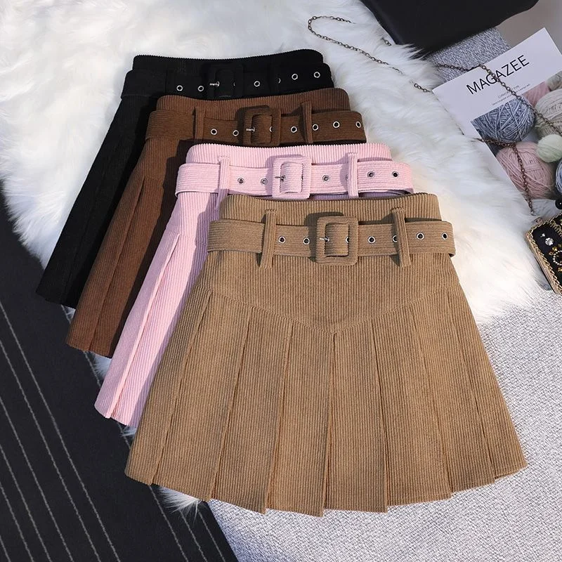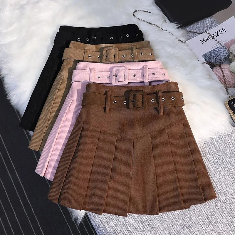 Gonna a pieghe in velluto a coste streetwear Gonna corta sexy da donna Autunno Inverno Cintura a vita alta Gonne a trapezio sottili Ragazza con fodera 2025