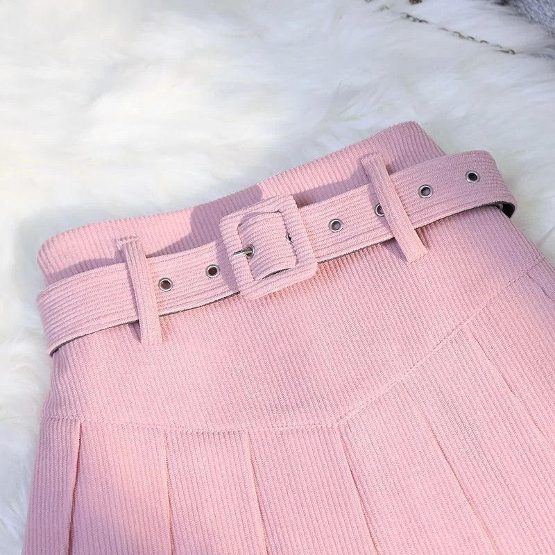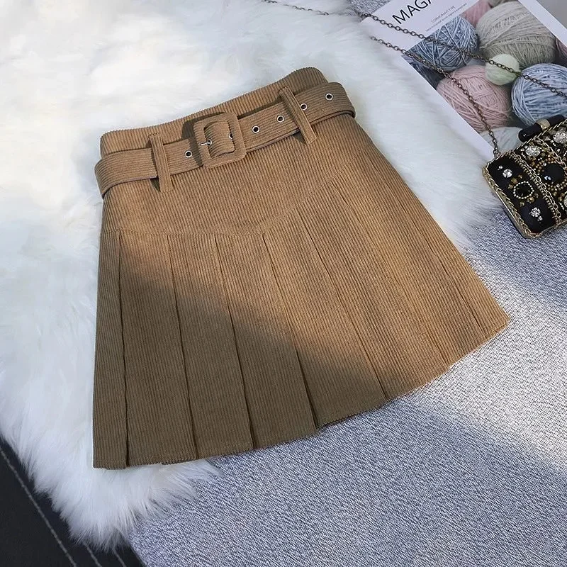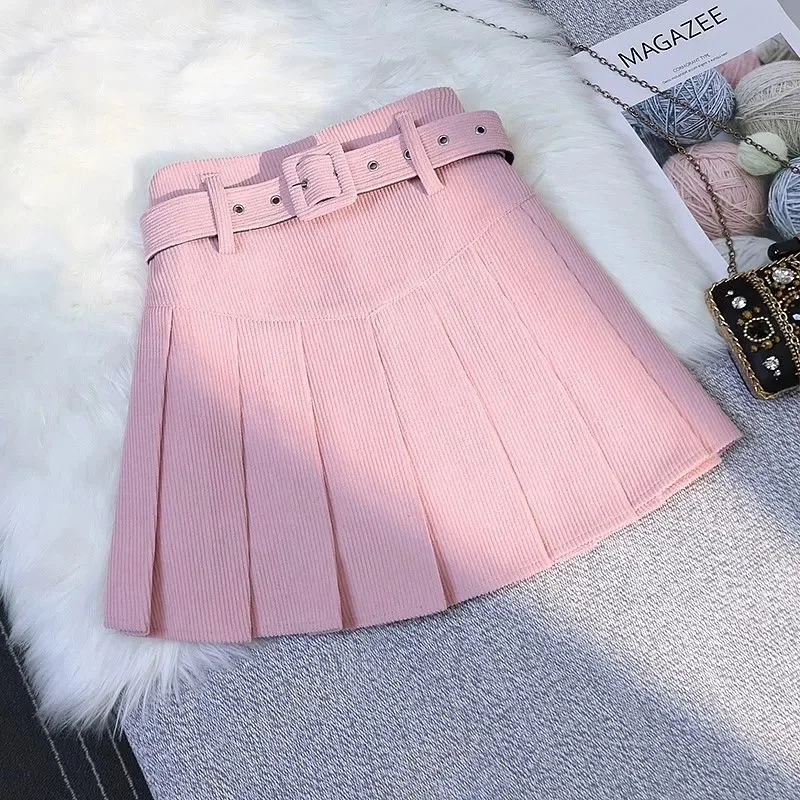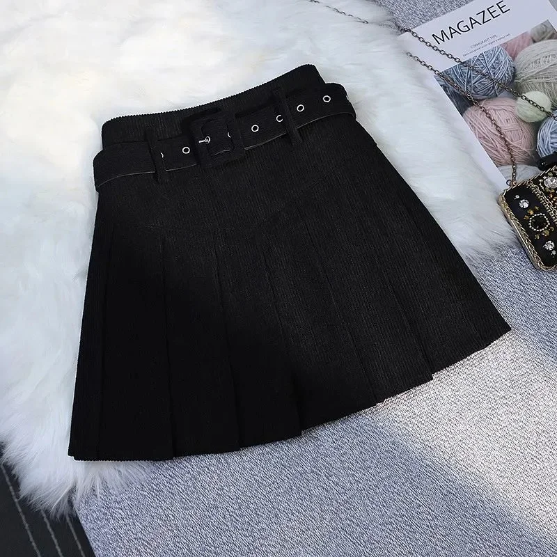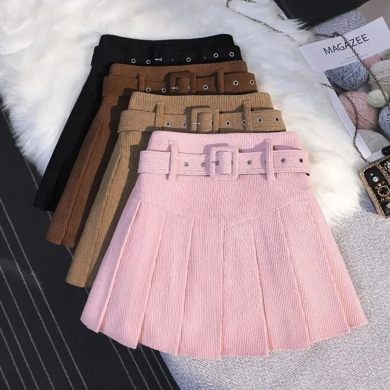 Gonna a pieghe in velluto a coste streetwear Gonna corta sexy da donna Autunno Inverno Cintura a vita alta Gonne a trapezio sottili Ragazza con fodera 2025