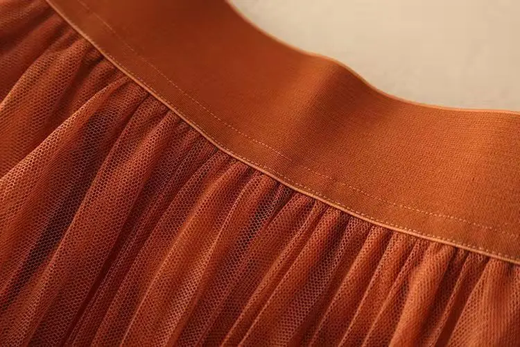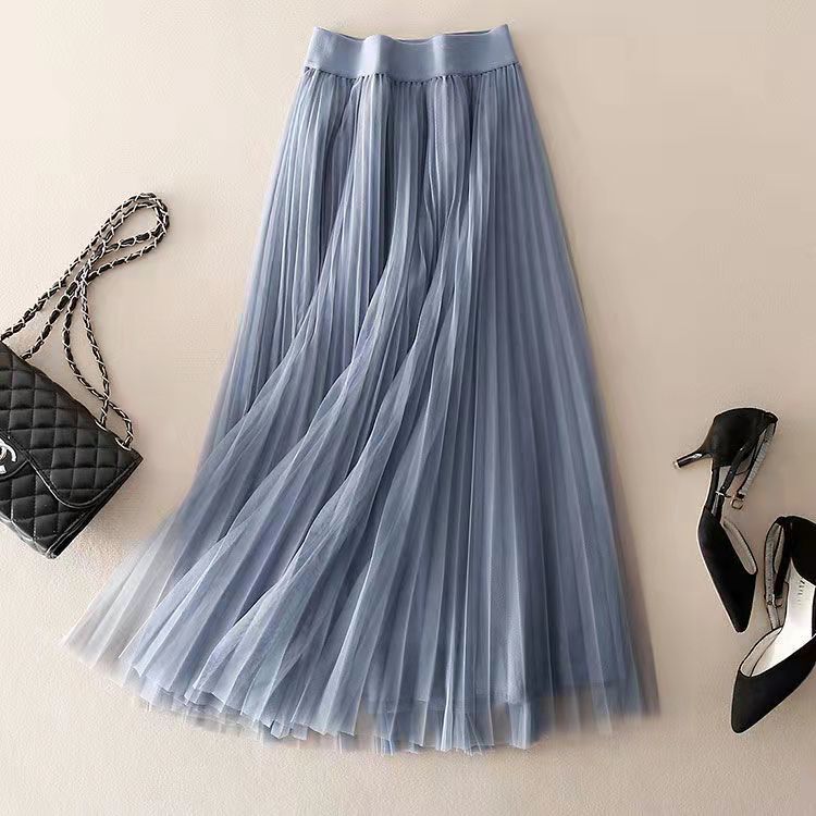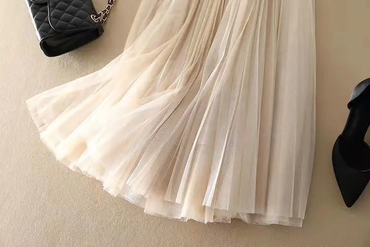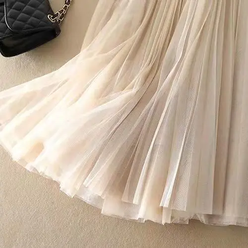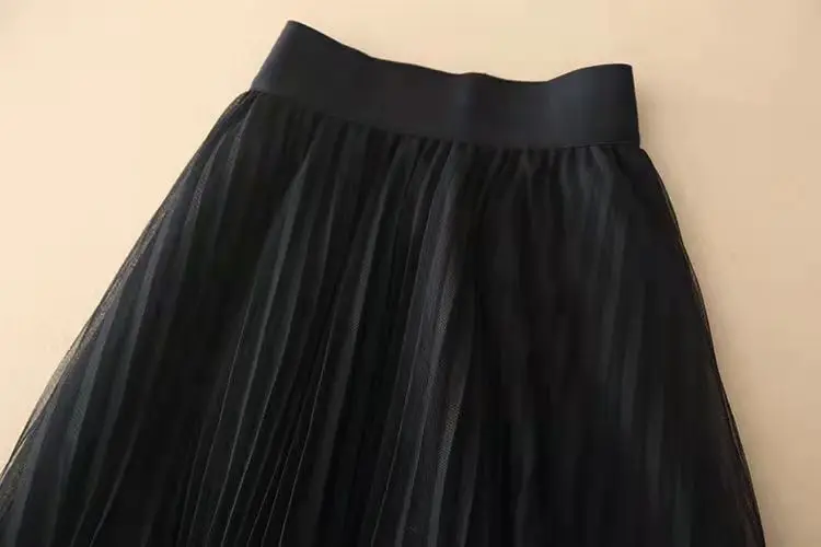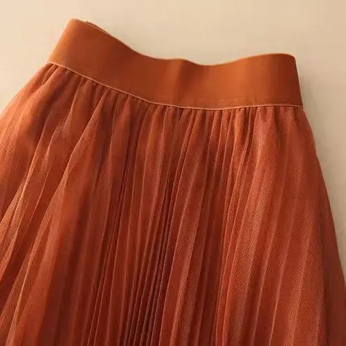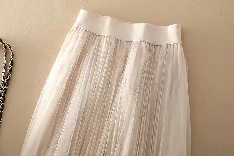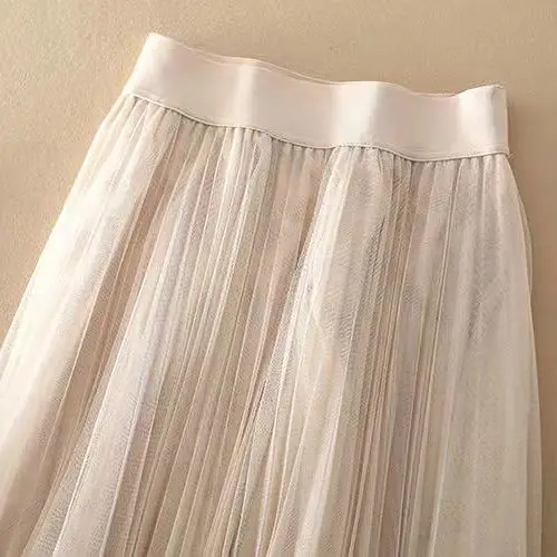 Gonna a rete pieghettata tinta unita estiva donna classica a vita alta arricciata temperamento sottile gonna Midi donna coreana Casual