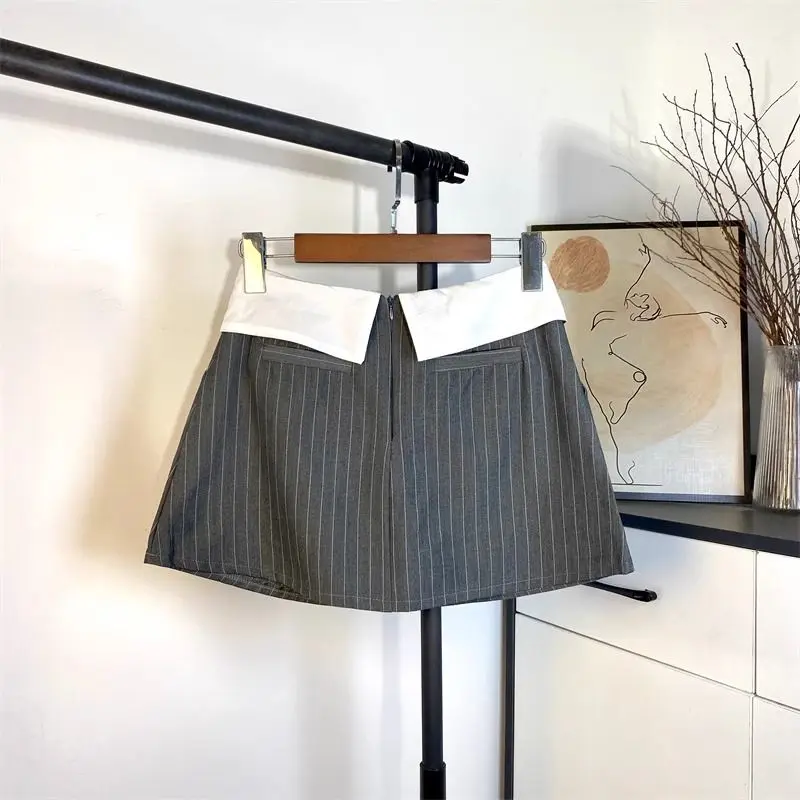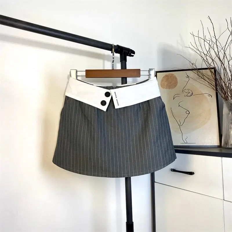 Gonna a trapezio a righe a contrasto a vita alta Primavera Estate New High Street Gonna longuette ampia tutto-fiammifero Abbigliamento donna elegante vintage