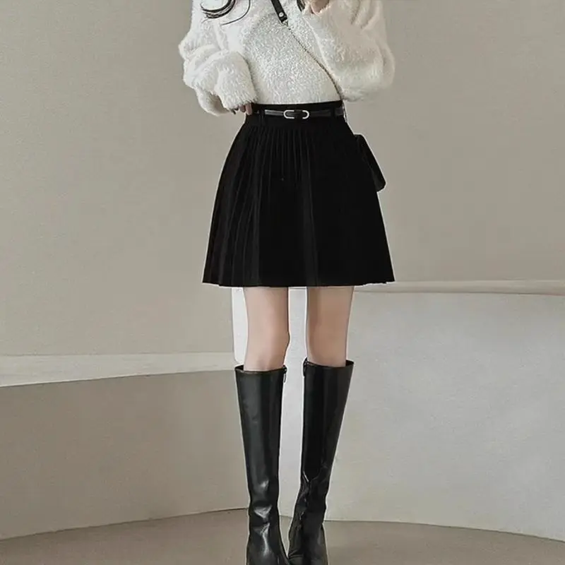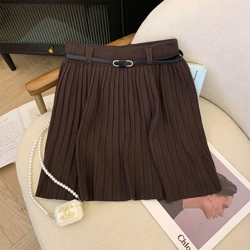 Gonna a trapezio lavorata a maglia a vita alta stile preppy Autunno Inverno Nuova gonna alla moda per giovani solidi All-match Tendenza coreana Abbigliamento donna 1Gonna a trapezio lavorata a maglia a vita alta stile preppy Autunno Inverno Nuova gonna alla moda per giovani solidi All-match Tendenza coreana Abbigliamento donna