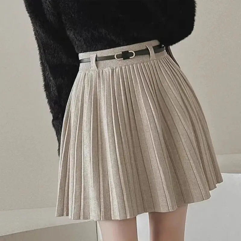 Gonna a trapezio lavorata a maglia a vita alta stile preppy Autunno Inverno Nuova gonna alla moda per giovani solidi All-match Tendenza coreana Abbigliamento donna