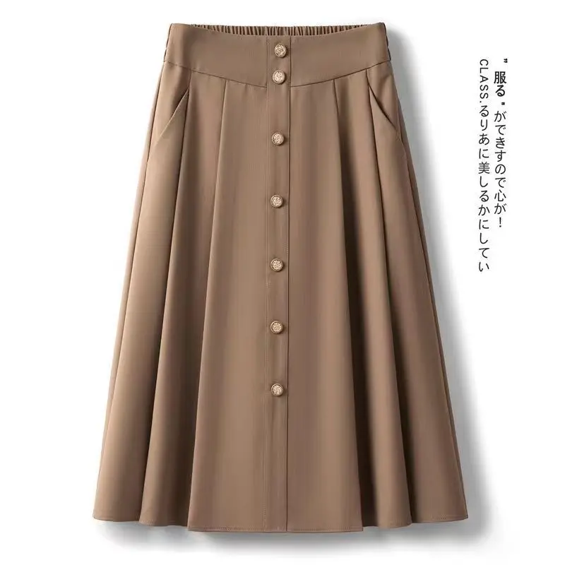 Gonna a vita alta Donna Primavera ed estate Nuova gonna a pieghe sottile Gonna a trapezio estiva di media lunghezza Gonna con orlo largo Gonna ombrello