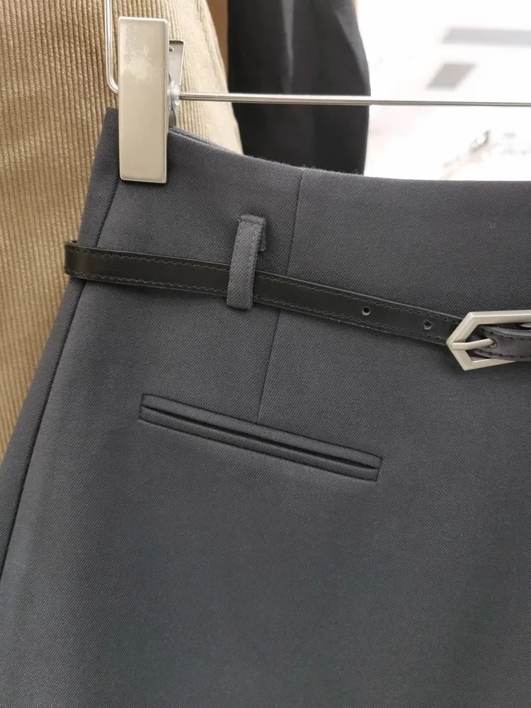 Questa gonna presenta una silhouette a trapezio alla moda con vita alta e taglio ampio e largo, perfetto per la stagione primaverile del 2024.