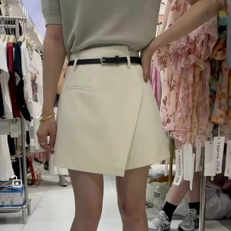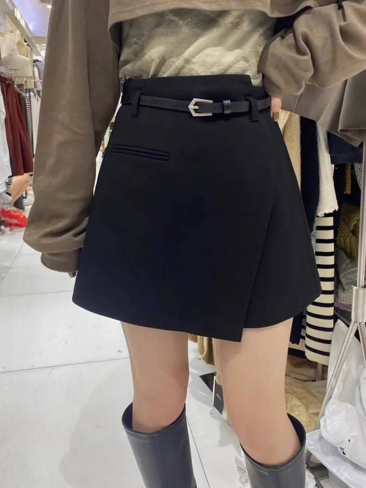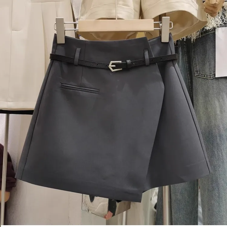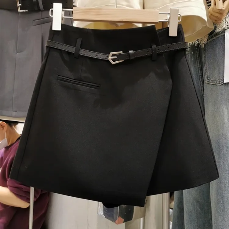Gonna corta a gamba larga ampia Gonna corta da donna Primavera Autunno Casual Patchwork Poliestere Minigonna Vita alta Design dimagrante