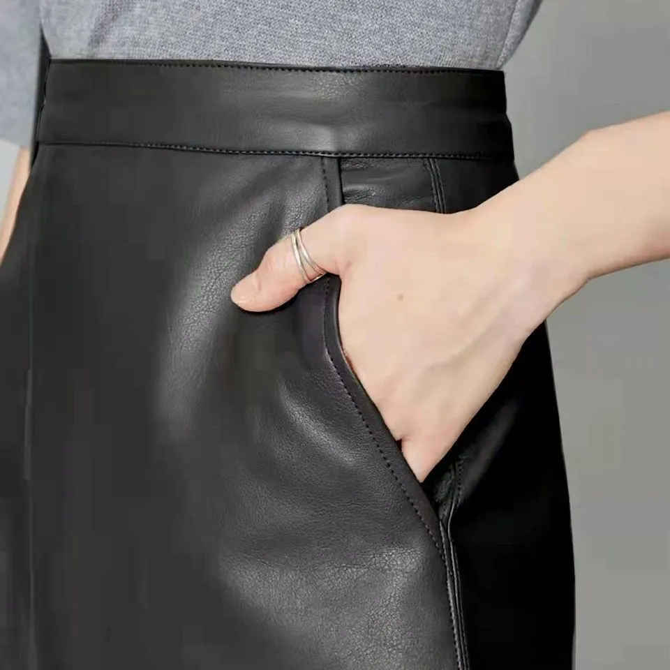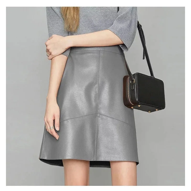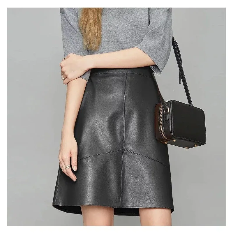 gonna corta in pelle pu autunno e inverno nuovo design a vita alta