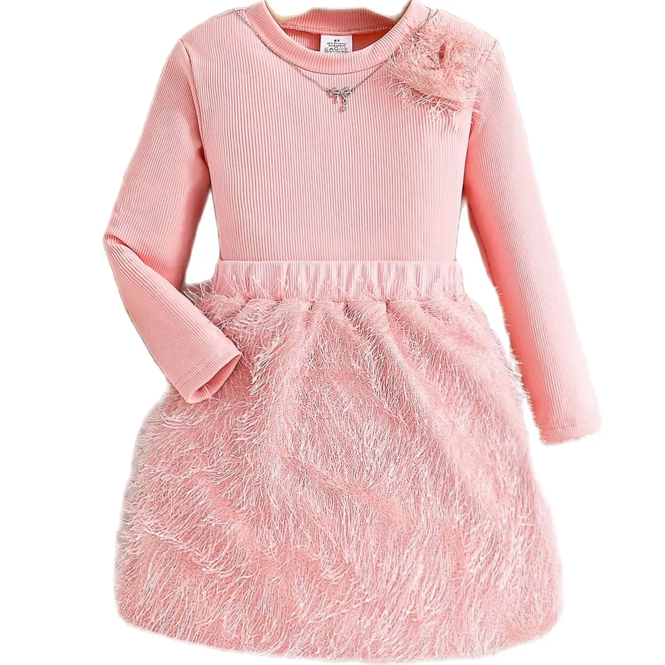 Gonna corta Mao rosa girocollo a maniche lunghe e giunture per bambini, grazioso set da 2 pezzi, nuova moda, primavera e autunno