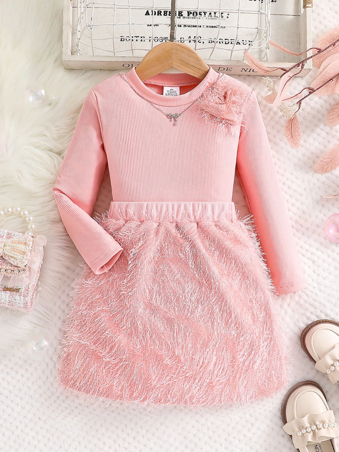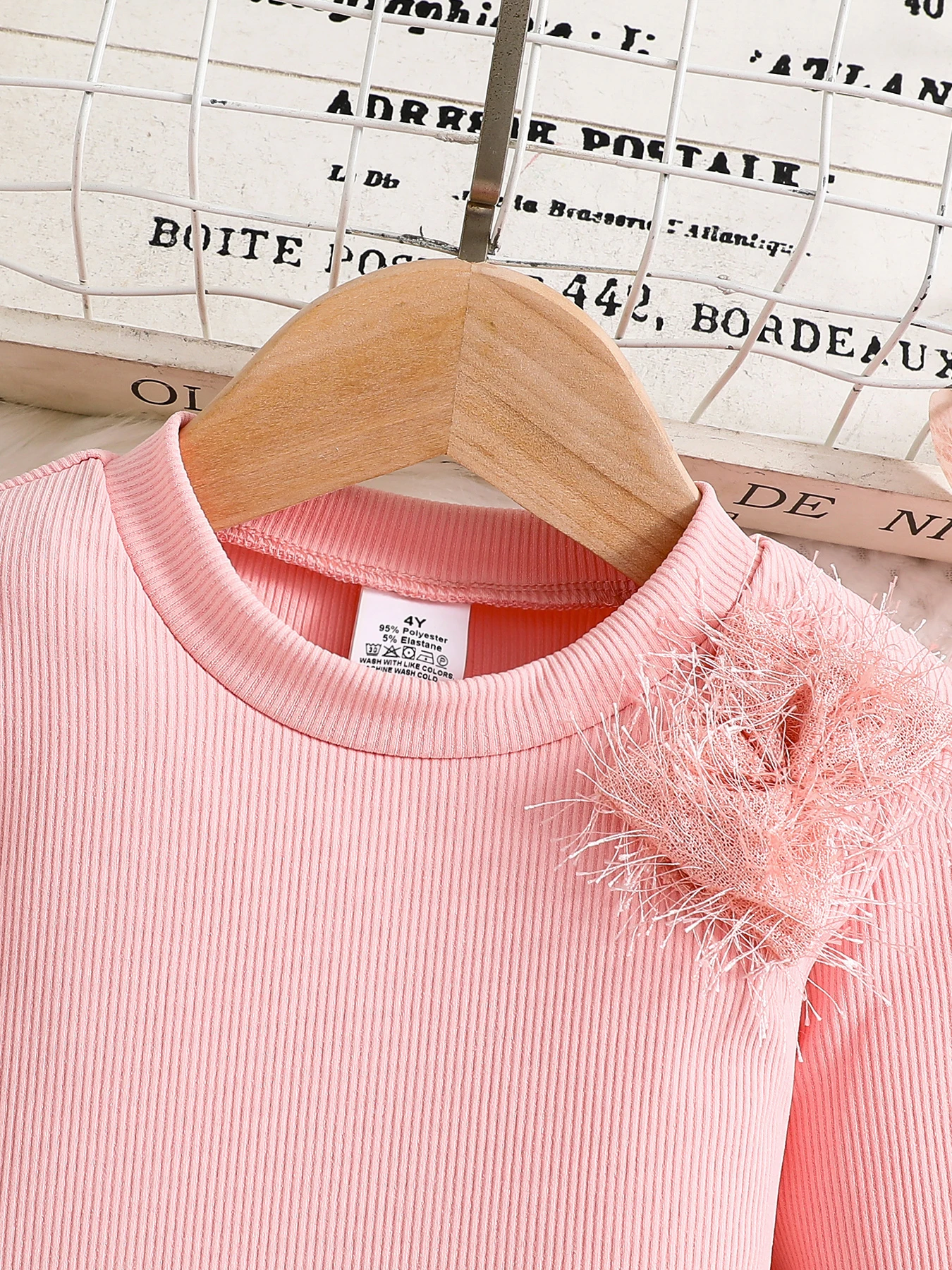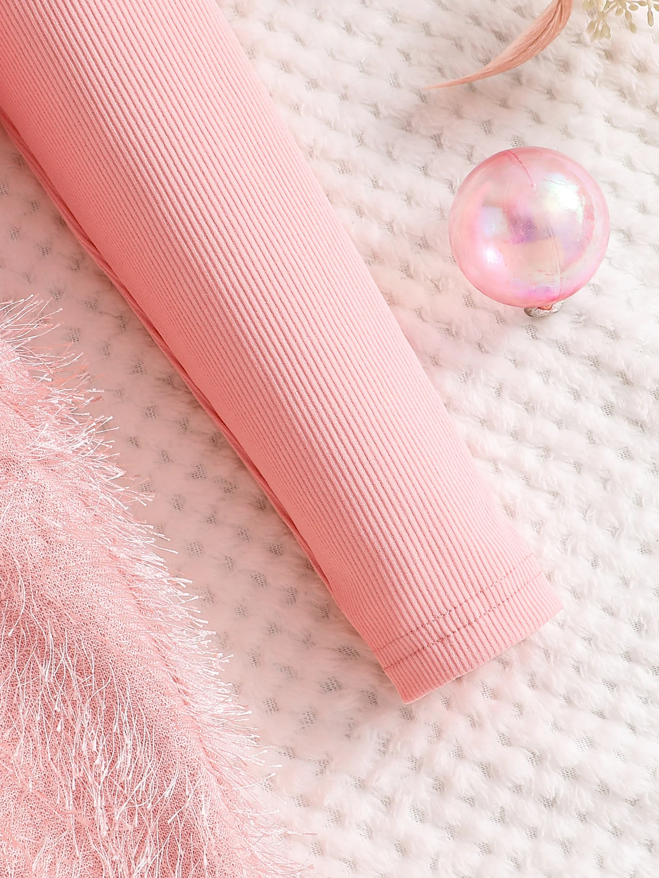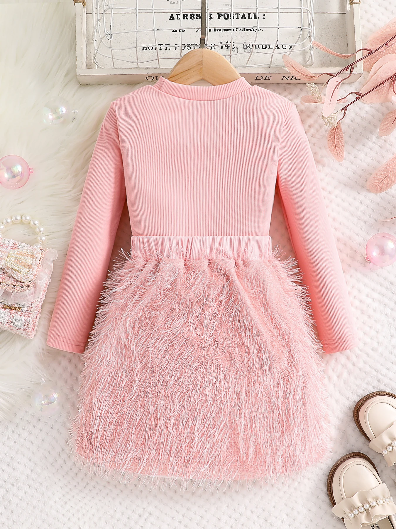 Gonna corta Mao rosa girocollo a maniche lunghe e giunture per bambini, grazioso set da 2 pezzi, nuova moda, primavera e autunno