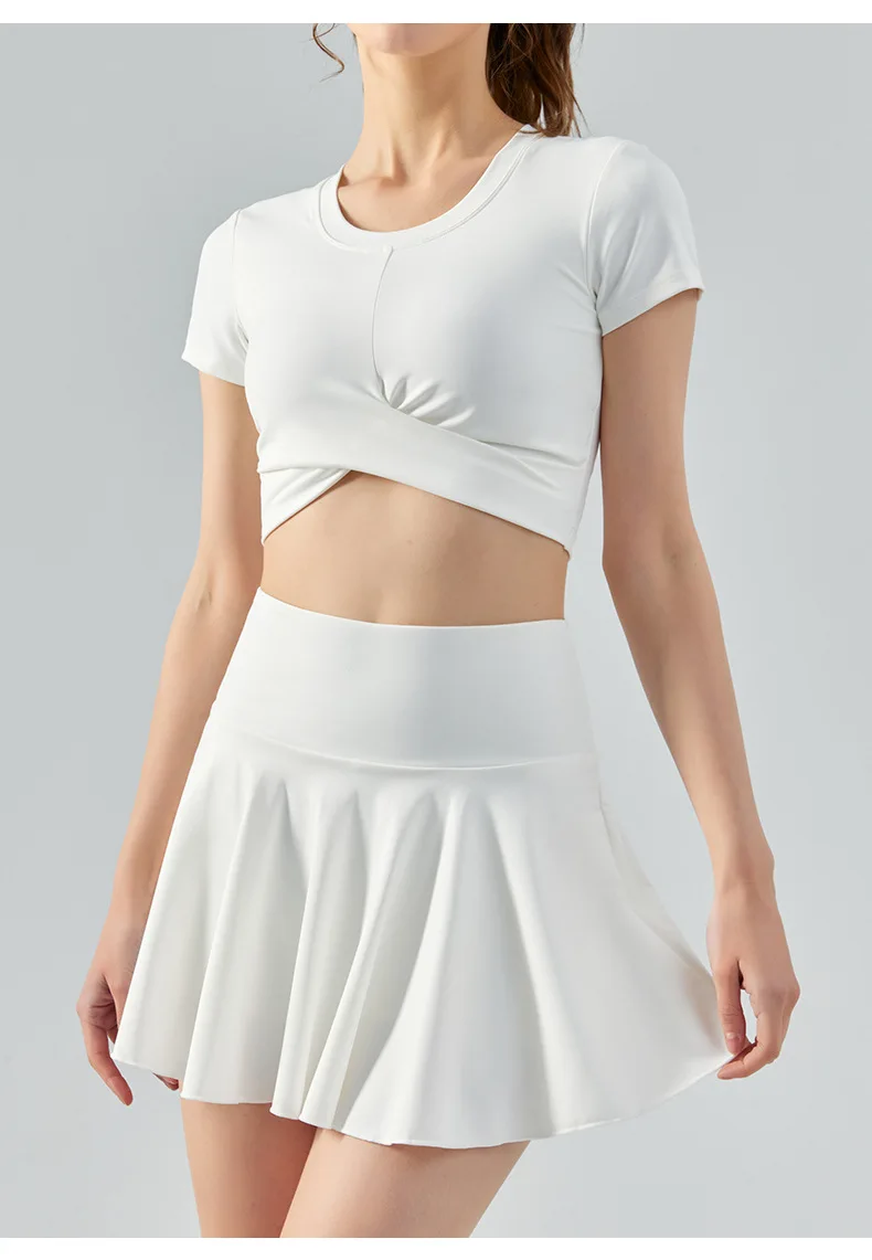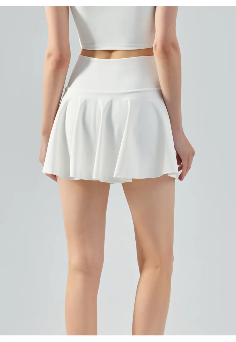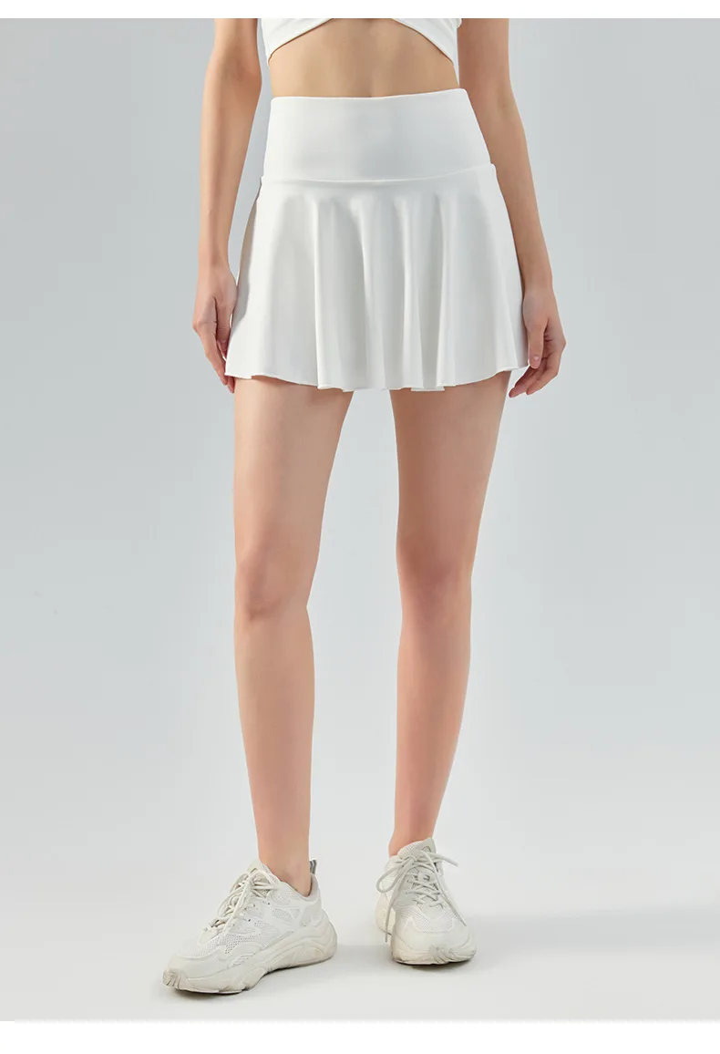 Gonna da yoga a vita alta da donna con pantaloncini – Gonna da tennis da allenamento in due pezzi finta, Gonna da corsa con controllo della pancia, Orlo anti-peek Wave Abbigliamento sportivo da palestra