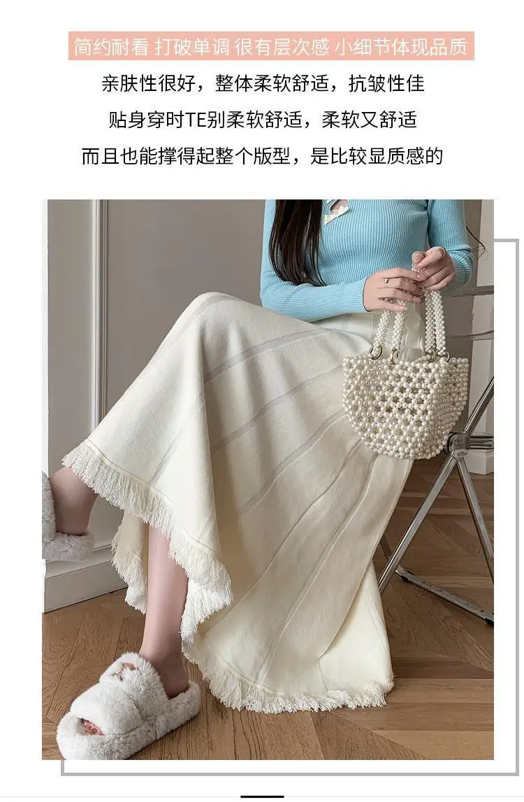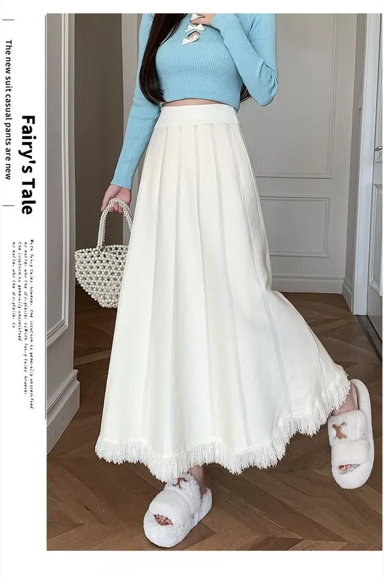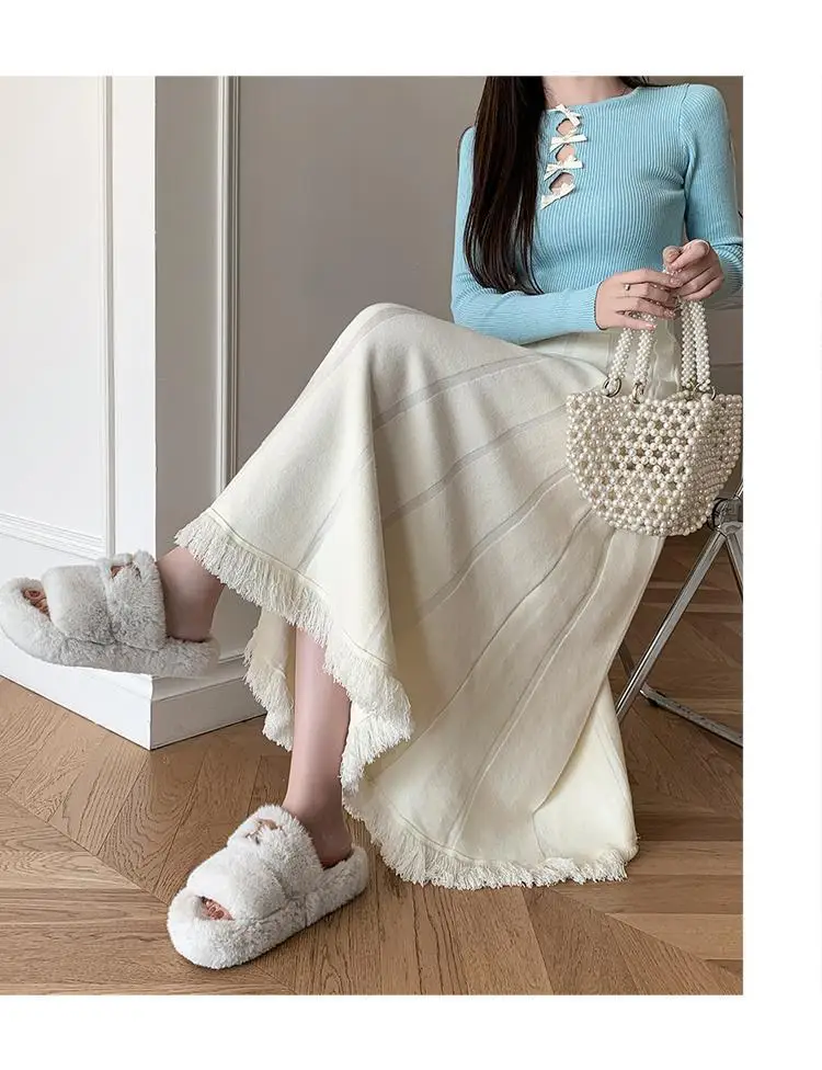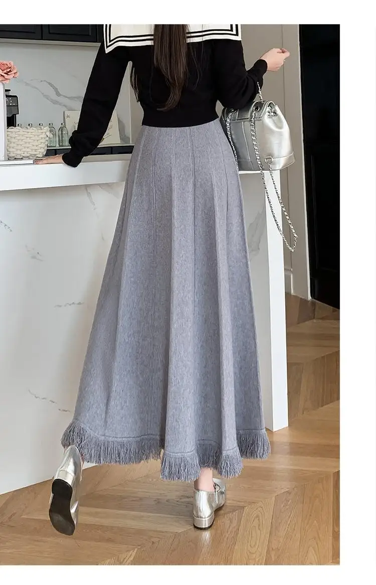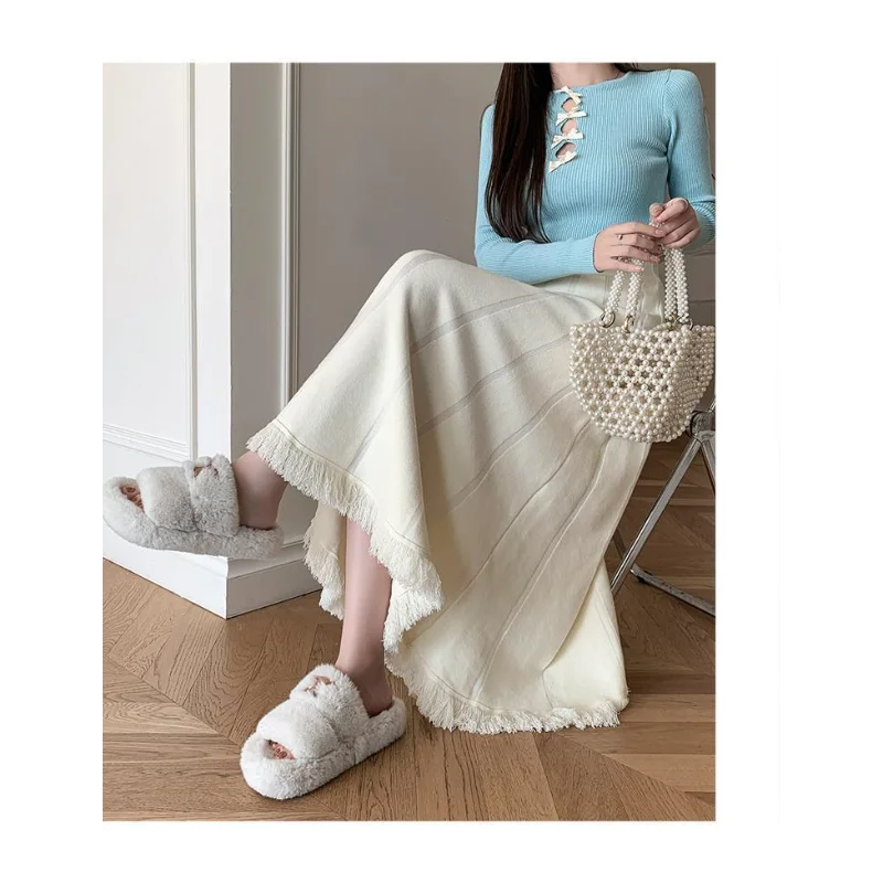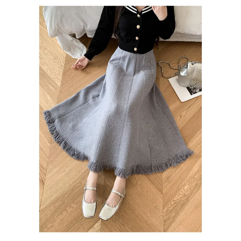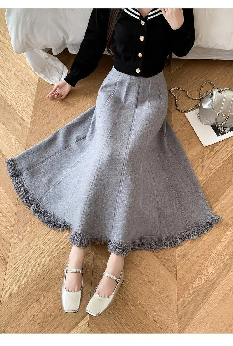 Gonna da donna in maglia con nappa a trapezio sportiva grande slim a vita alta di media lunghezza autunno e inverno 2025