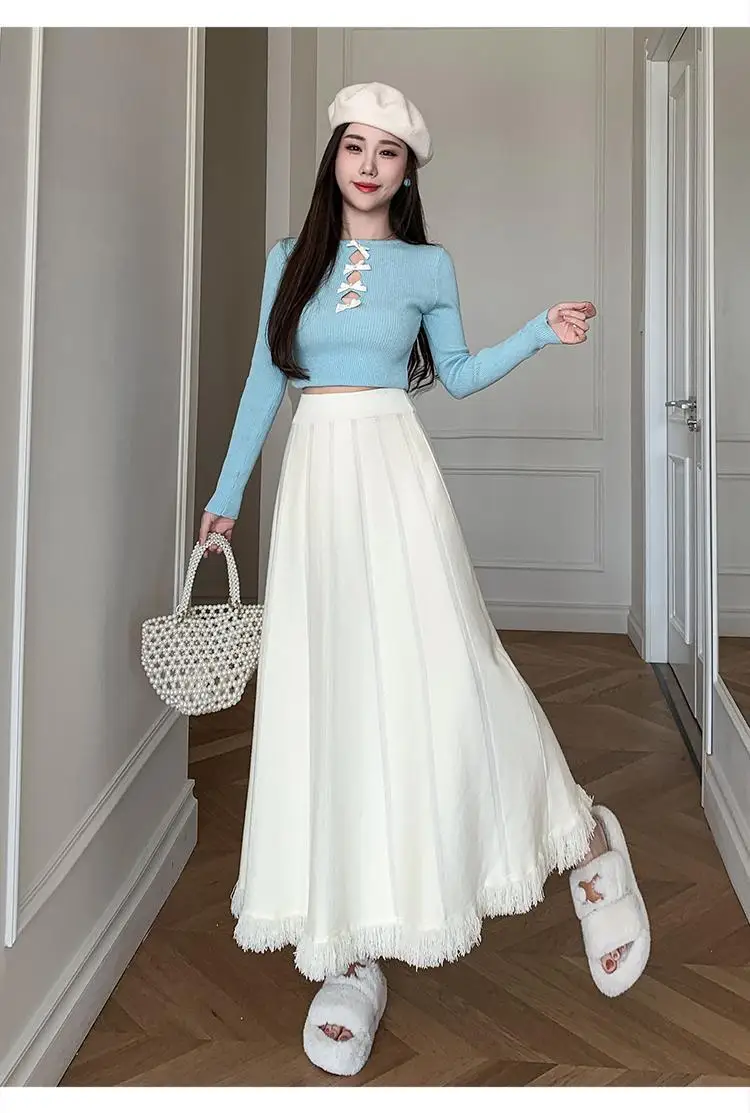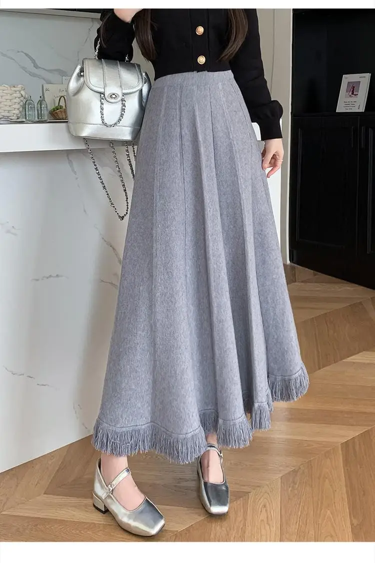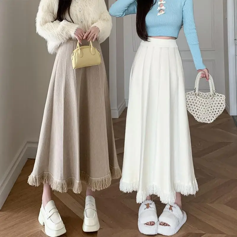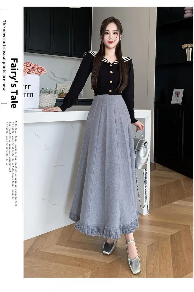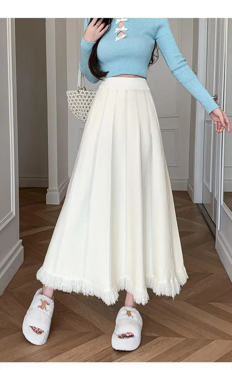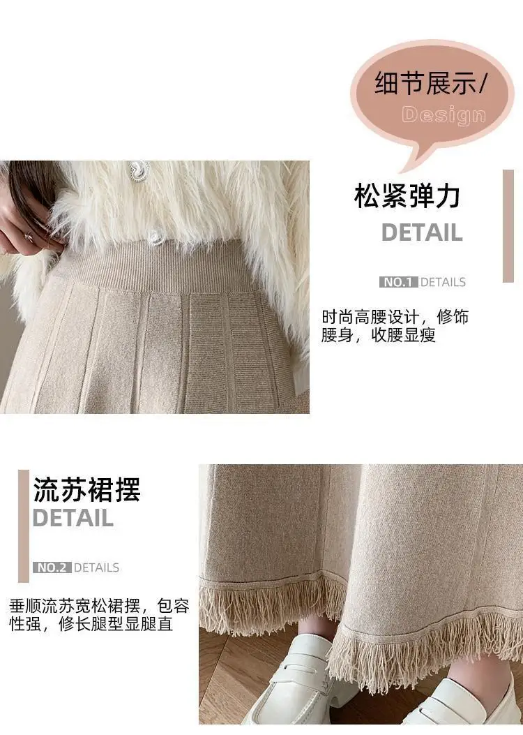 Gonna da donna in maglia con nappa a trapezio sportiva grande slim a vita alta di media lunghezza autunno e inverno 2025