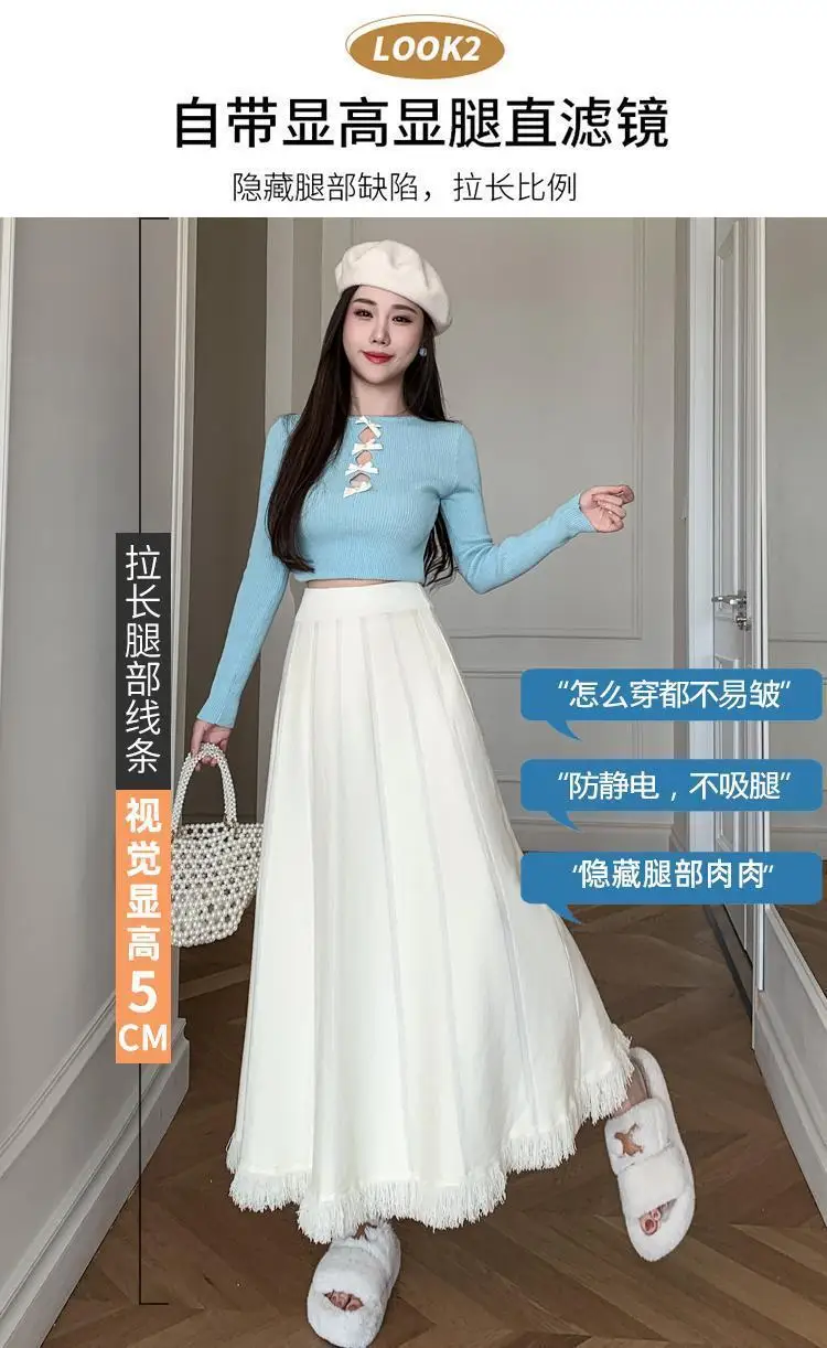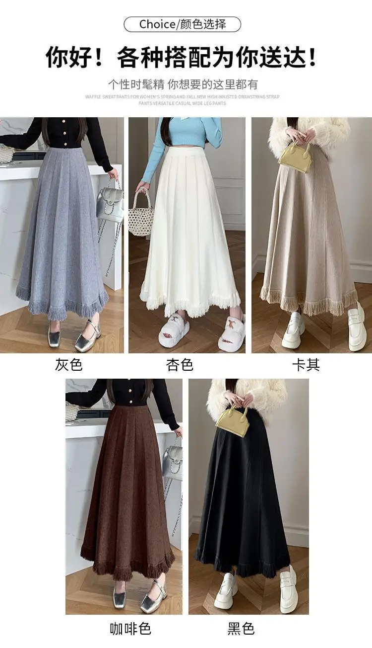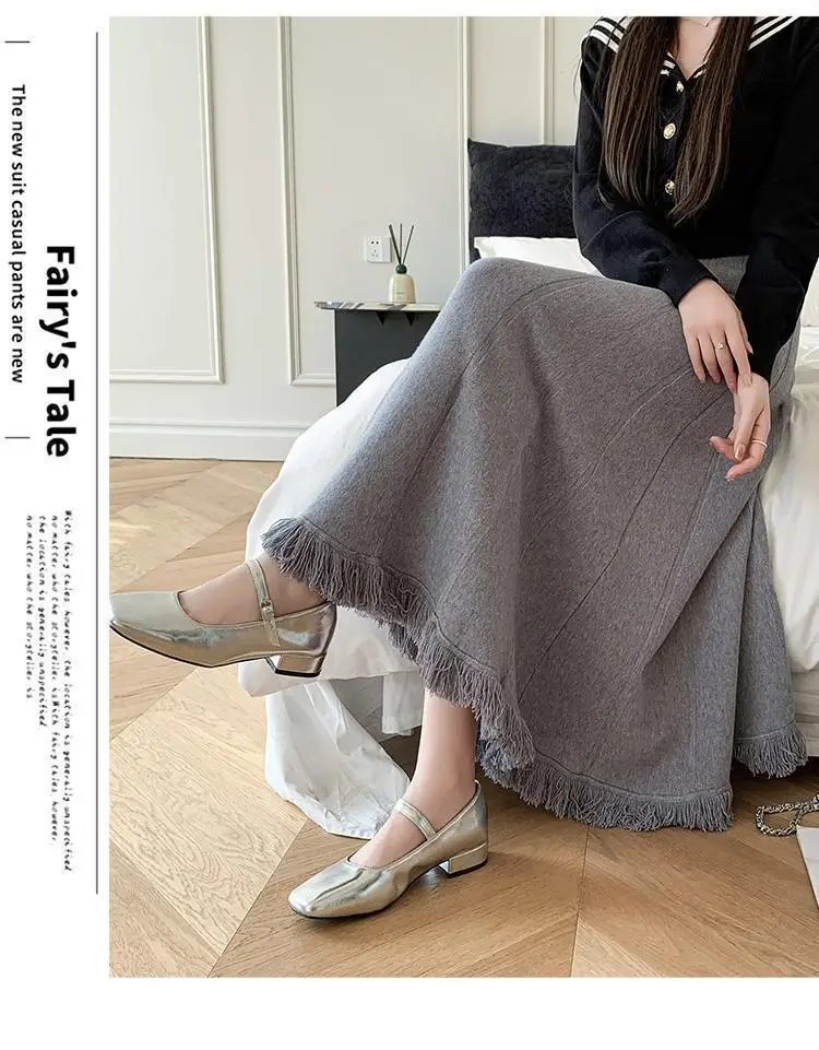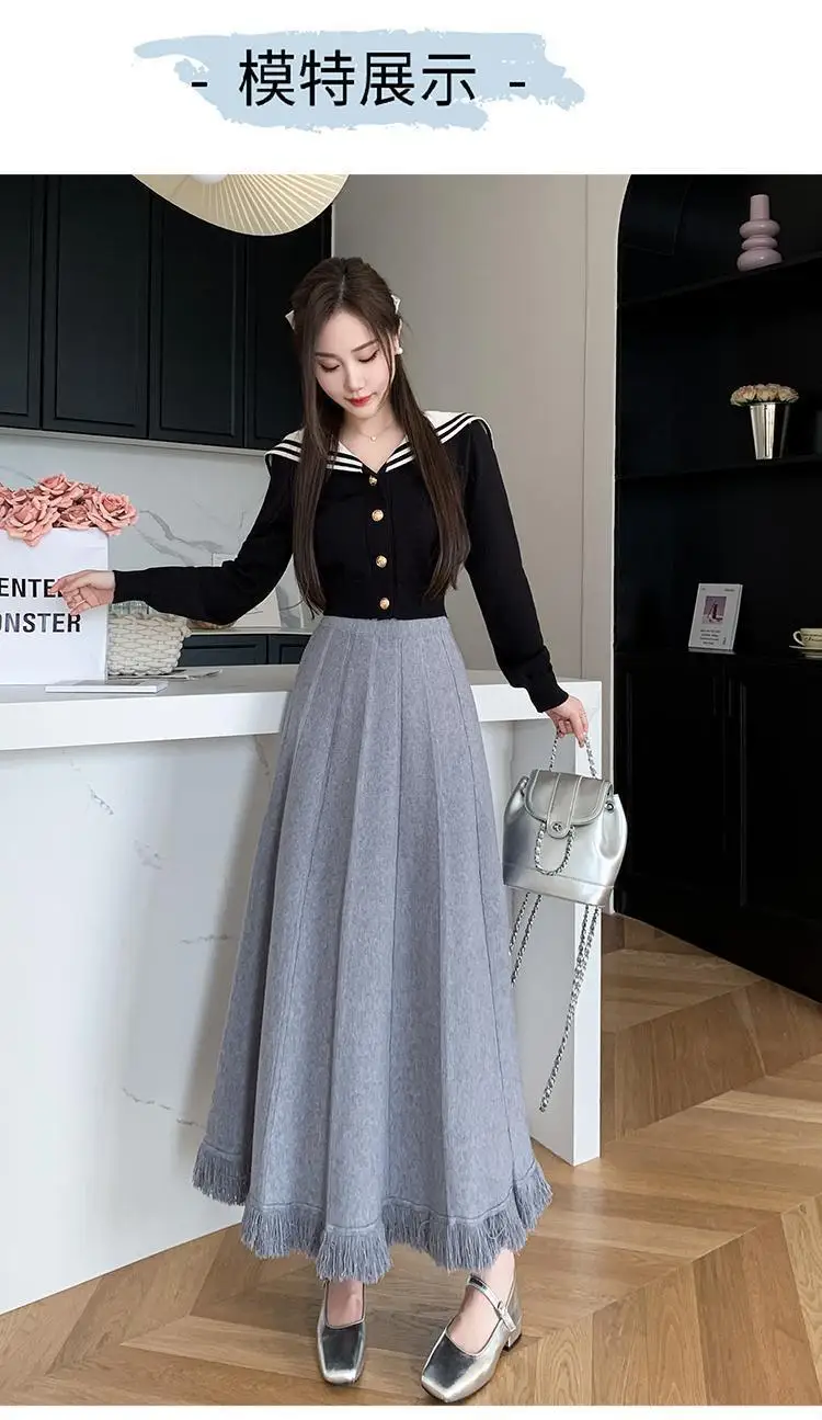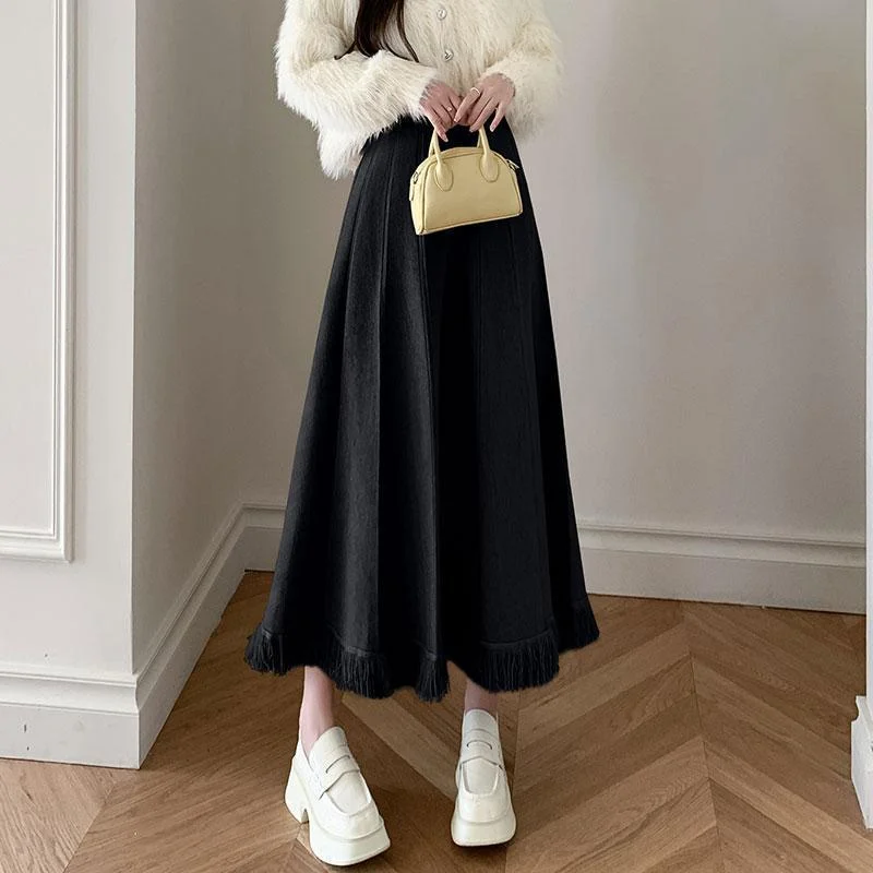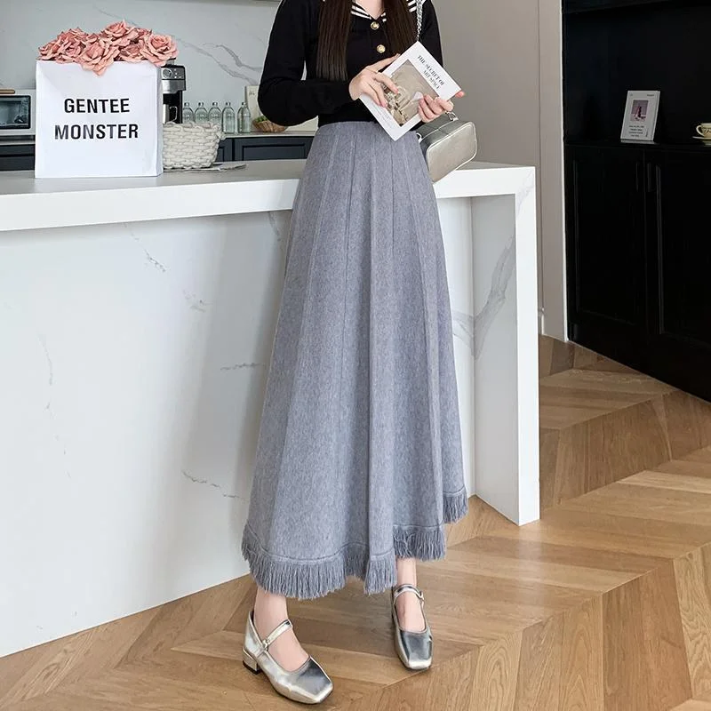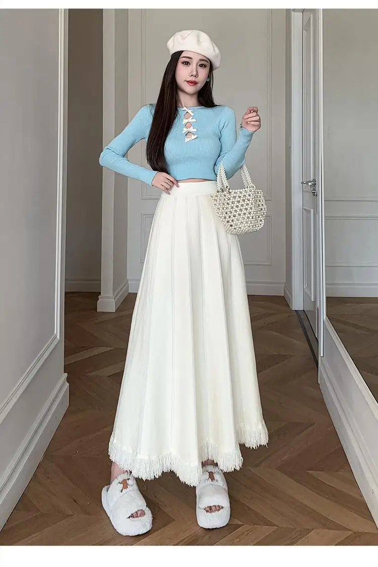 Gonna da donna in maglia con nappa a trapezio sportiva grande slim a vita alta di media lunghezza autunno e inverno 2025