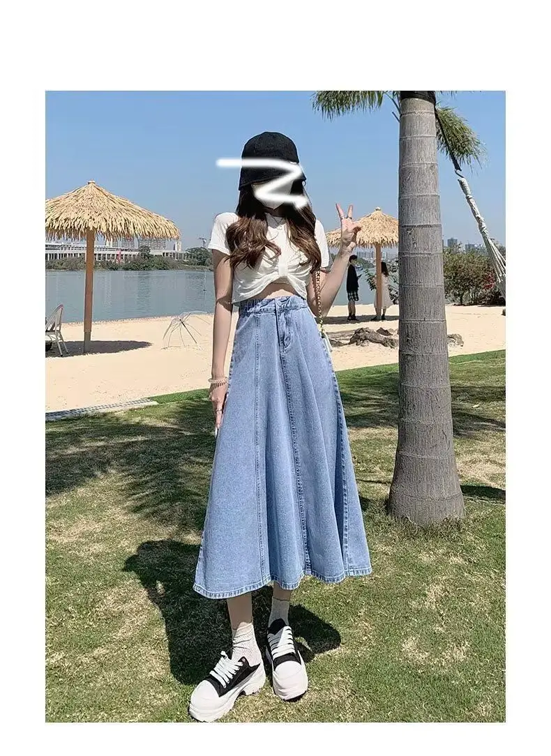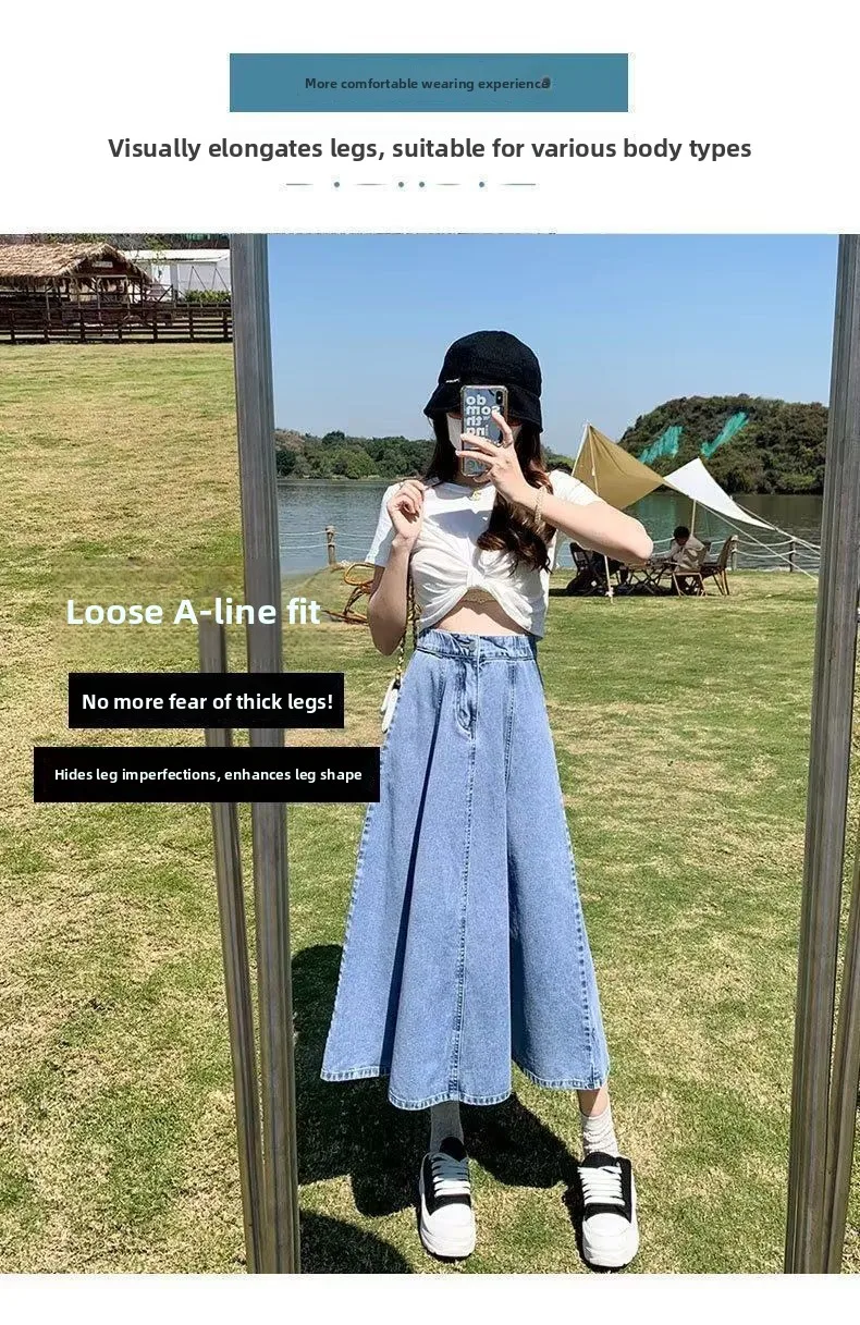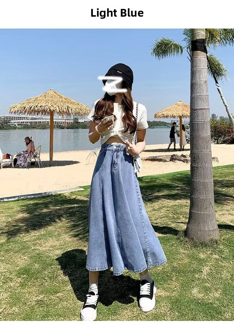 Il design a vita alta di questa gonna in denim accentua la tua figura, creando un effetto snellente e aggiungendo eleganza alla tua silhouette.