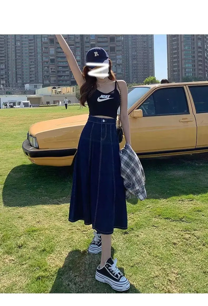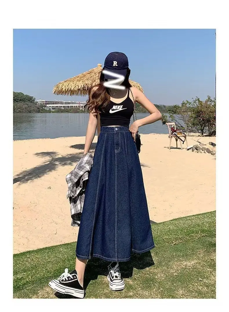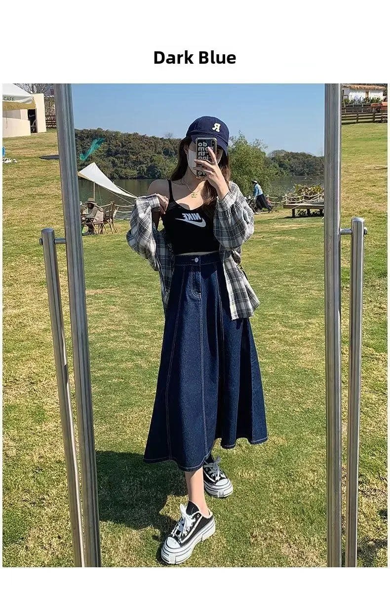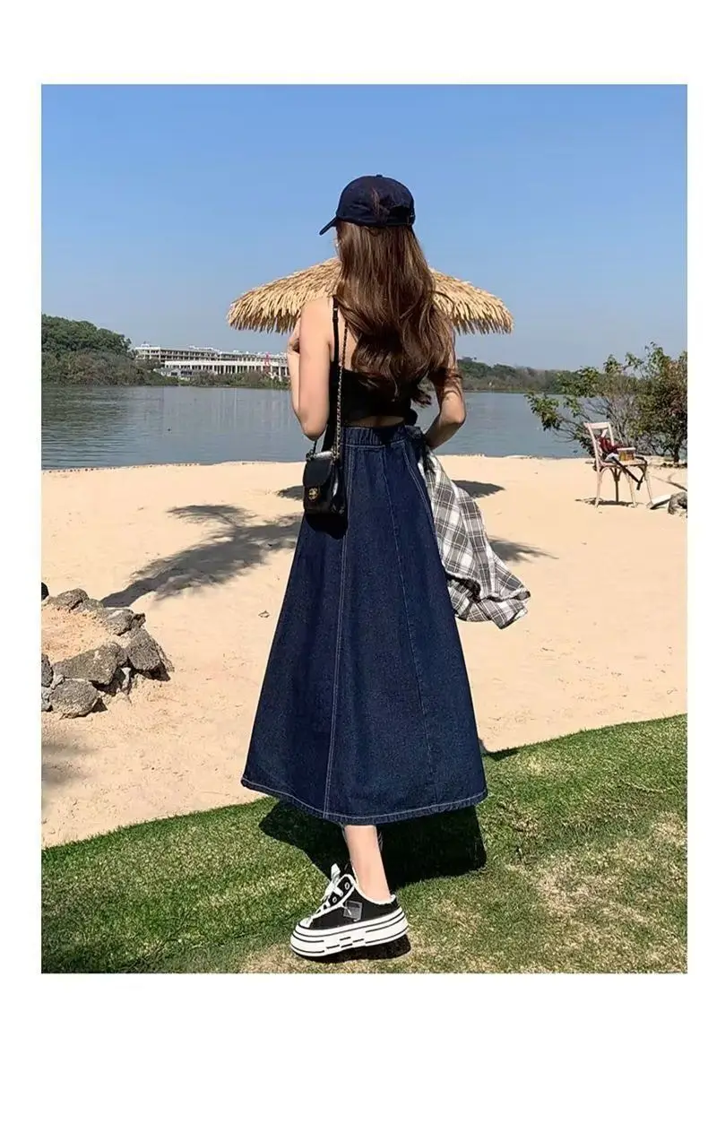 Il design a vita alta di questa gonna in denim accentua la tua figura, creando un effetto snellente e aggiungendo eleganza alla tua silhouette.