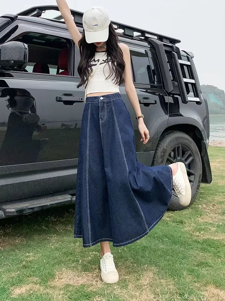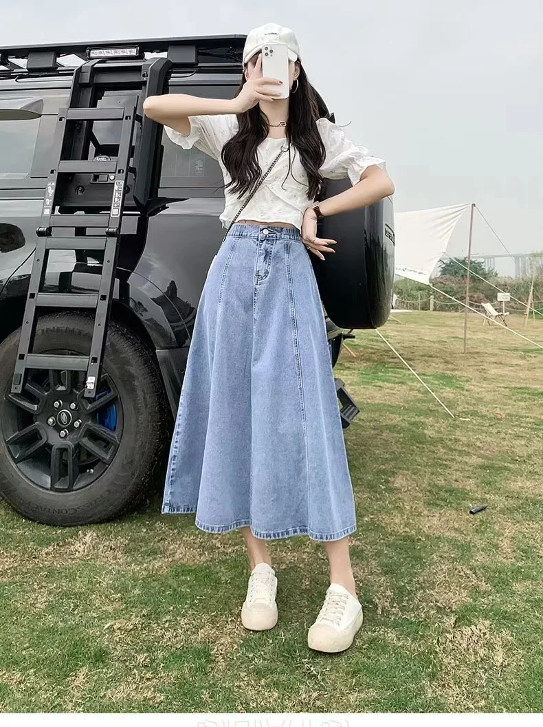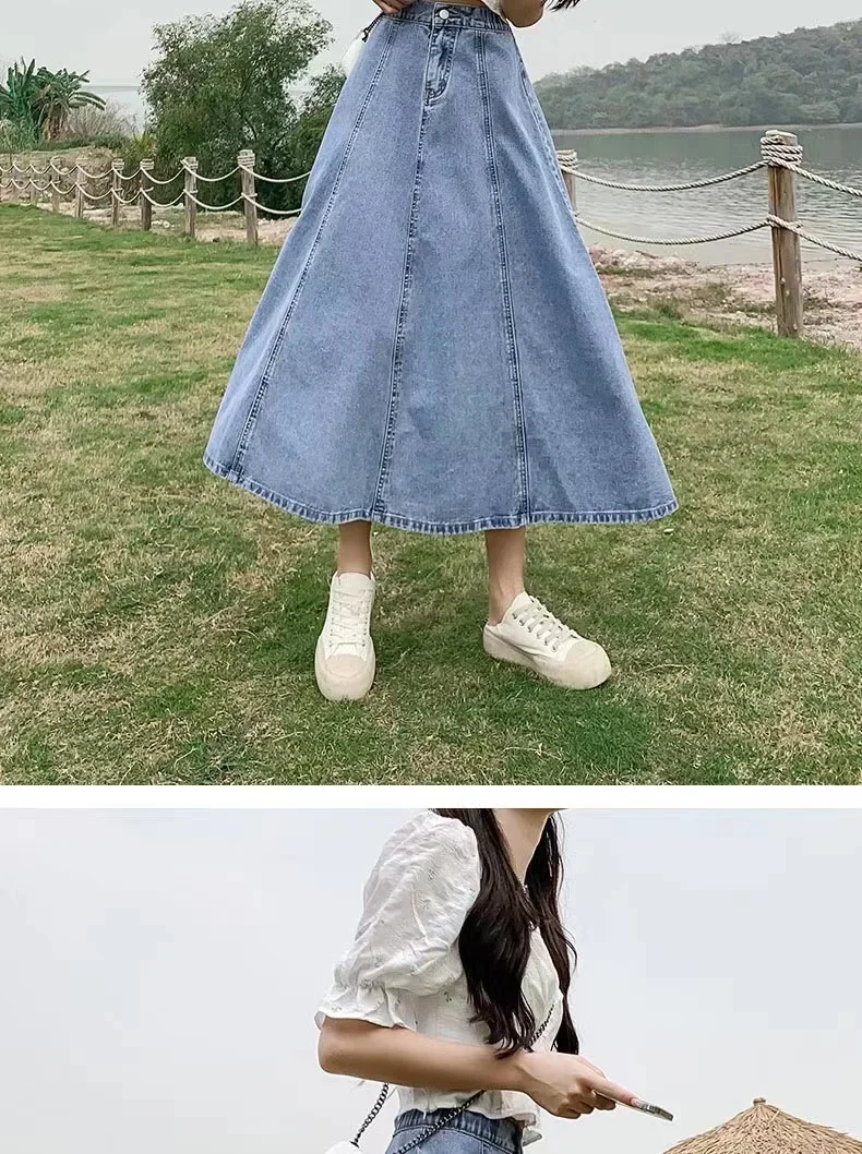 • Materiale denim:Realizzata in denim di alta qualità, questa gonna combina resistenza con un look classico, perfetta per ogni occasione casual.