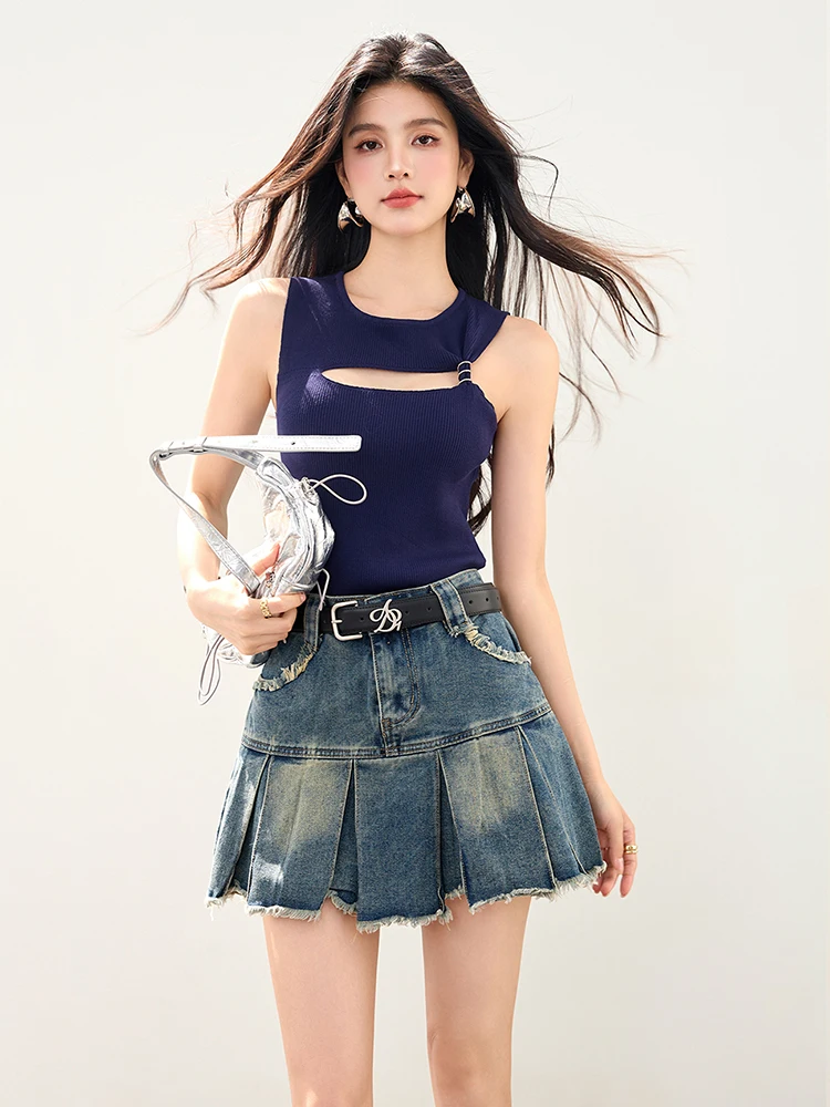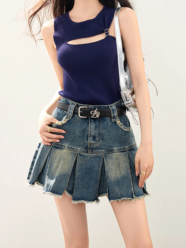 Gonna di jeans moda donna 2025 estate nuova mini gonne a pieghe retrò Y2k gonna di jeans a vita alta streetwear casual