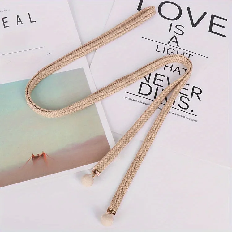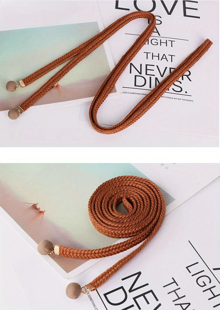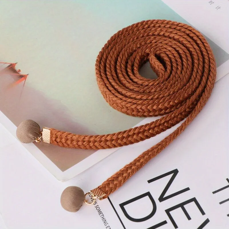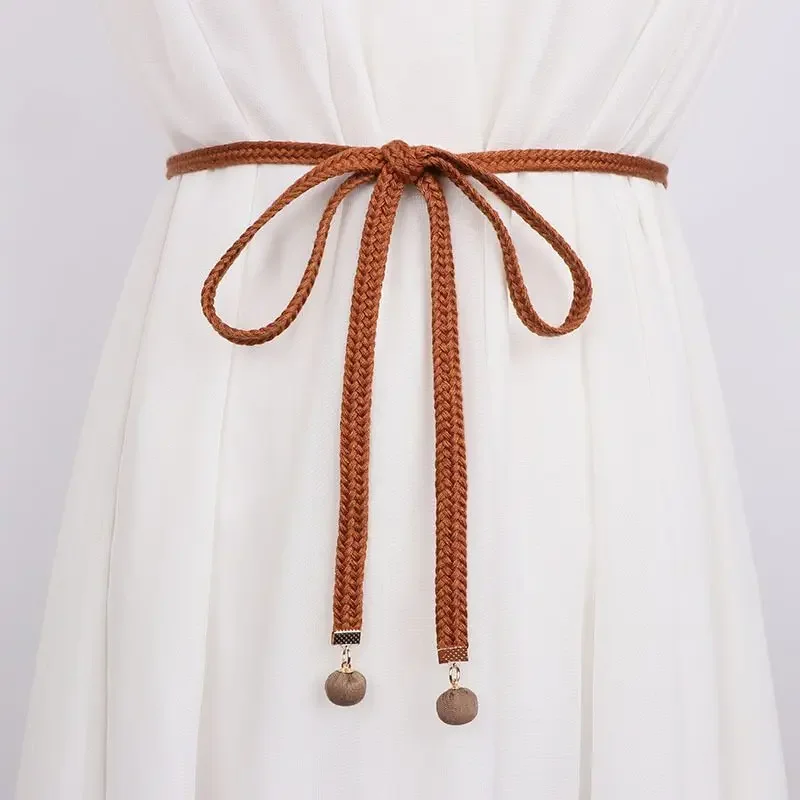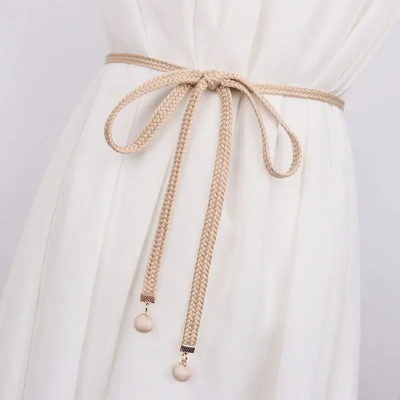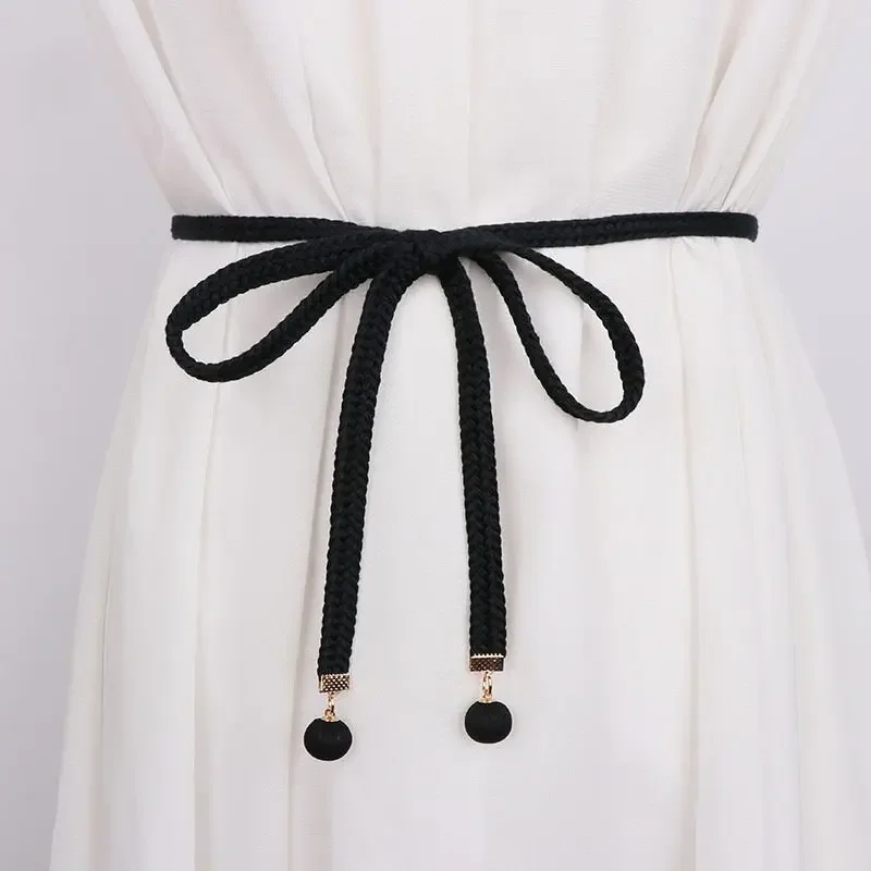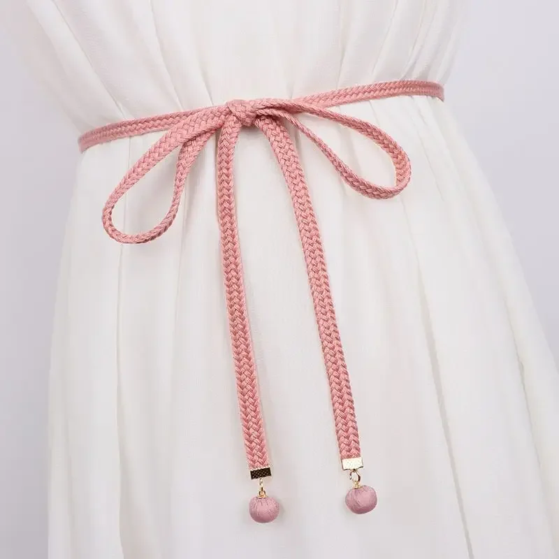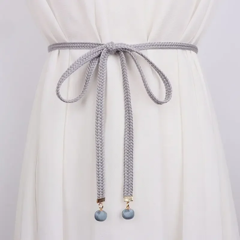 Gonna di lana con cintura sottile intrecciata in cotone gonna semplice con corda in vita per tutti i fiammiferi camicia Casual cintura con pantaloni a nastro Gm1410
