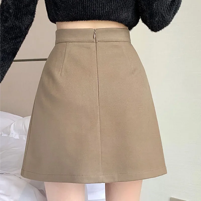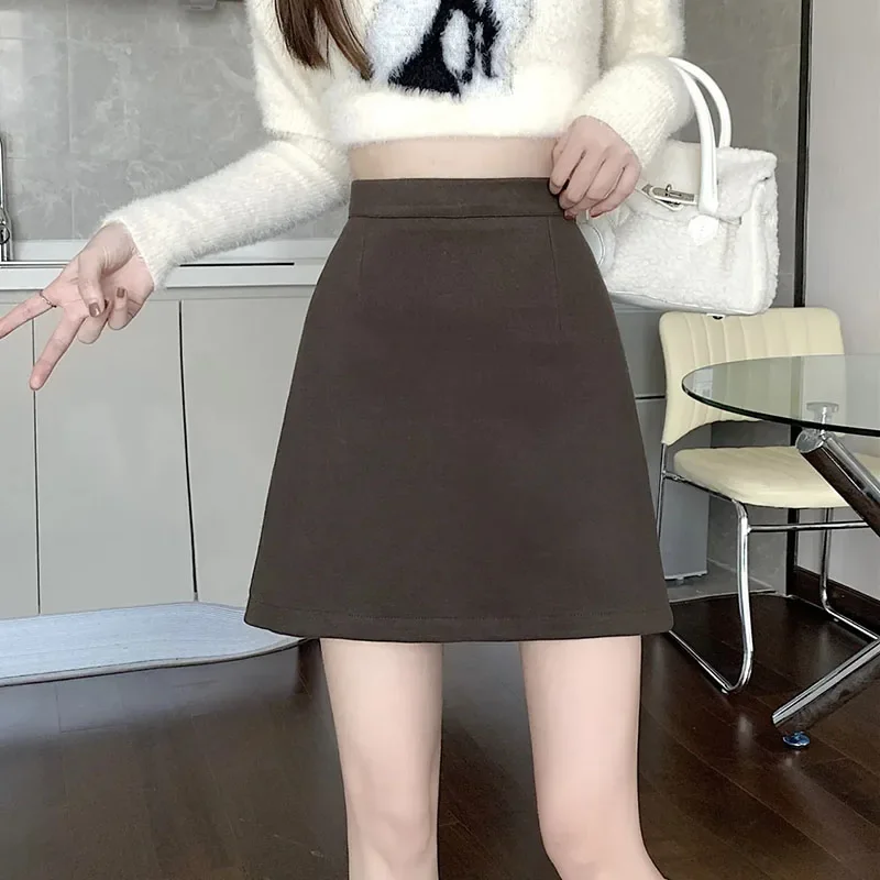 Gonna di lana da donna autunno inverno 2024 nuovo stile coreano a vita alta aderente mini gonne gonna a trapezio con cerniera stile college da donna