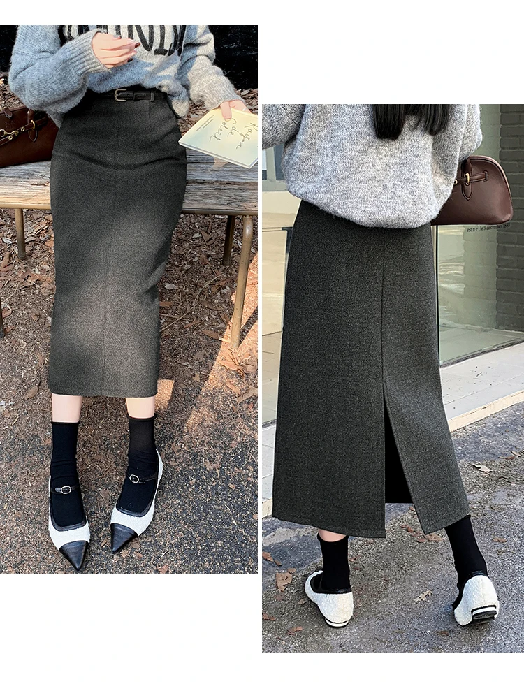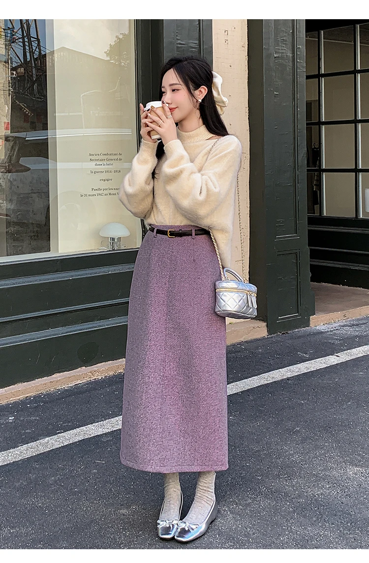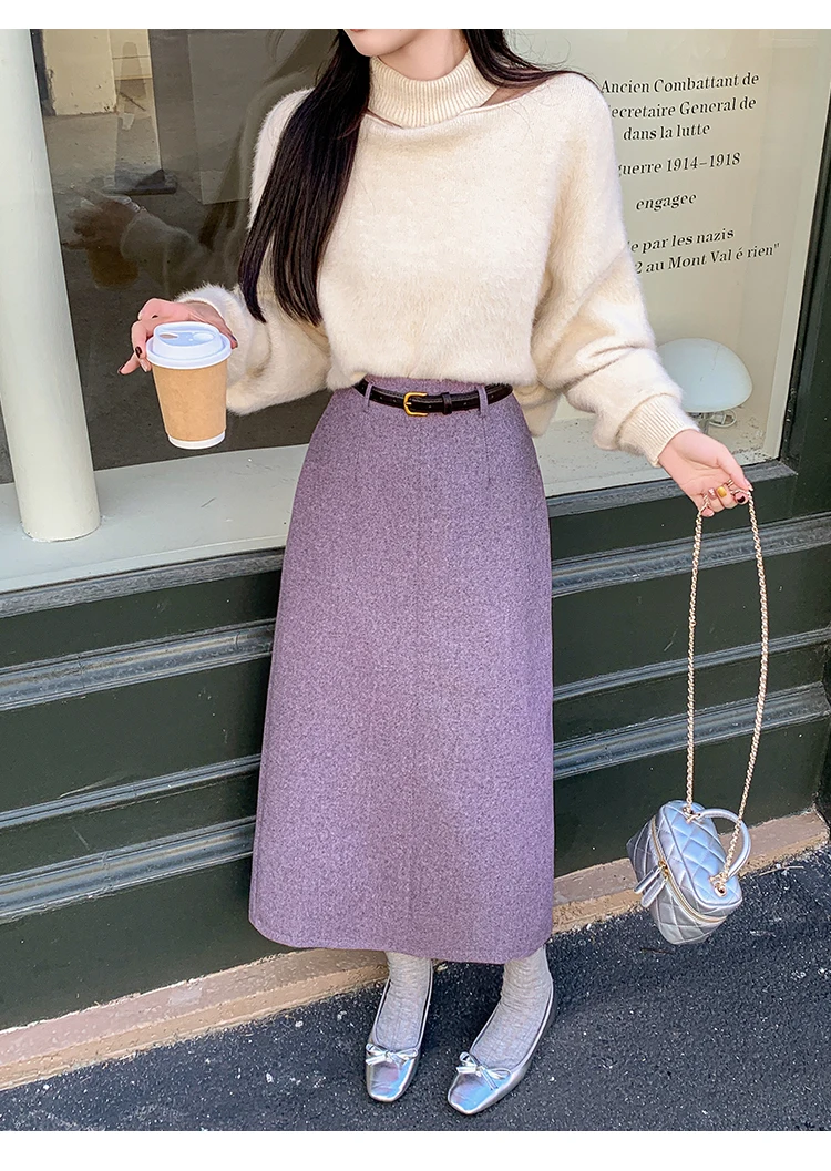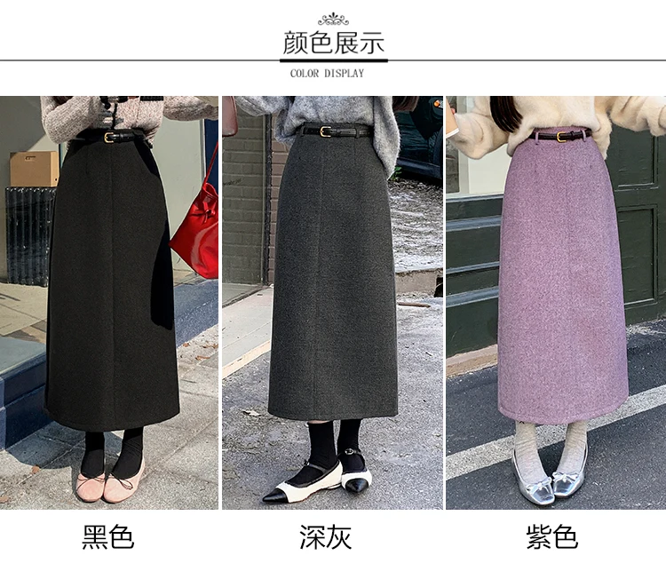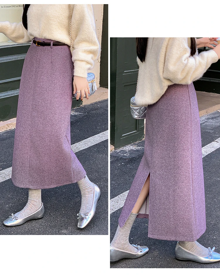 Gonna di lana viola di alta qualità Donna Autunno Inverno Elegante gonna lunga dritta Office Ladies Vintage Back Split Faldas Mujer Nuovo