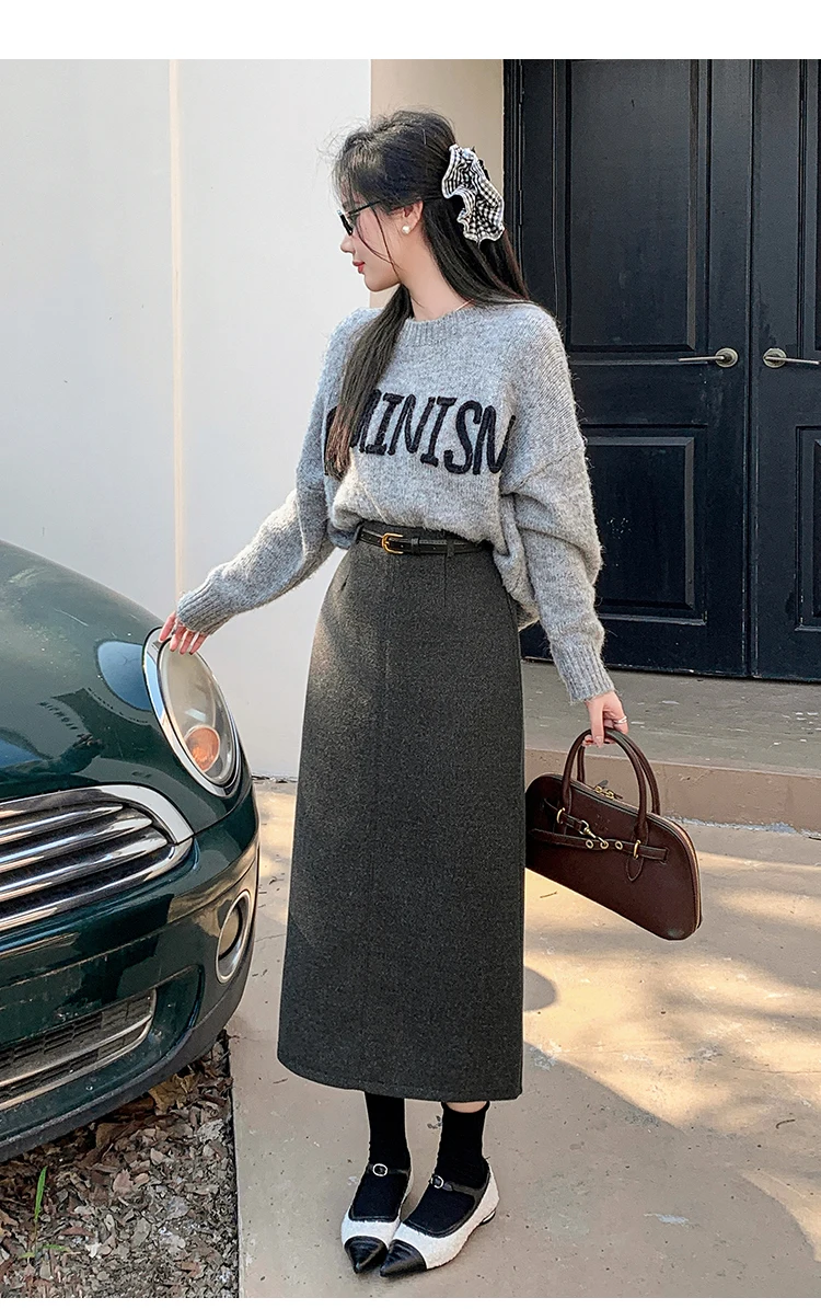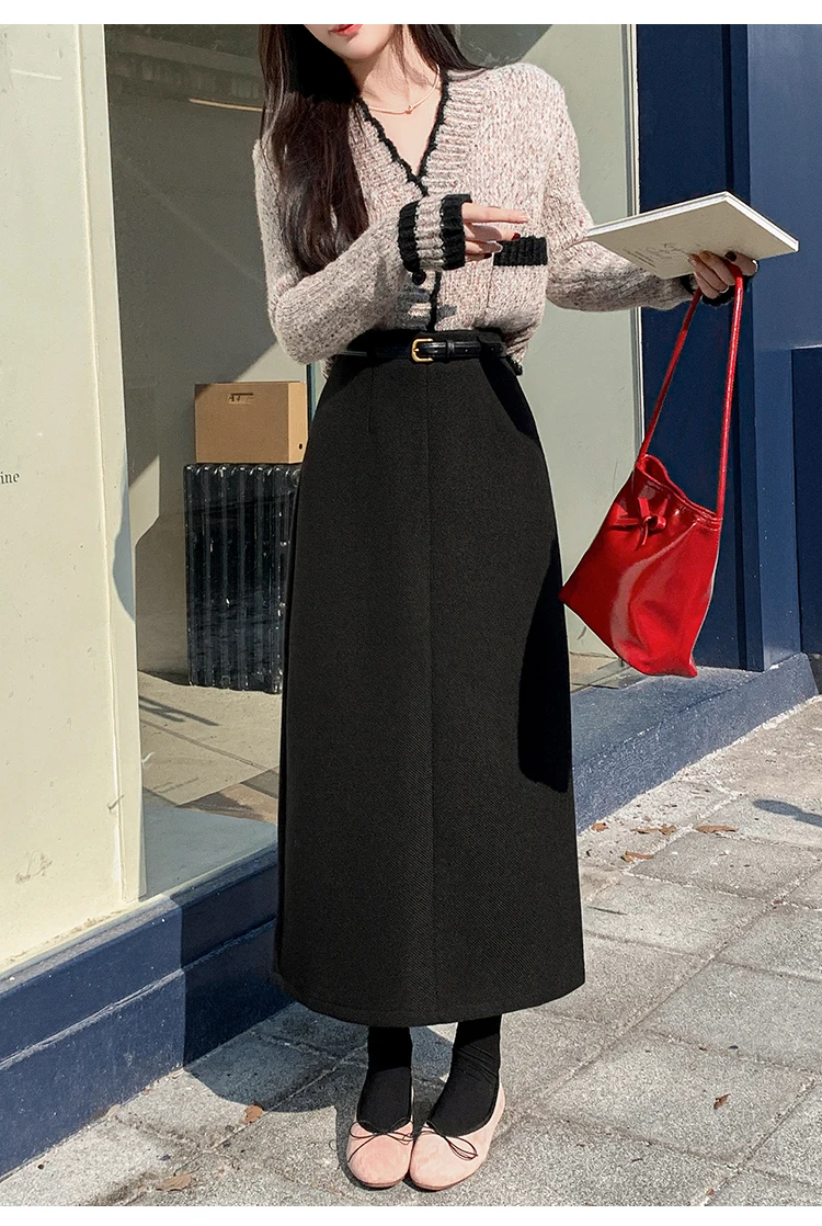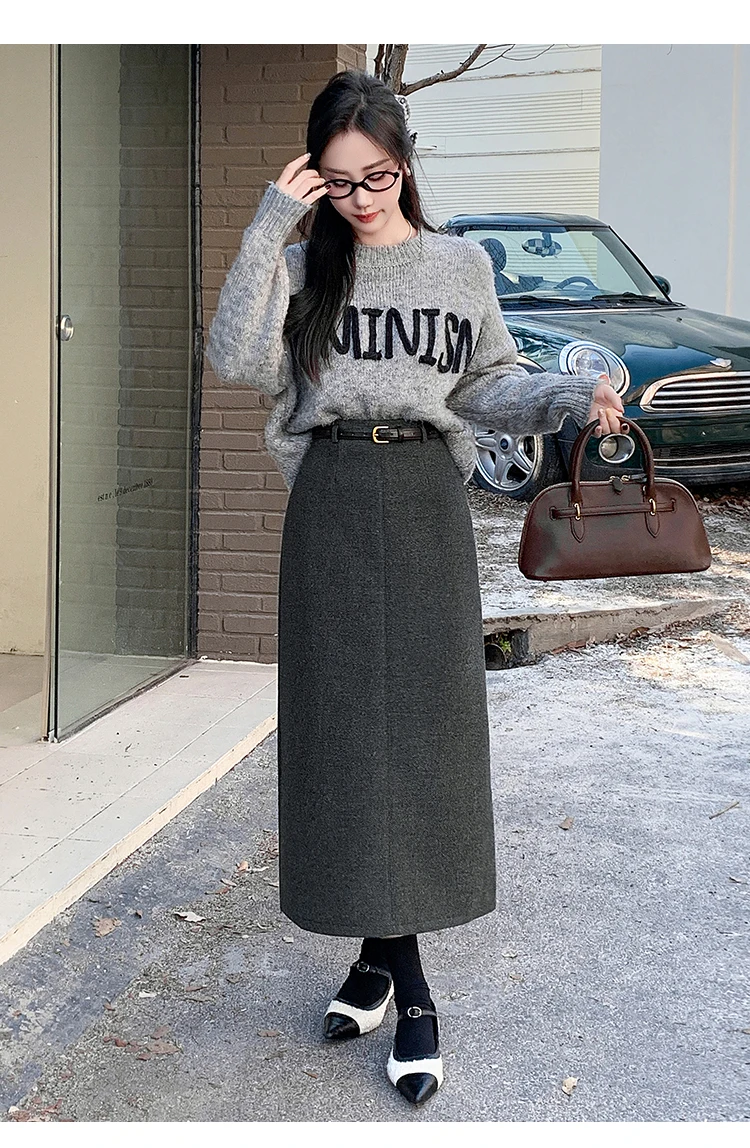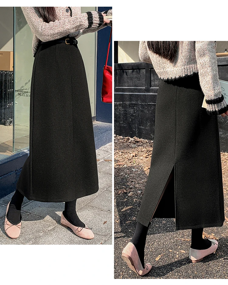 Gonna di lana viola di alta qualità Donna Autunno Inverno Elegante gonna lunga dritta Office Ladies Vintage Back Split Faldas Mujer Nuovo