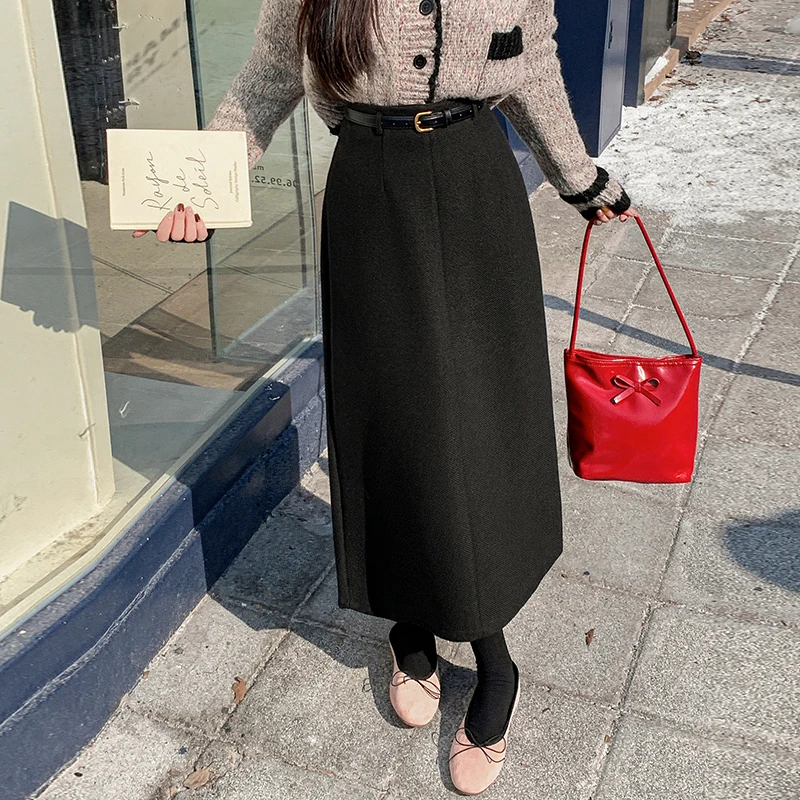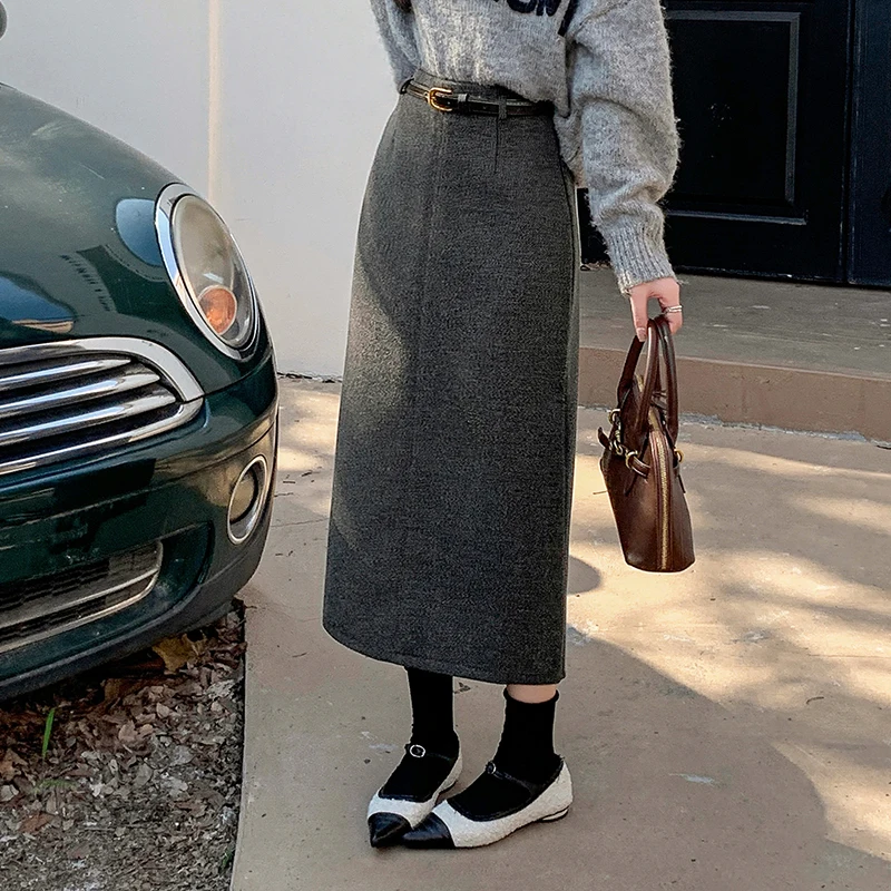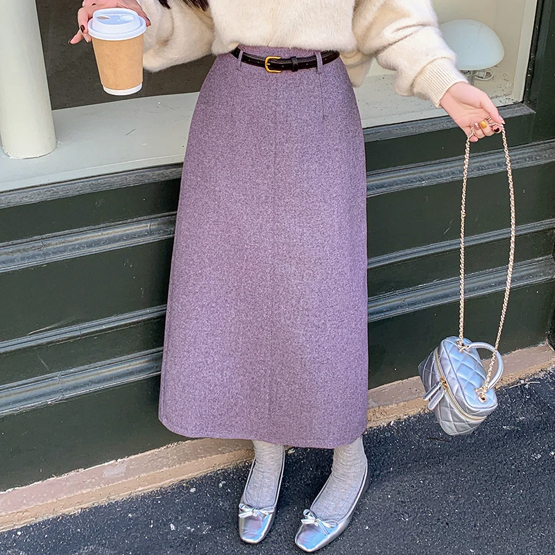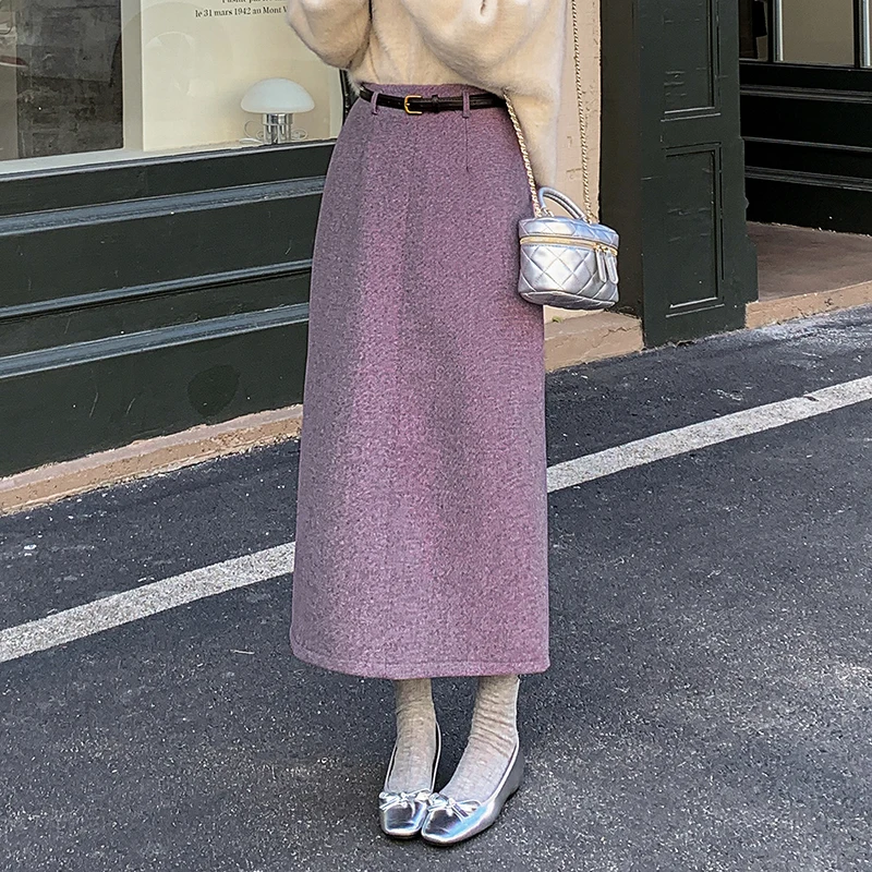 Gonna di lana viola di alta qualità Donna Autunno Inverno Elegante gonna lunga dritta Office Ladies Vintage Back Split Faldas Mujer Nuovo
