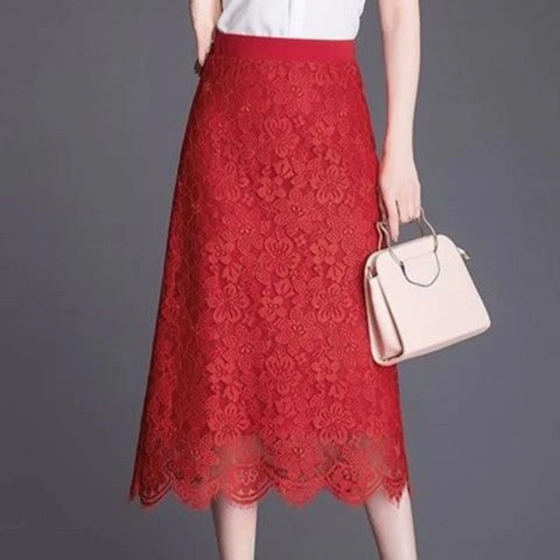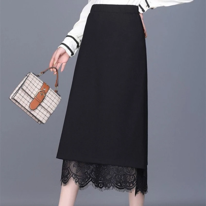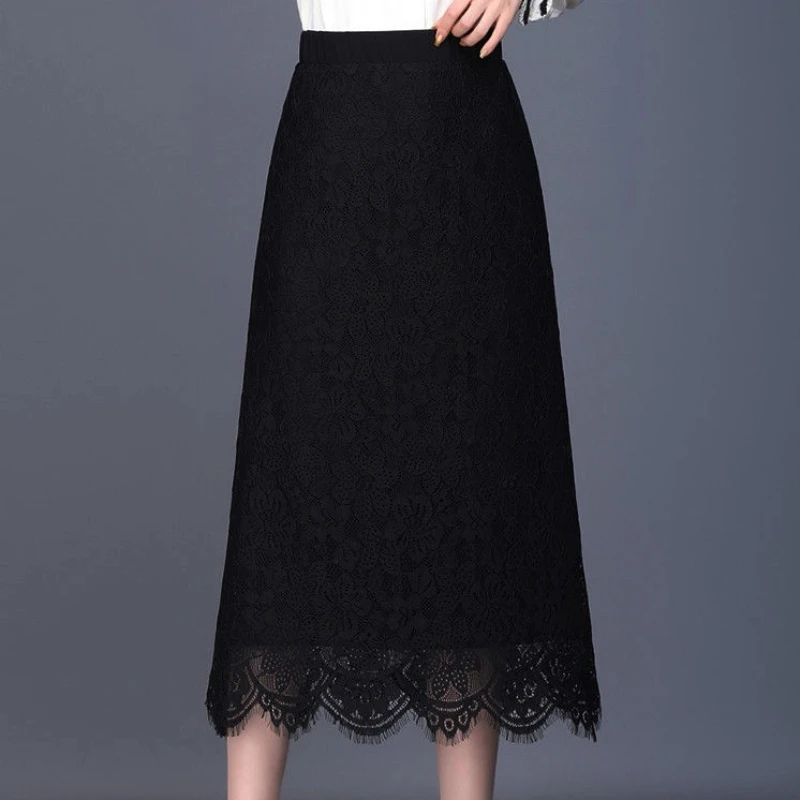 Gonna gonna di pizzo Nuova gonna a un passo sottile a vita alta con confezione sui fianchi Gonna di media lunghezza Gonna lunga nera