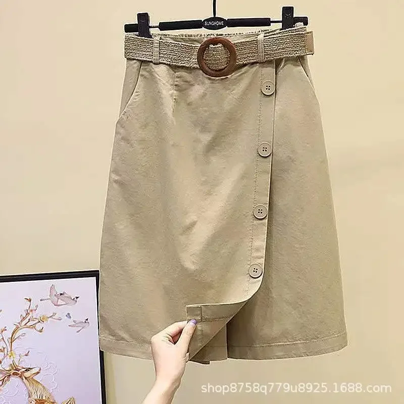 Gonna in cotone lavato Pantaloni Elastico in vita Mezza lunghezza Stile donna Nuova versione coreana di fascia alta estiva Integrata Falsa in due pezzi