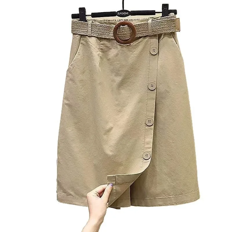 Gonna in cotone lavato Pantaloni Elastico in vita Mezza lunghezza Stile donna Nuova versione coreana di fascia alta estiva Integrata Falsa in due pezzi