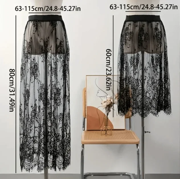 • Decorazione in pizzo:Caratterizzata da un’intricata decorazione in pizzo, questa gonna aggiunge un tocco di eleganza e femminilità a qualsiasi outfit.