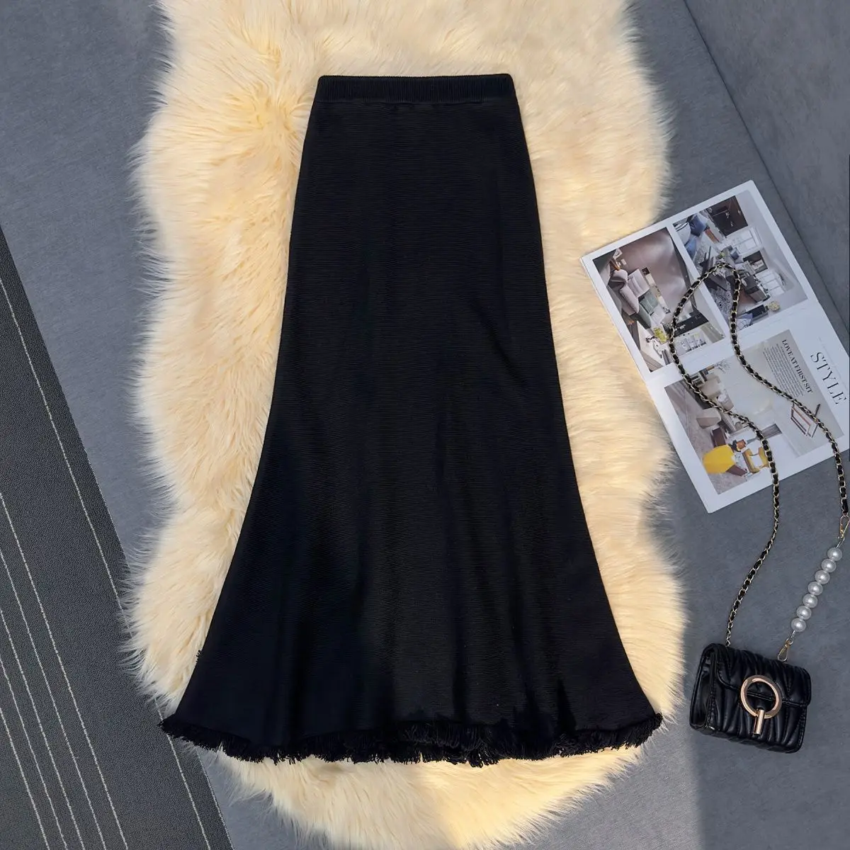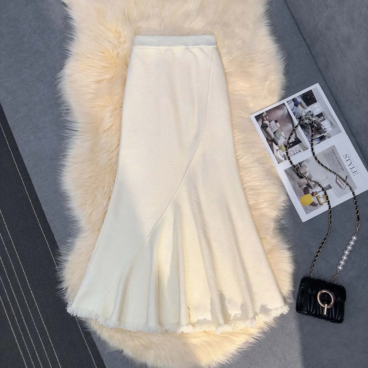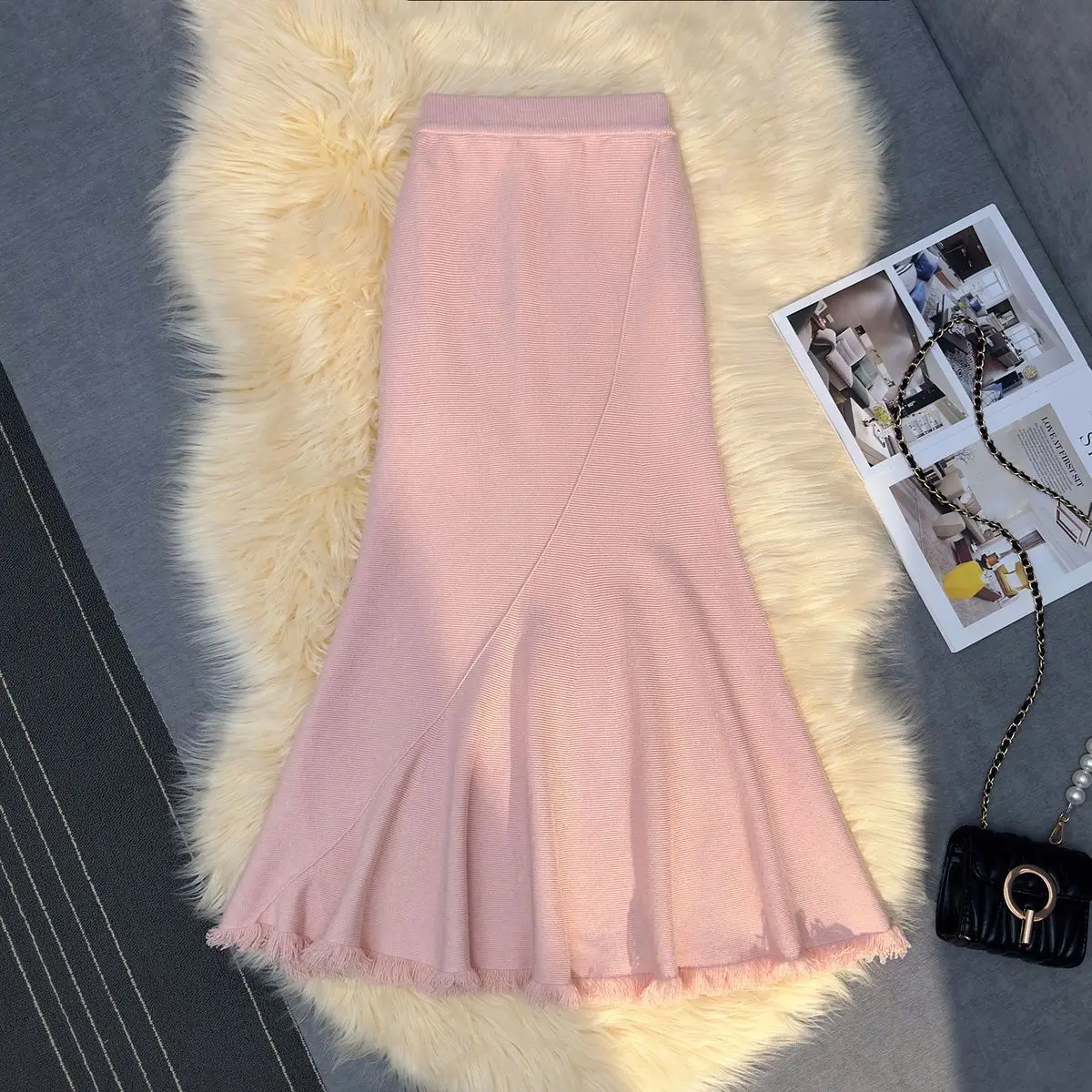 Gonna longuette a sirena in maglia spessa donna autunno inverno drappeggiato sottile a vita alta una linea gonne lunghe aderenti con nappe