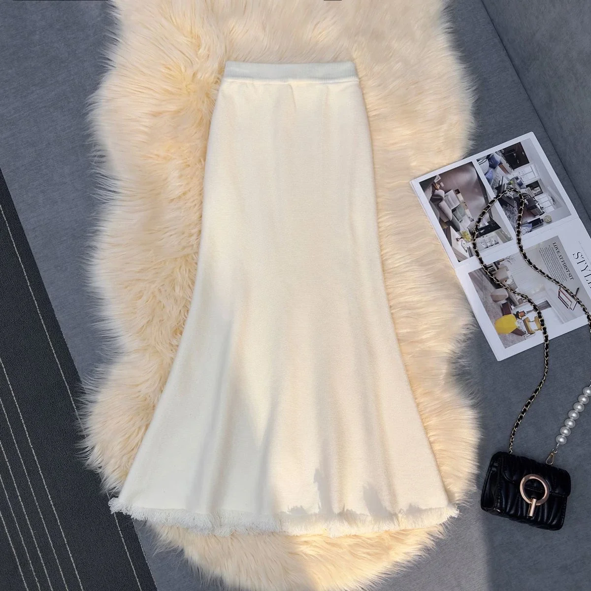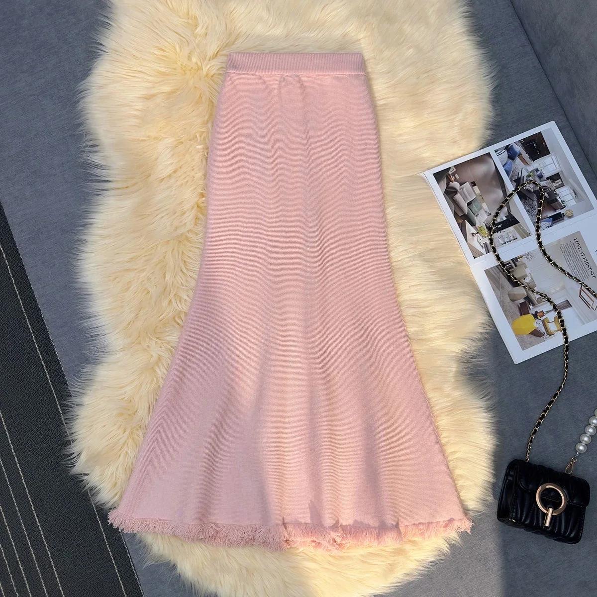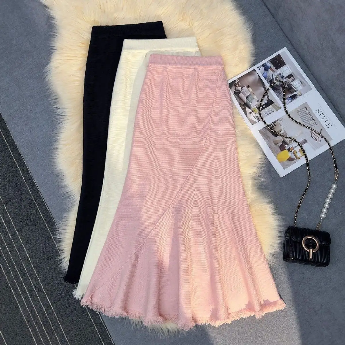 Gonna longuette a sirena in maglia spessa donna autunno inverno drappeggiato sottile a vita alta una linea gonne lunghe aderenti con nappe