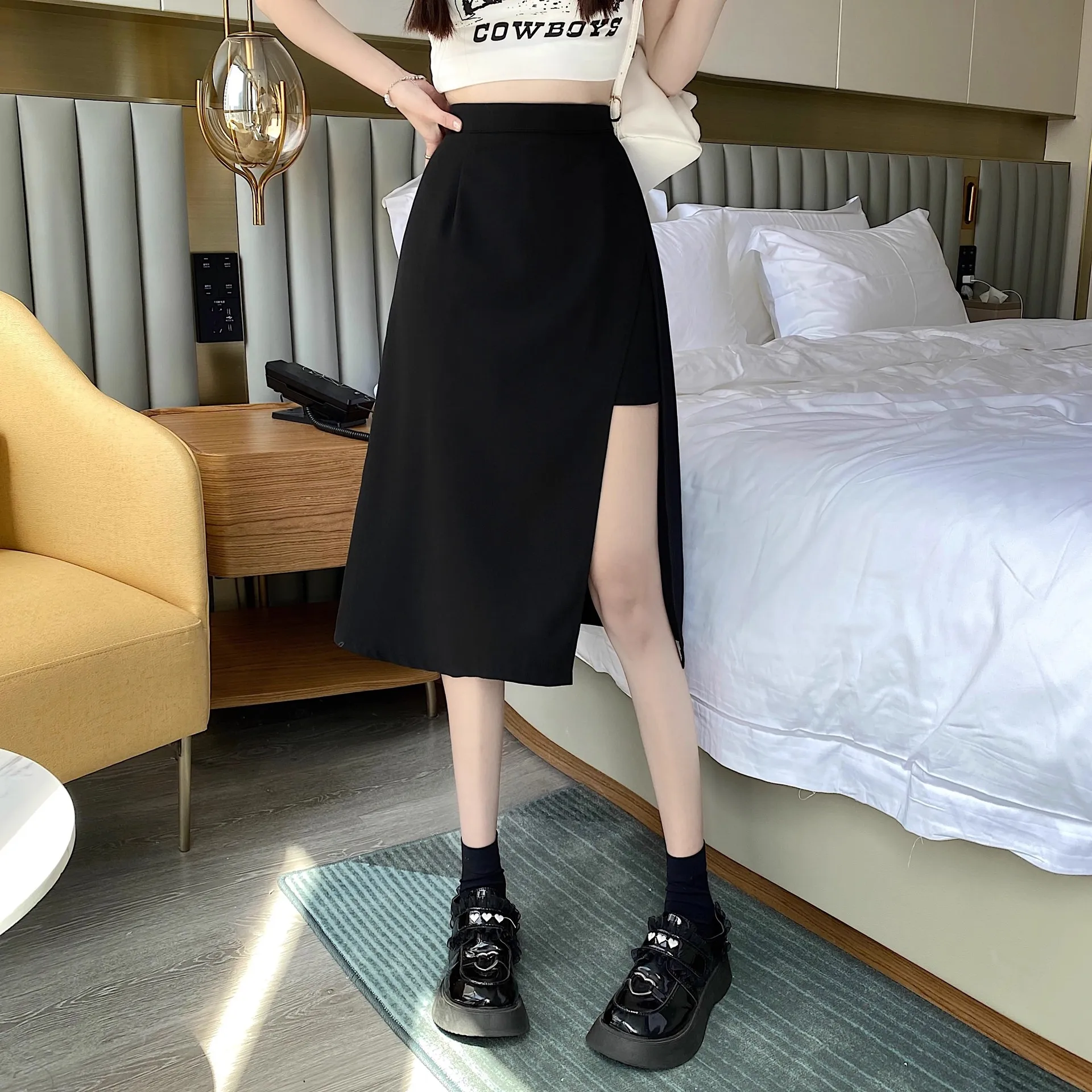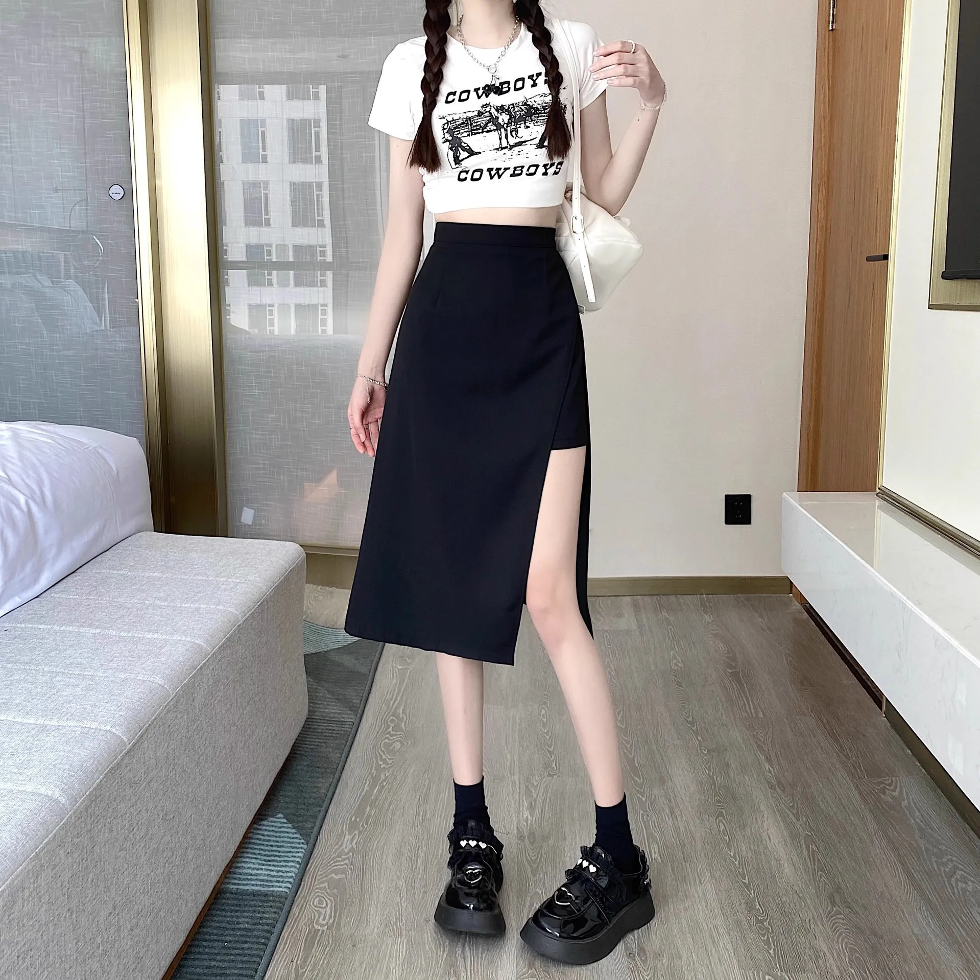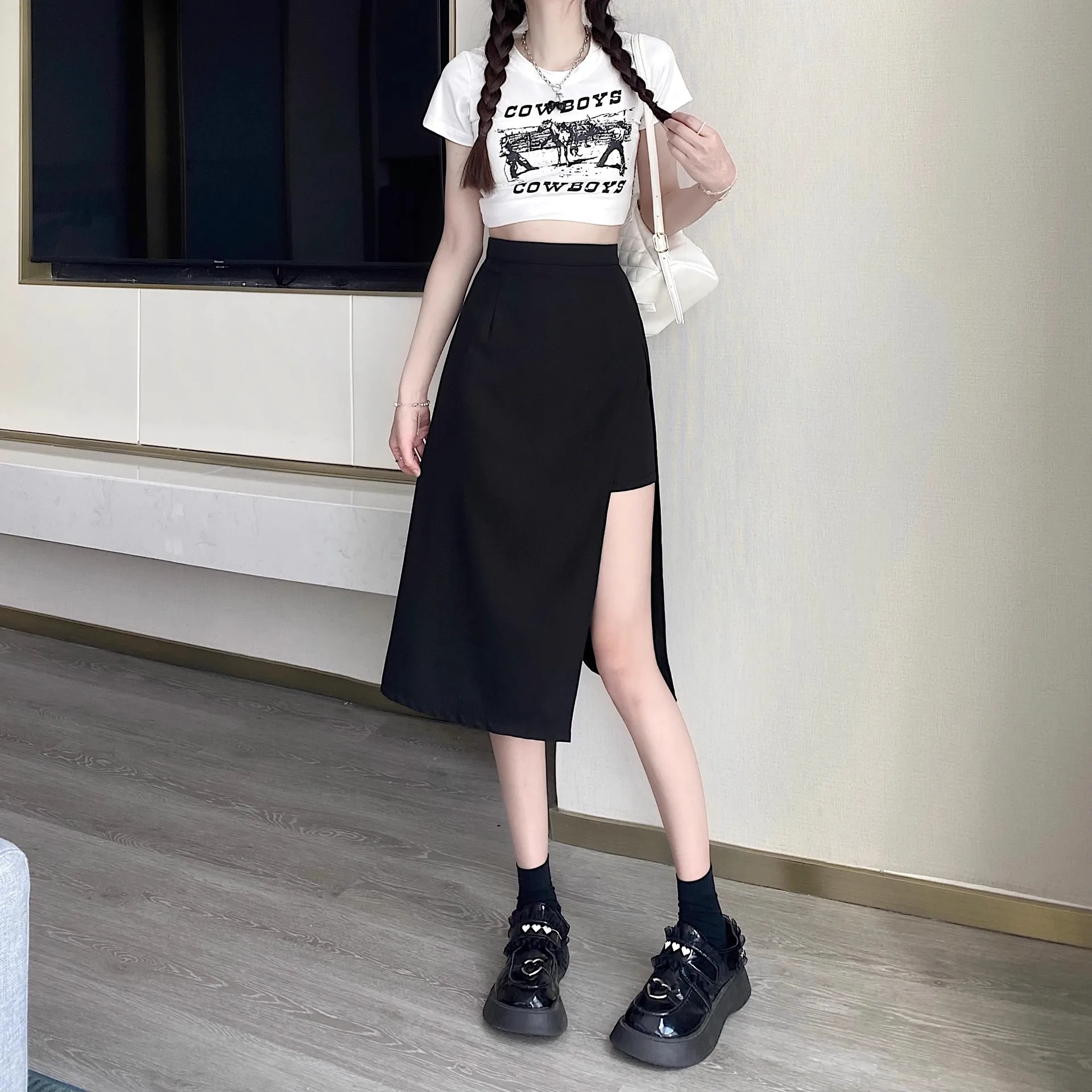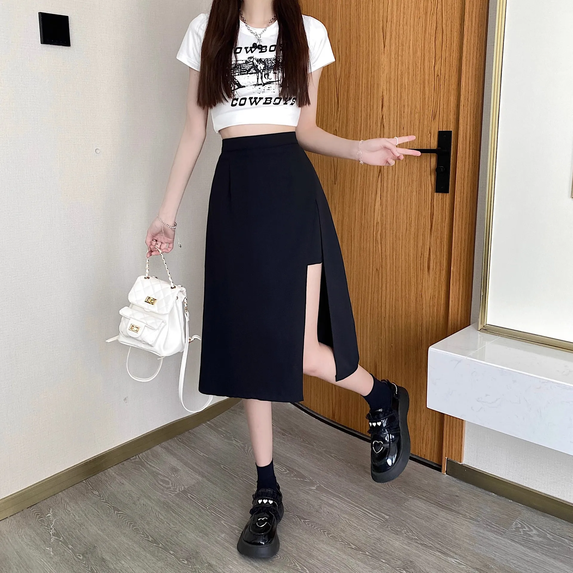 Disponibile sia in lunghezze corte che lunghe, questa gonna versatile può essere abbinata a vari top per adattarsi a diversi stili e occasioni.