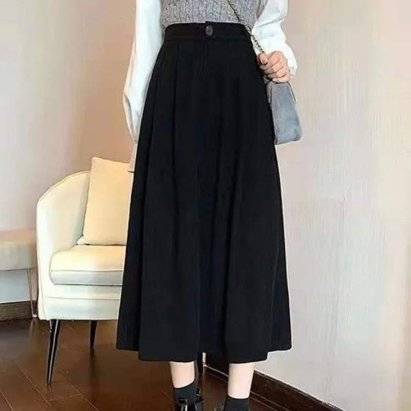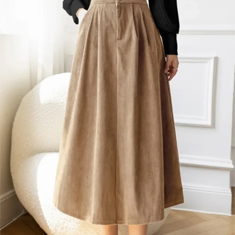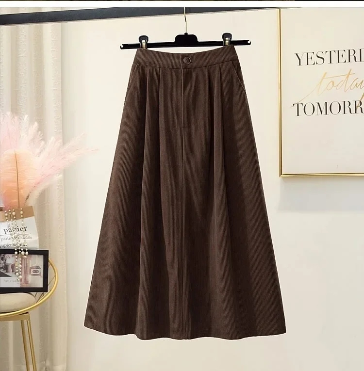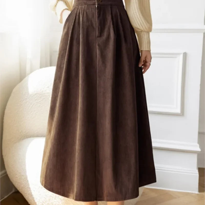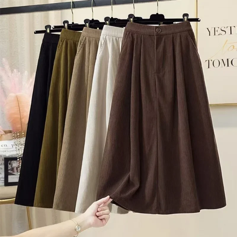 Gonna longuette in velluto a coste caldo per donna Autunno Inverno Coreano elegante solido A Line Gonna lunga elastica a vita alta Velluto femminile 1Gonna longuette in velluto a coste caldo per donna Autunno Inverno Coreano elegante solido A Line Gonna lunga elastica a vita alta Velluto femminile