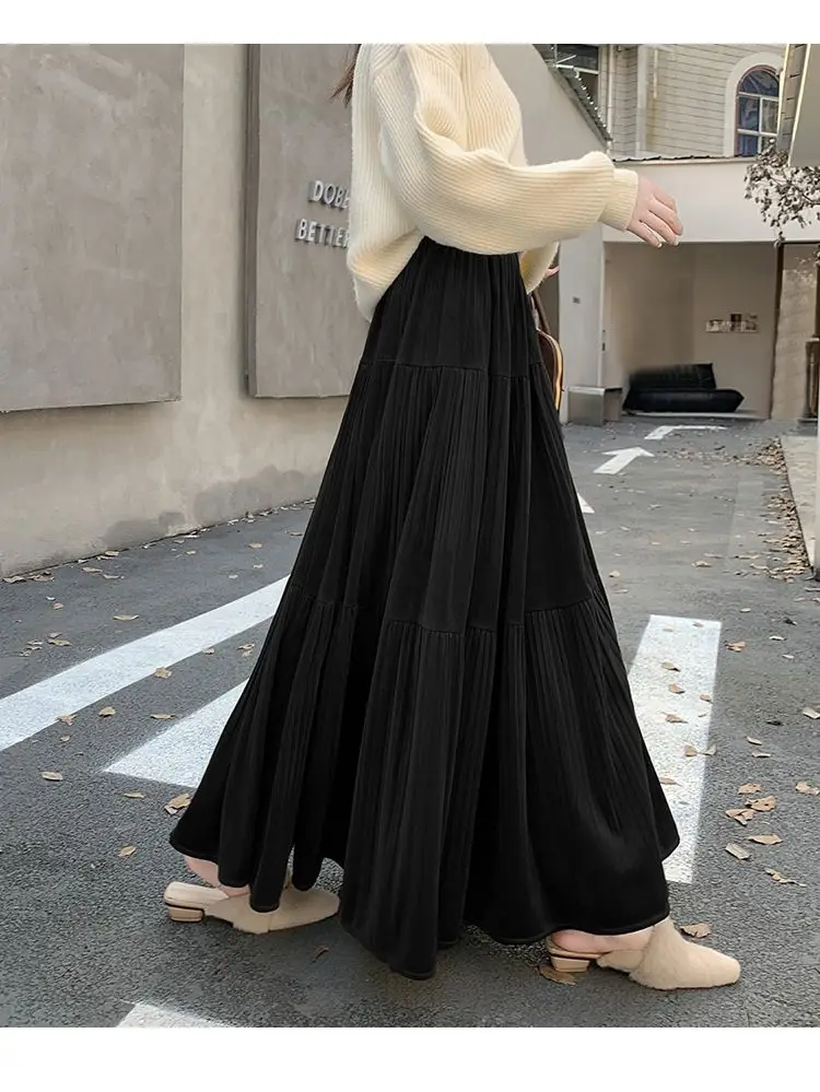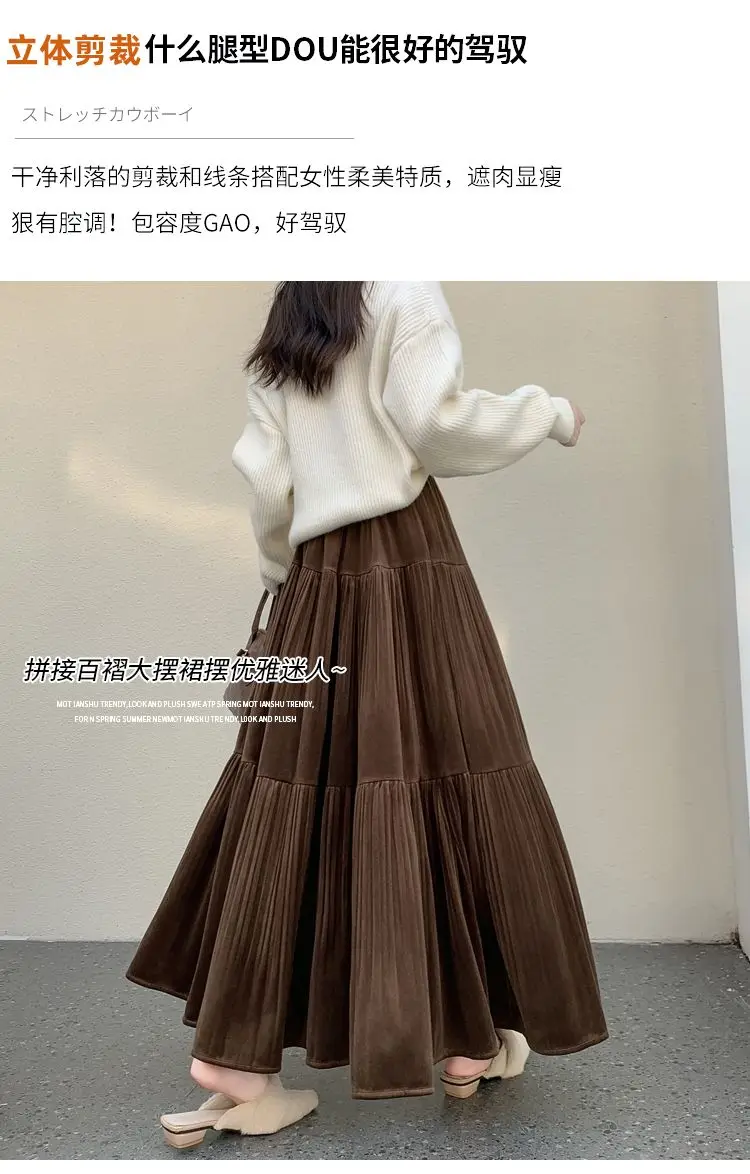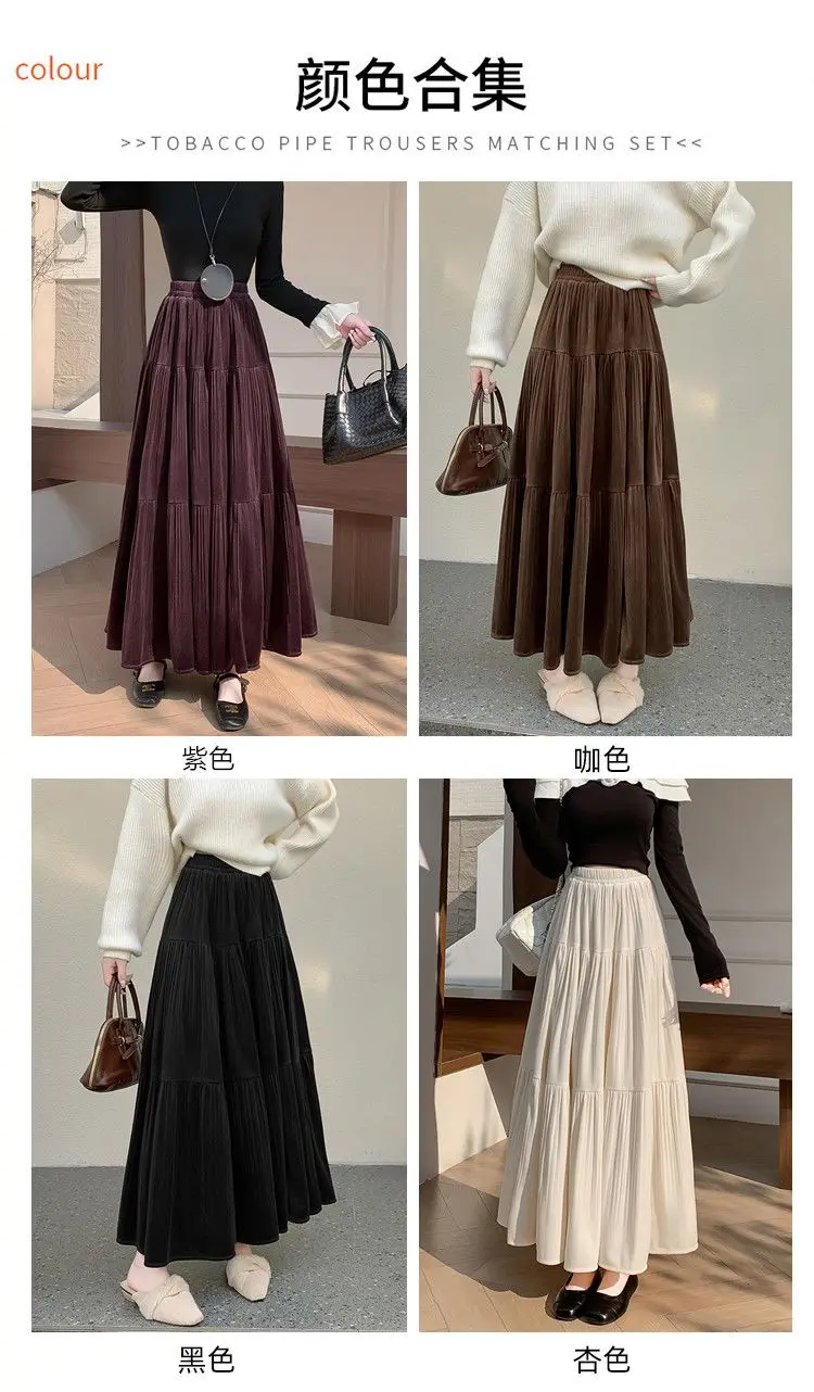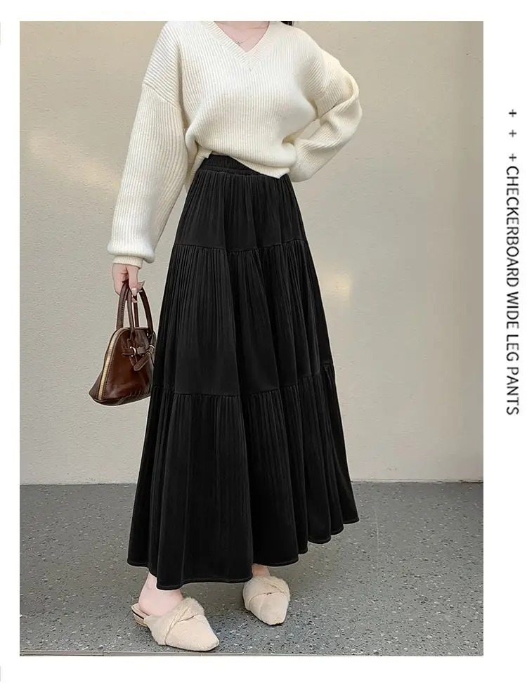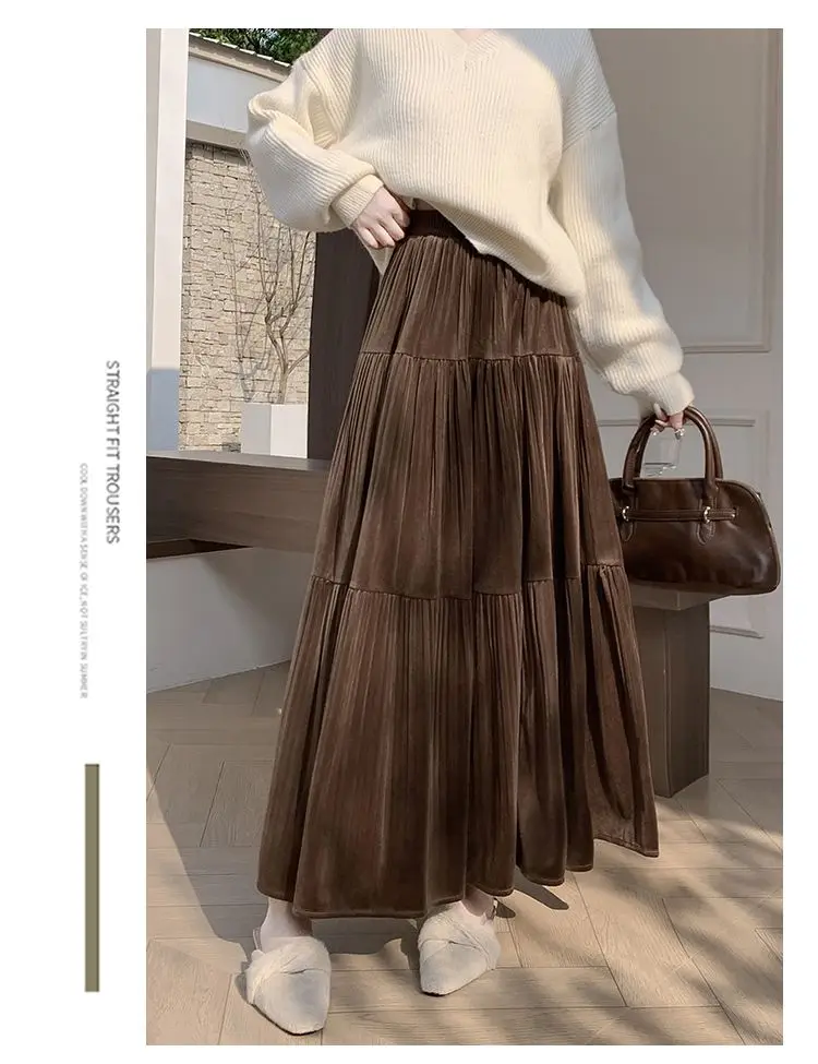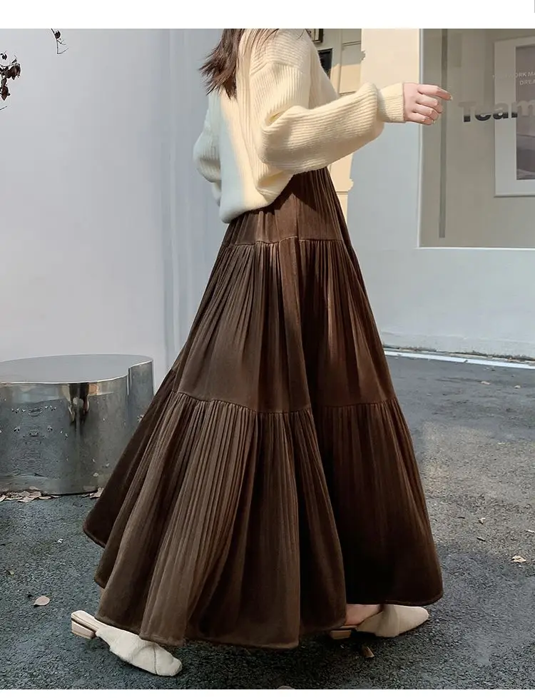 Gonna longuette in velluto ispessito per l’autunno e l’inverno da donna Nuova gonna a pieghe di media lunghezza a vita alta con linea ad A