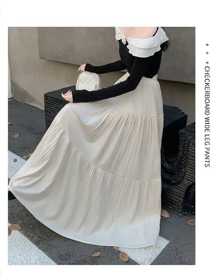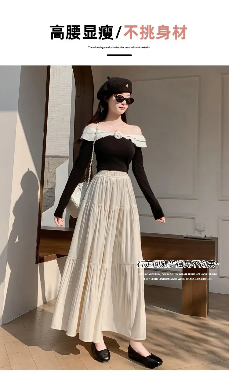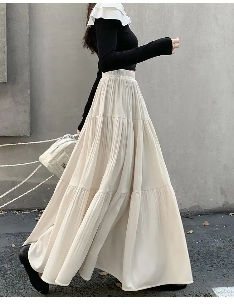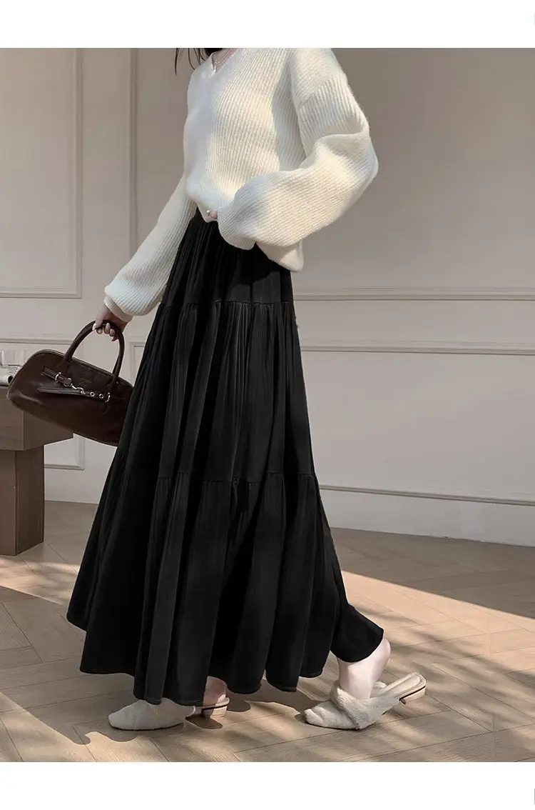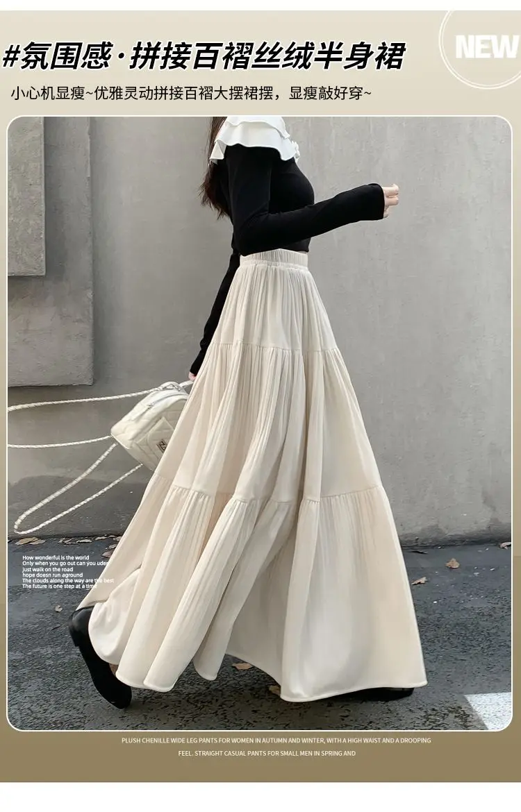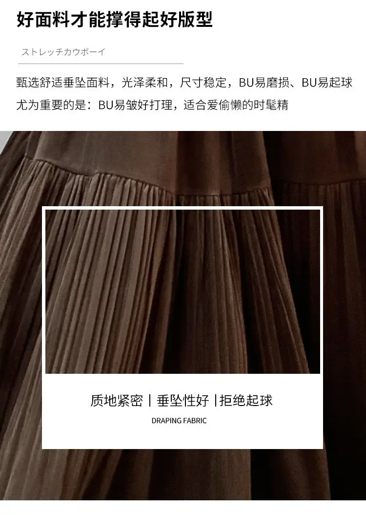 Gonna longuette in velluto ispessito per l’autunno e l’inverno da donna Nuova gonna a pieghe di media lunghezza a vita alta con linea ad A