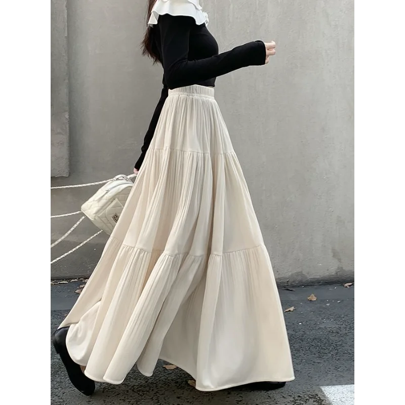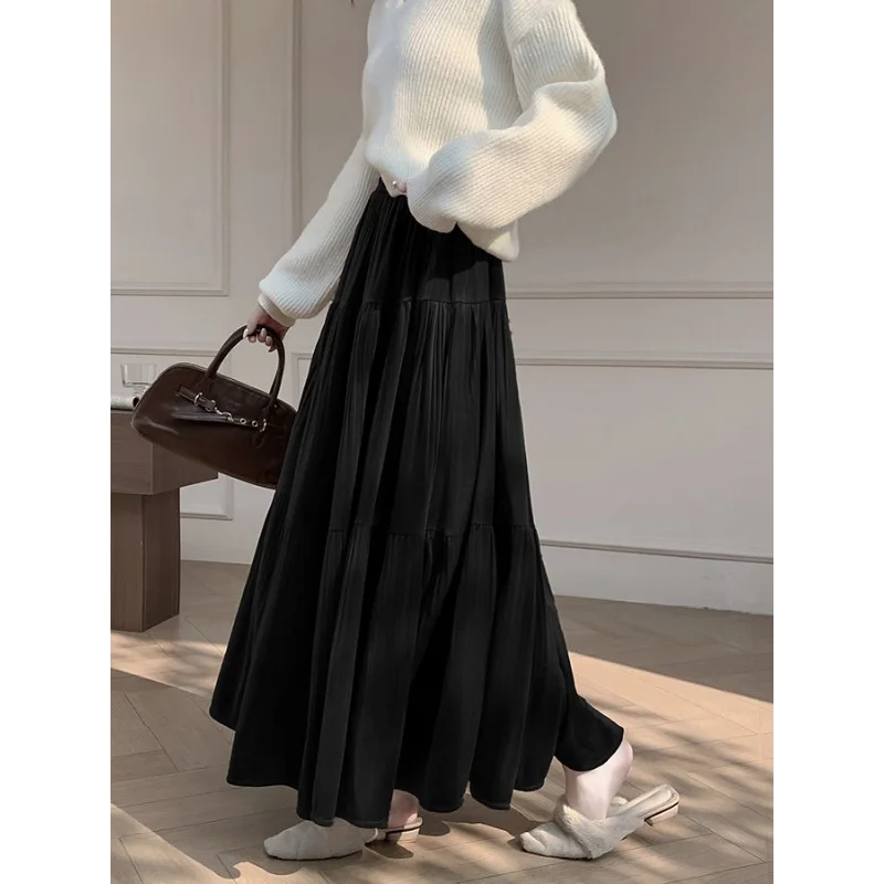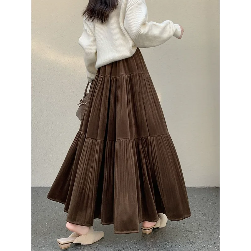 Gonna longuette in velluto ispessito per l’autunno e l’inverno da donna Nuova gonna a pieghe di media lunghezza a vita alta con linea ad A
