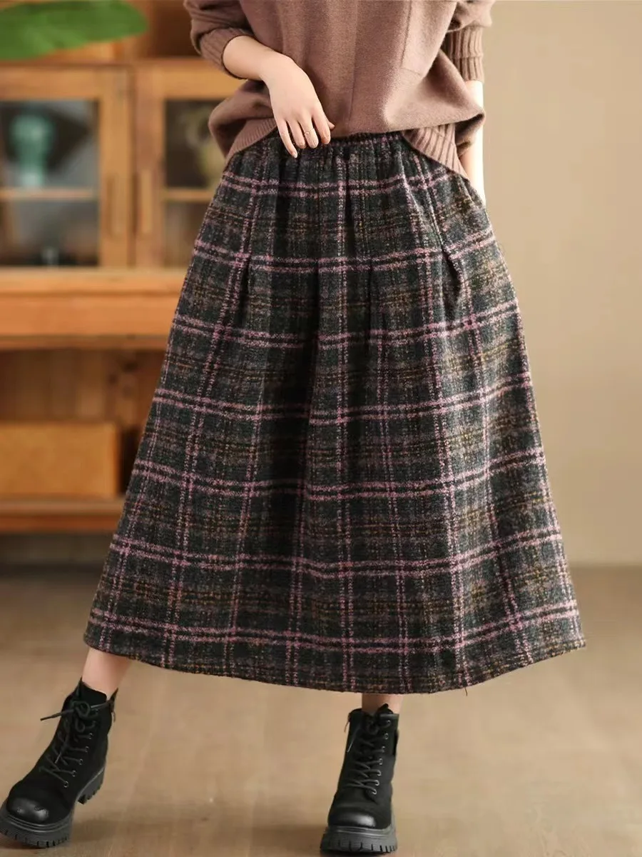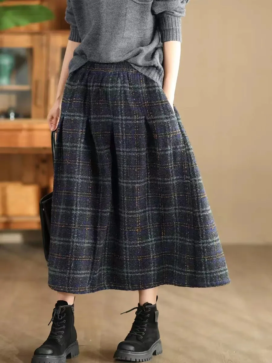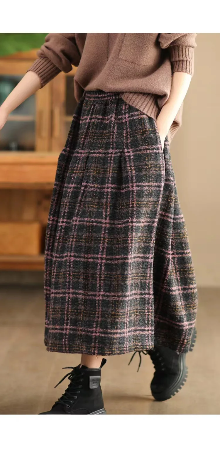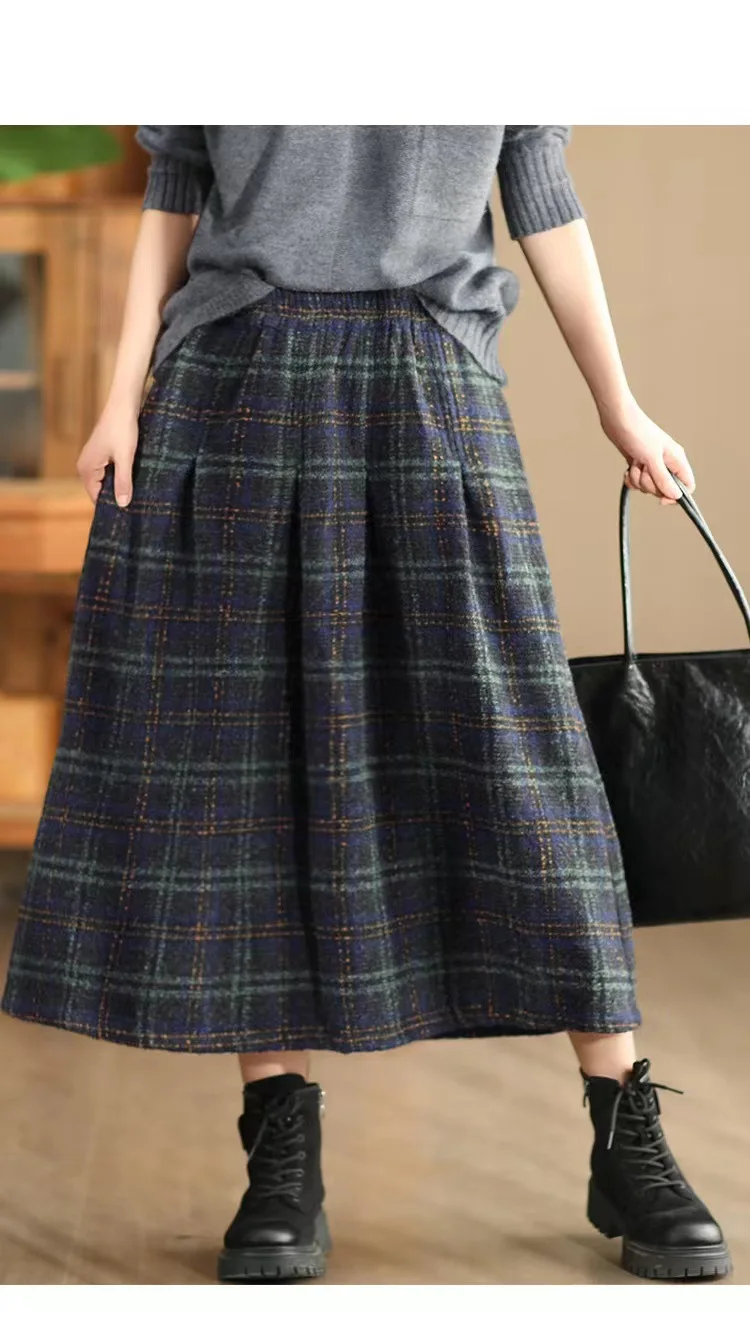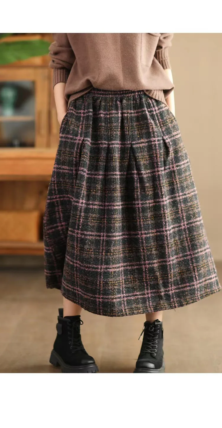 Caratterizzata da un classico motivo scozzese e da un’elegante silhouette a trapezio, questa gonna aggiunge un tocco di eleganza a qualsiasi outfit.