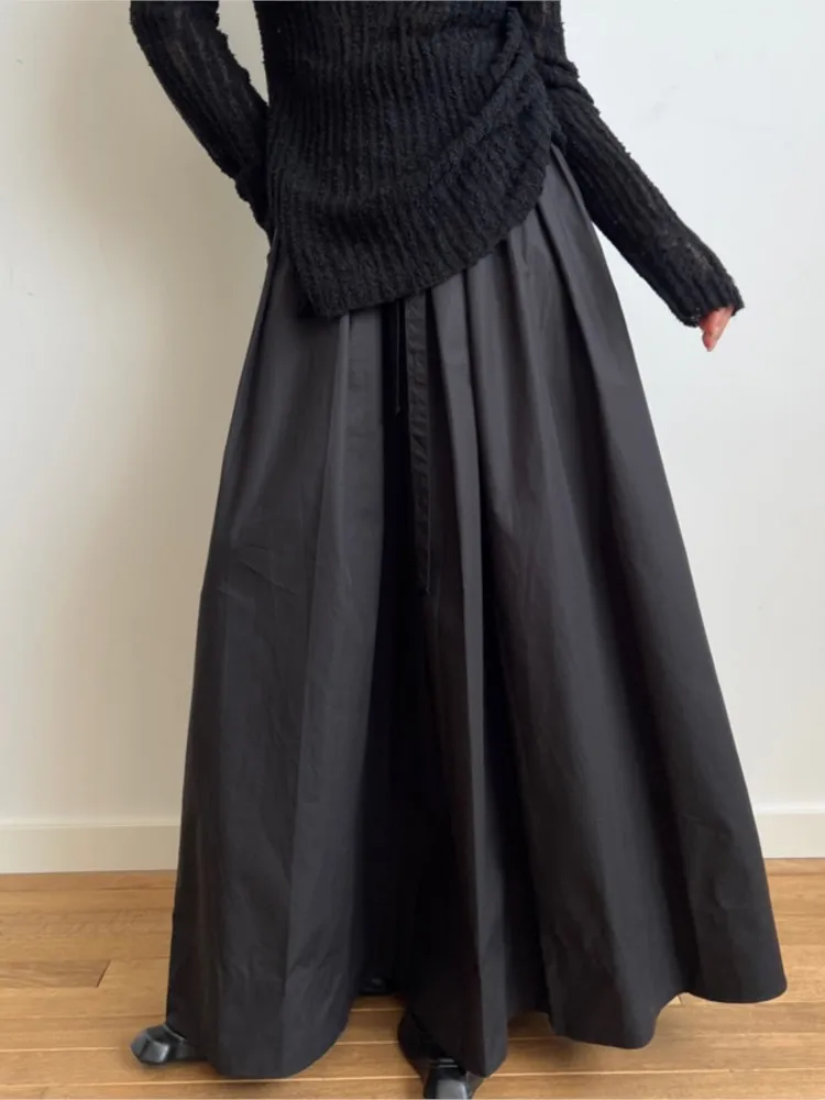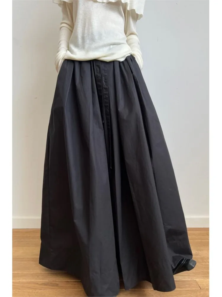 Gonna lunga a trapezio estiva oversize da donna con volant pieghettato allentato moda casual gonne da donna gonna elastica a vita alta da donnaDisponibilità: 15 disponibili