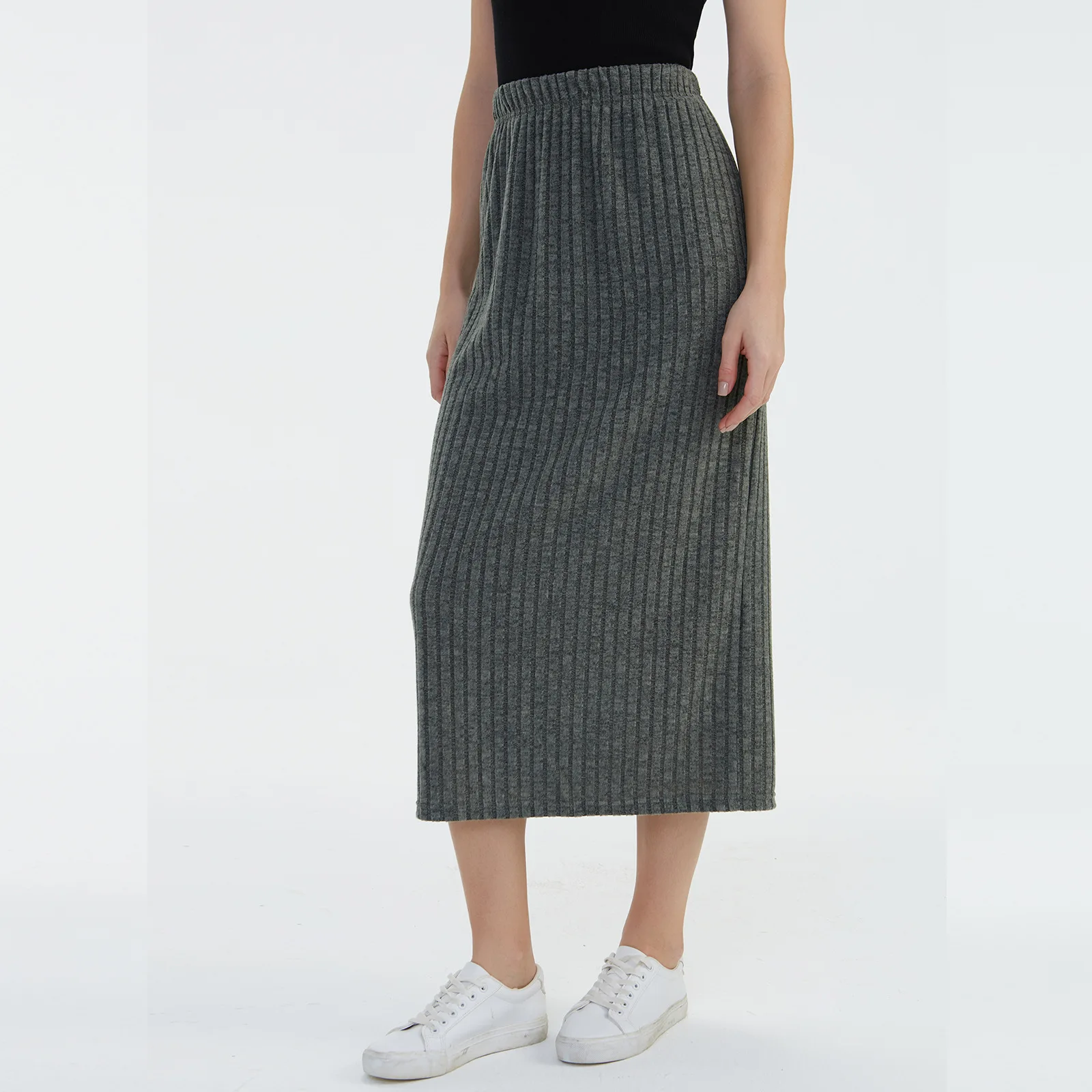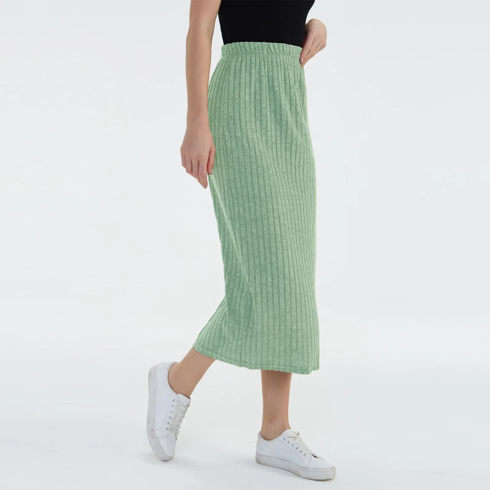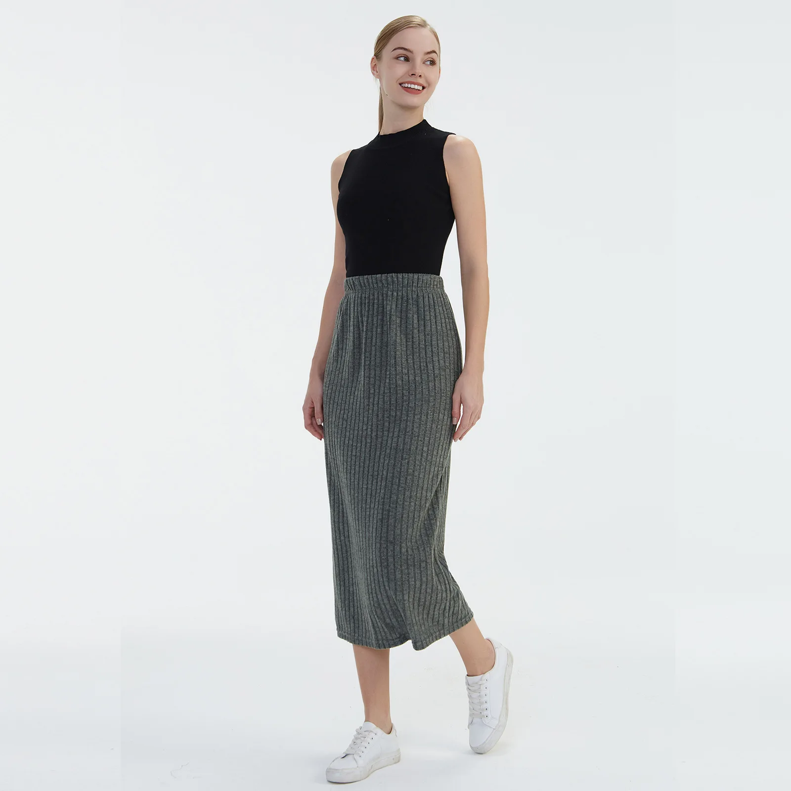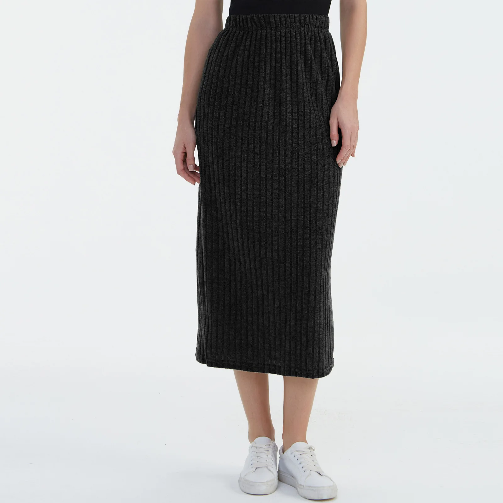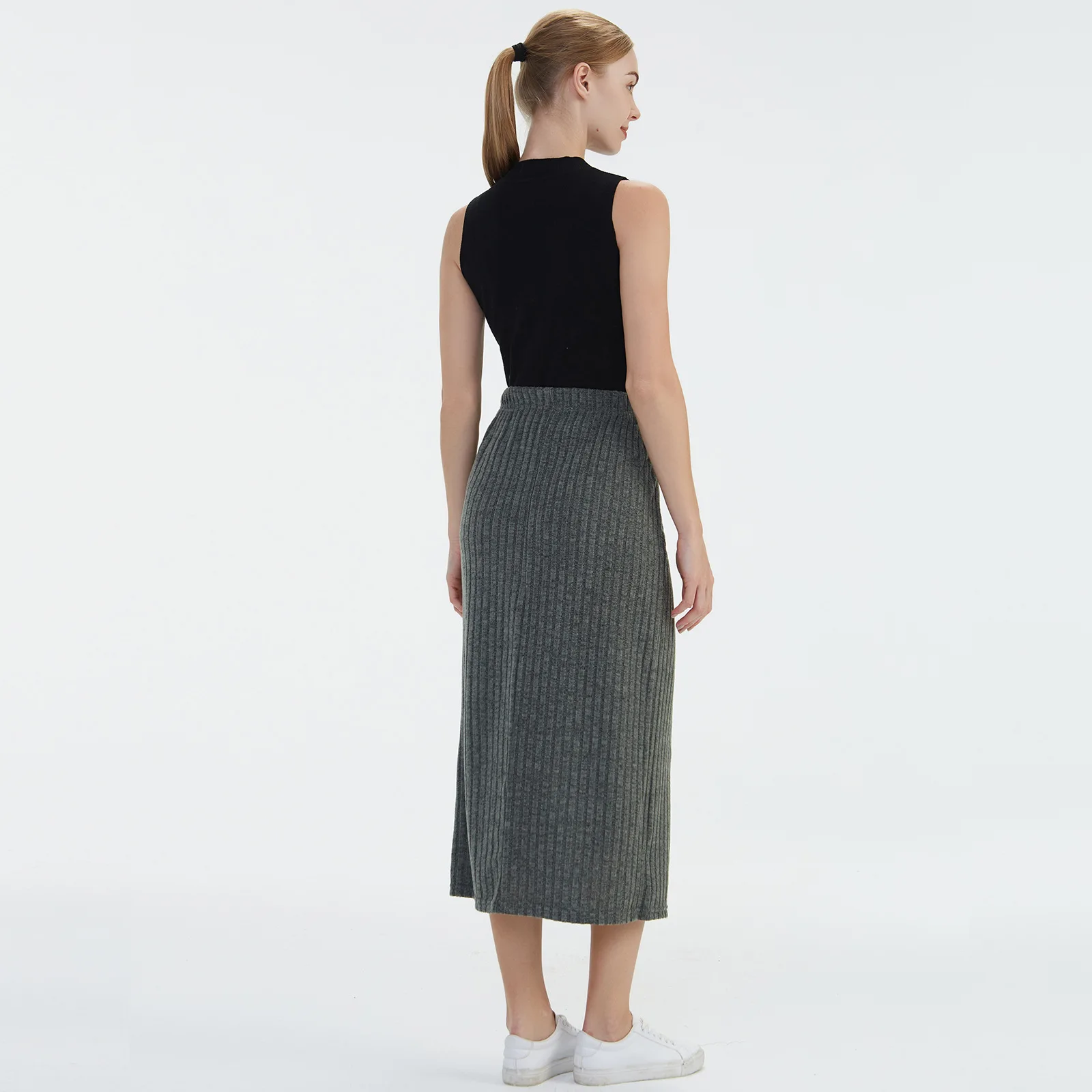 Gonna lunga aderente filettata sexy per donna Autunno Inverno Elegante gonna slim fit a vita alta Gonna lavorata a maglia tinta unita femminile