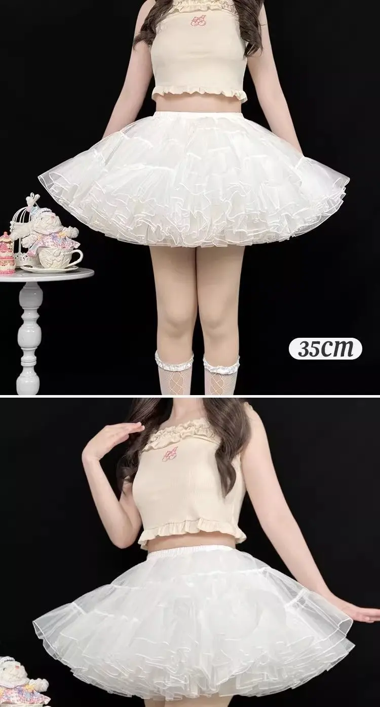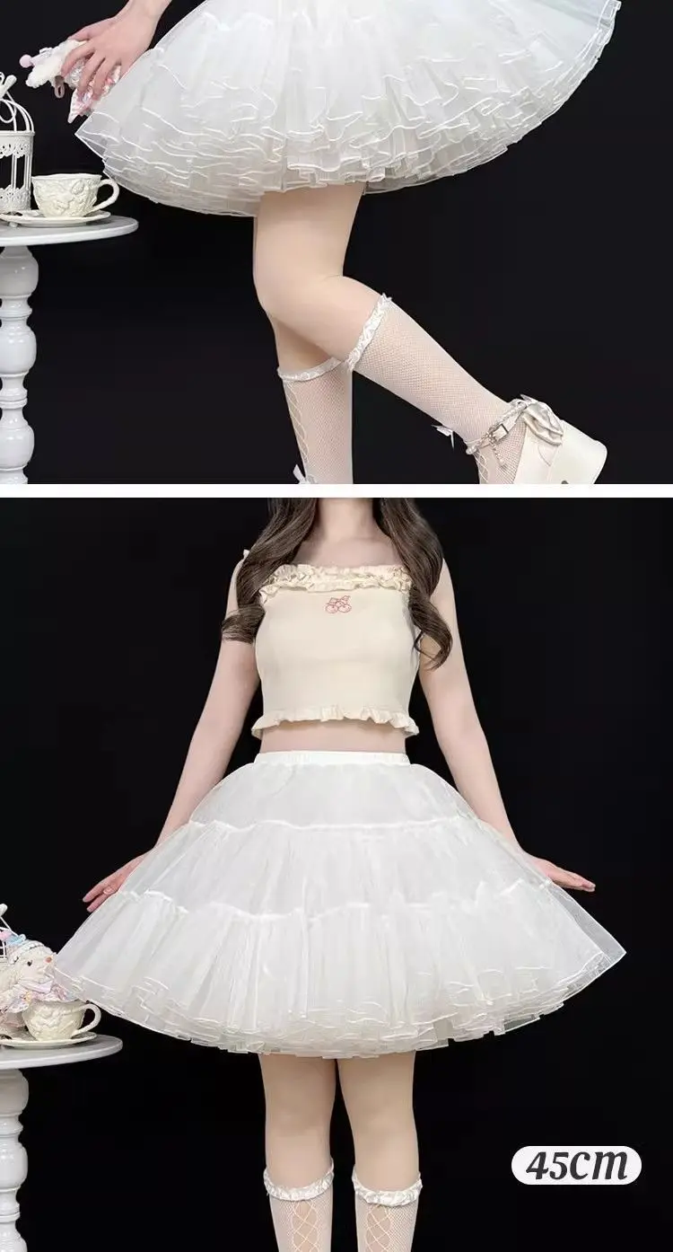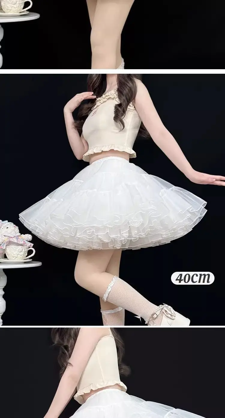 Gonna maglione Sweet Lolita 35 cm di lunghezza corta per un look carino, sottoveste in morbido tulle a 4 strati, supporto disossato per stile Kawaii
