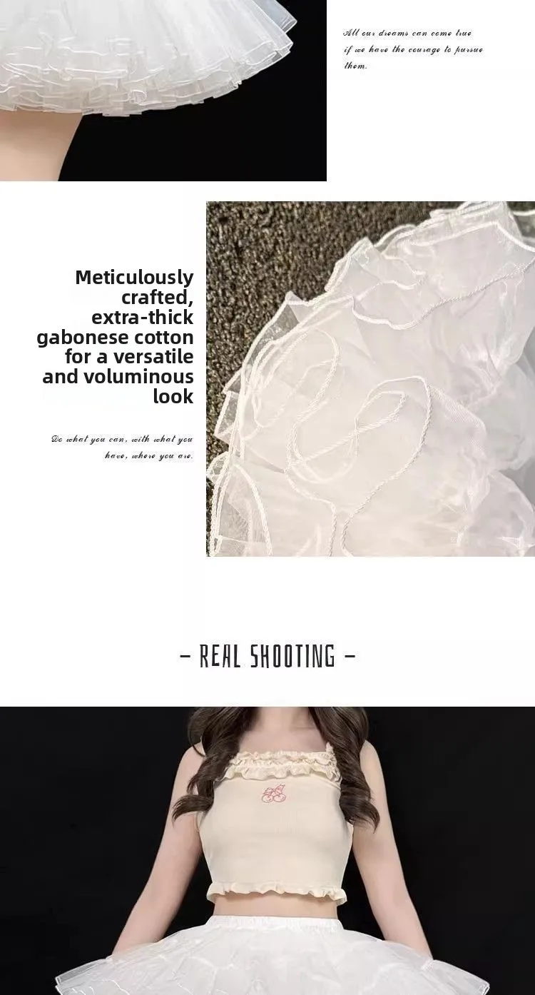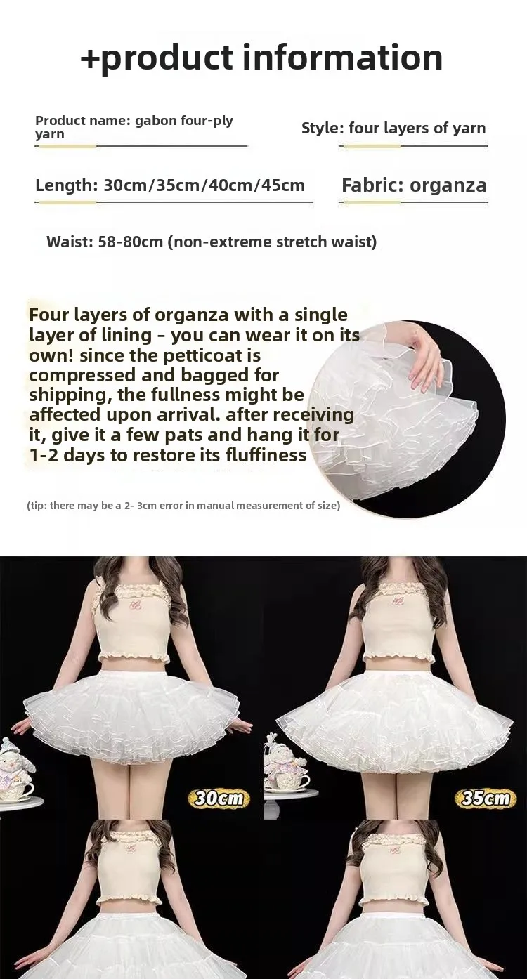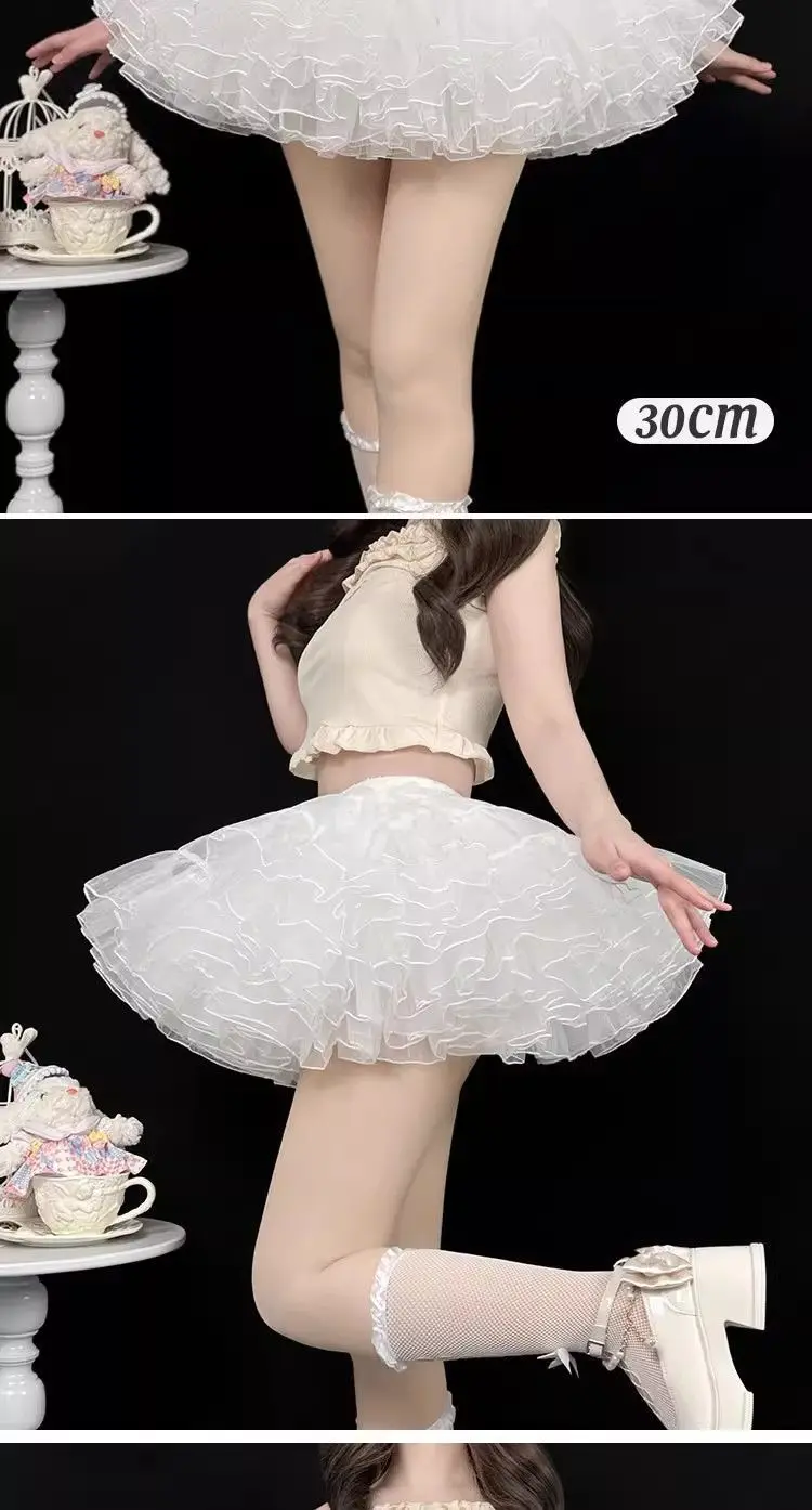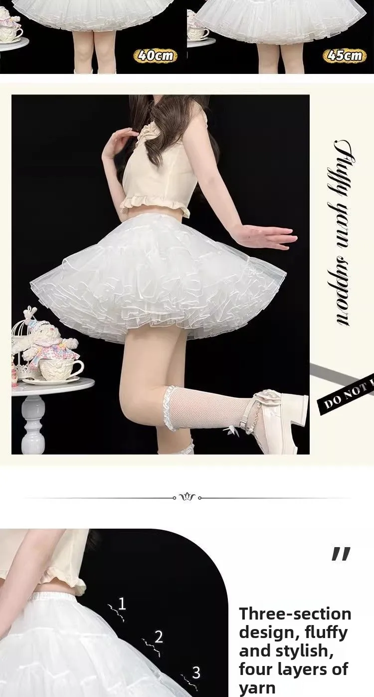Gonna maglione Sweet Lolita 35 cm di lunghezza corta per un look carino, sottoveste in morbido tulle a 4 strati, supporto disossato per stile Kawaii