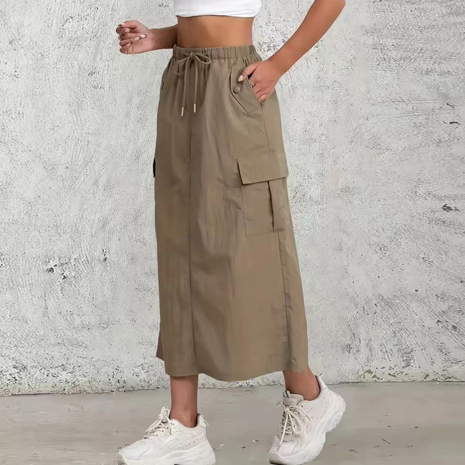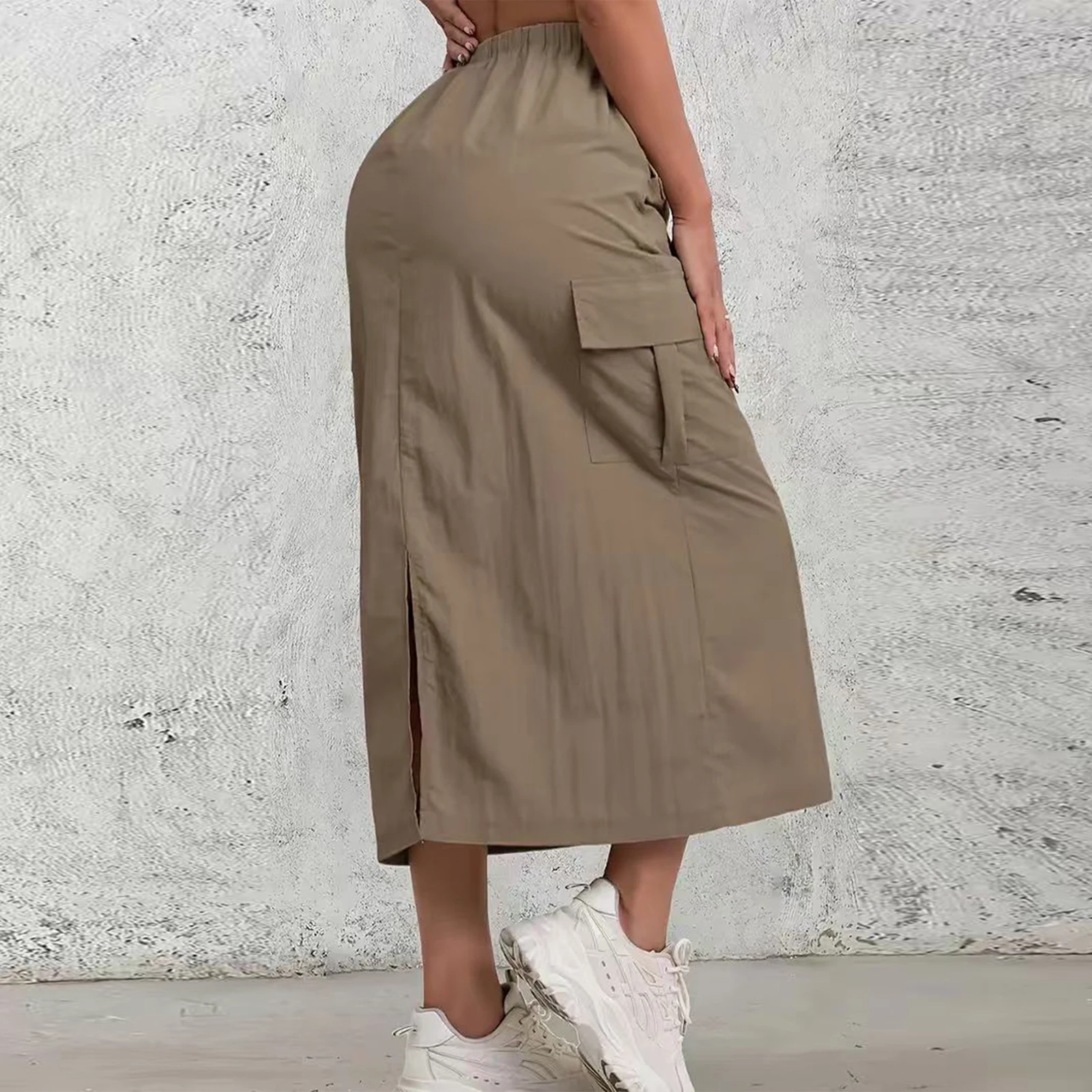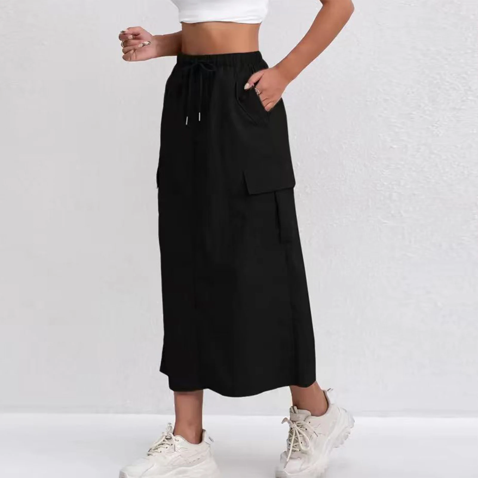 Gonna da donna con spacco sul retro con tasca a trapezio a vita alta elastica con coulisse in tinta unita alla moda