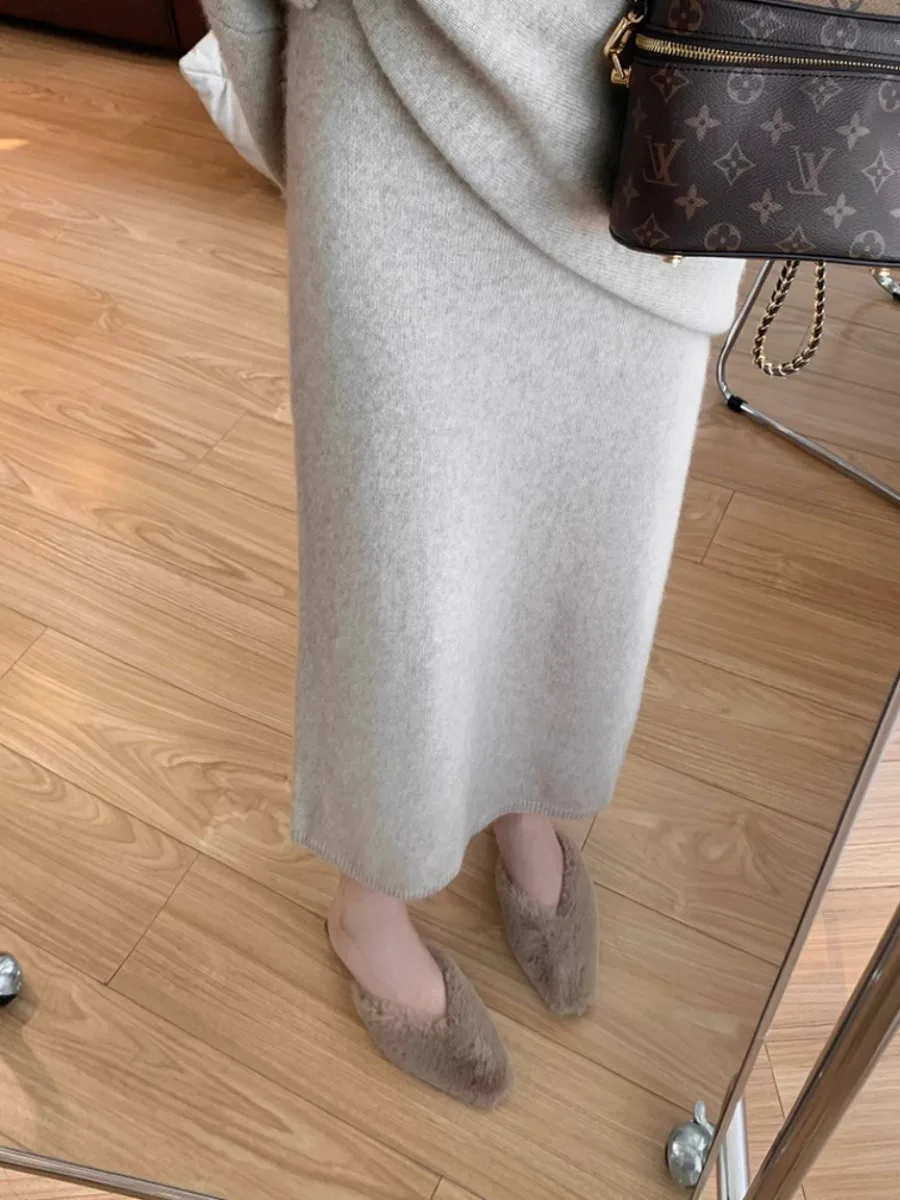 Gonna morbida cerosa autunnale e invernale Gonna dritta Gonna lavorata a maglia versatile e sottile Gonna H media e lunga Gonna casual da donna
