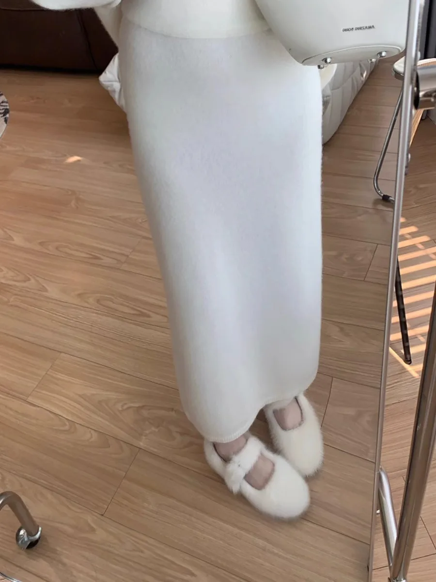 Gonna morbida cerosa autunnale e invernale Gonna dritta Gonna lavorata a maglia versatile e sottile Gonna H media e lunga Gonna casual da donna