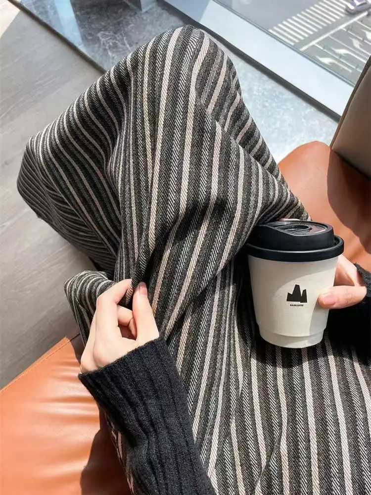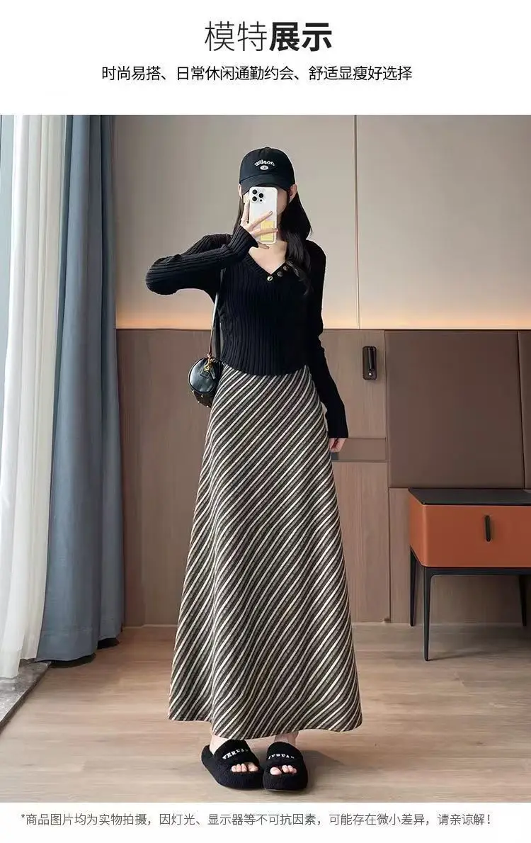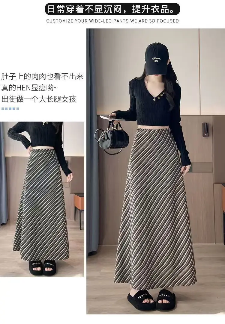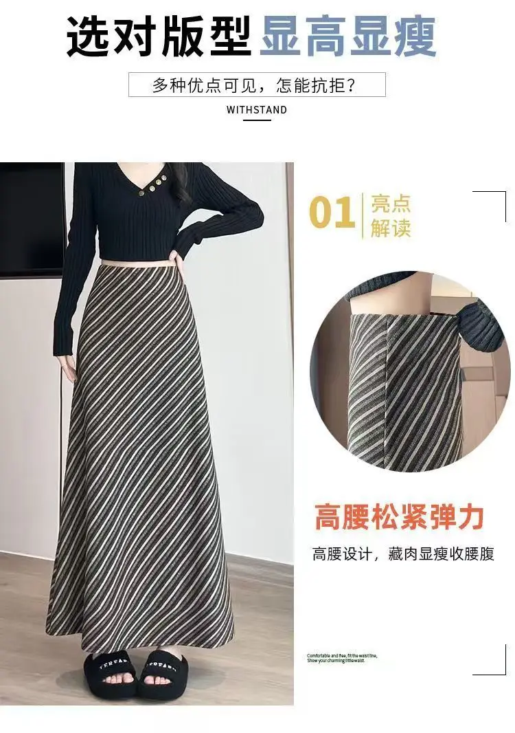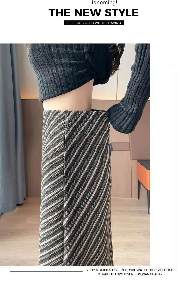 Gonna slim a vita alta stile retrò Autunno Nuova gonna lunga a righe stile lungo