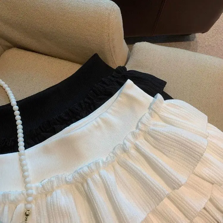 Gonne da donna dolci con torta gonfia Moda coreana Minigonna con volant increspato Campus Harajuku Gonna solida in vita elastica versatile casual